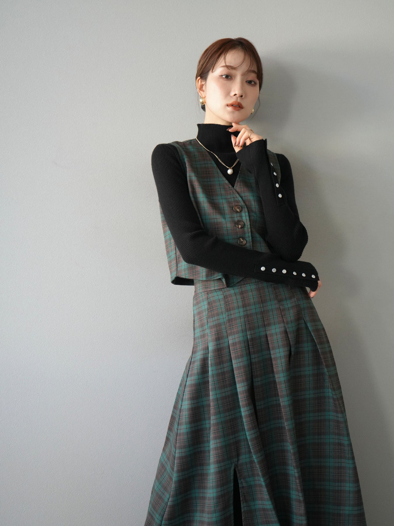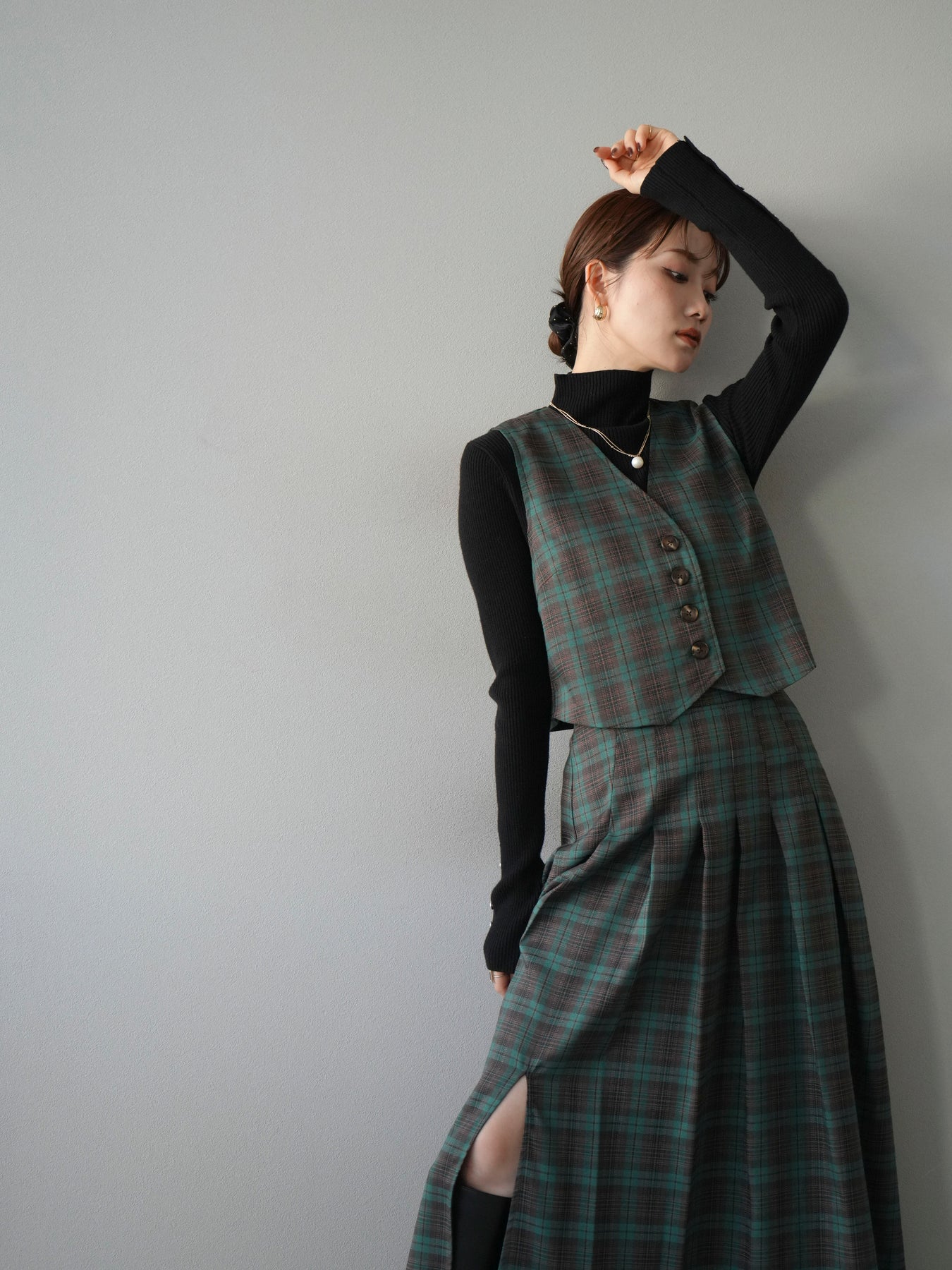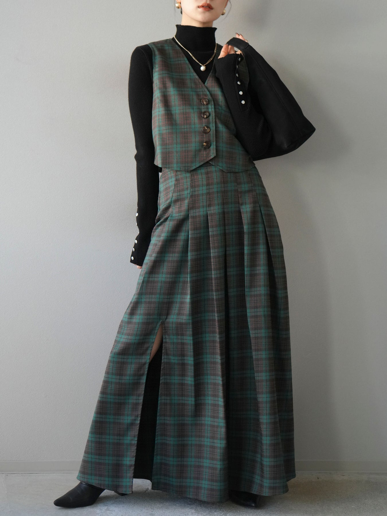 [予約]チェック柄ベスト/グリーン