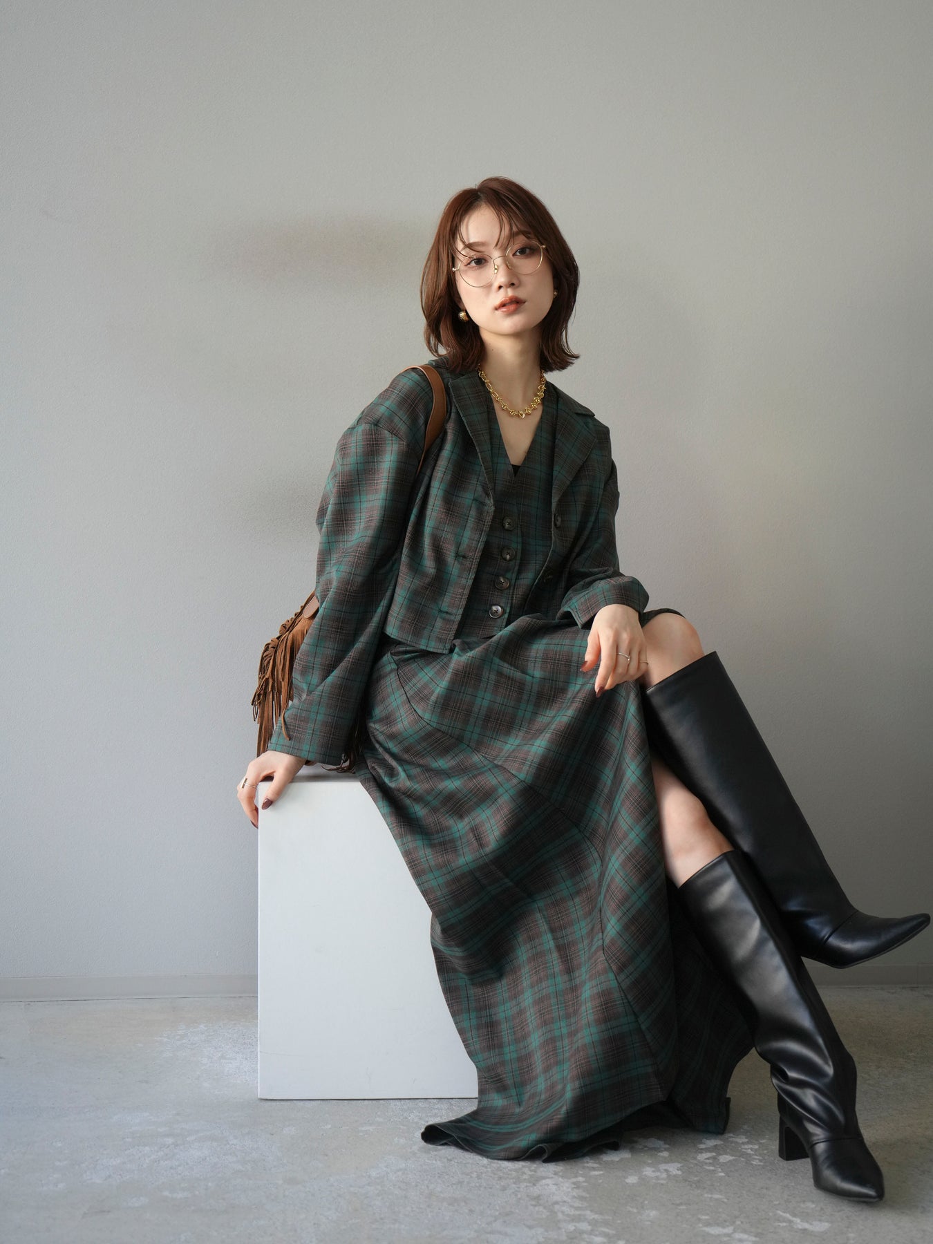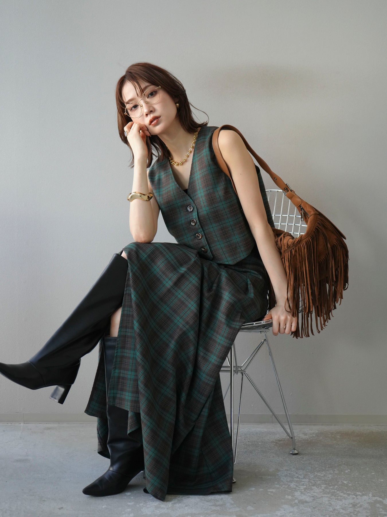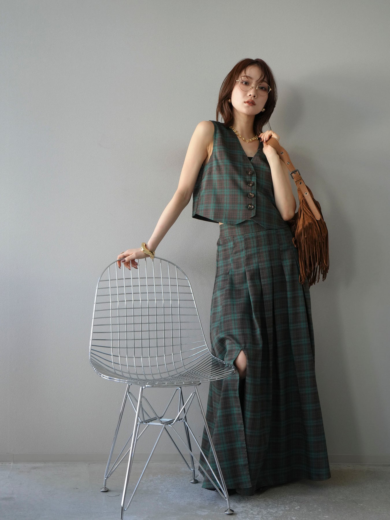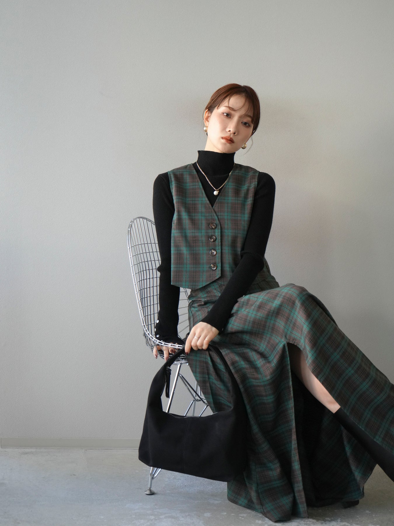[予約]チェック柄ベスト/グリーン