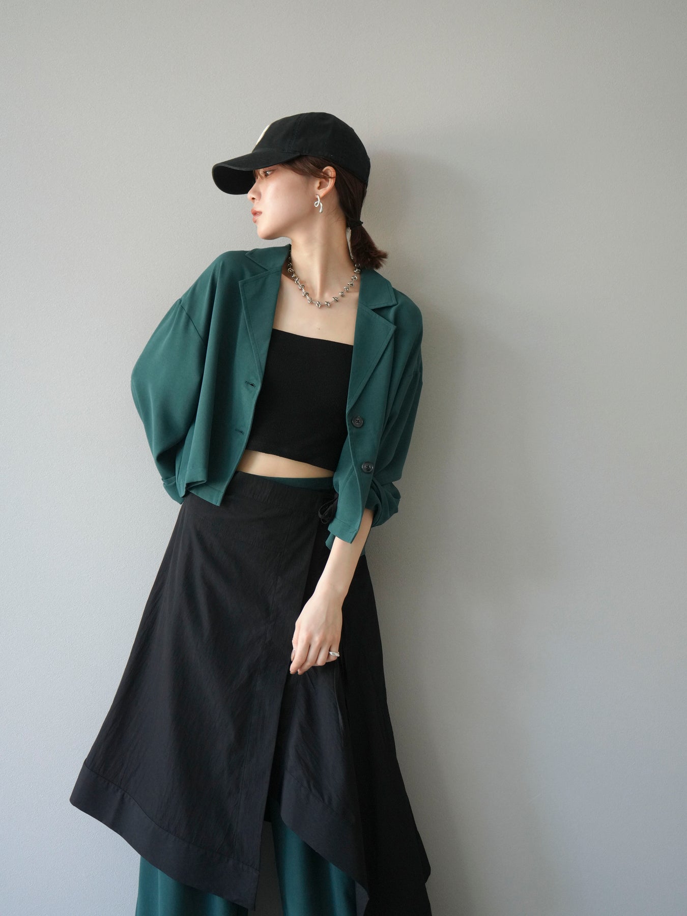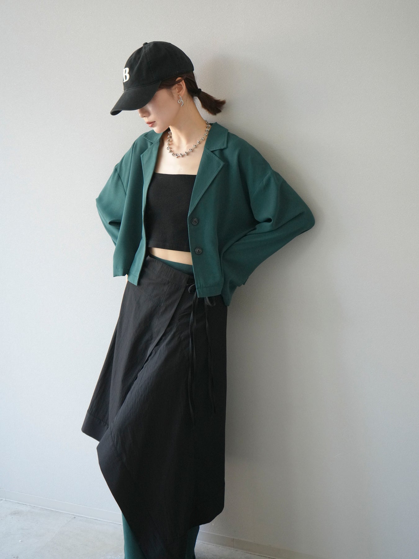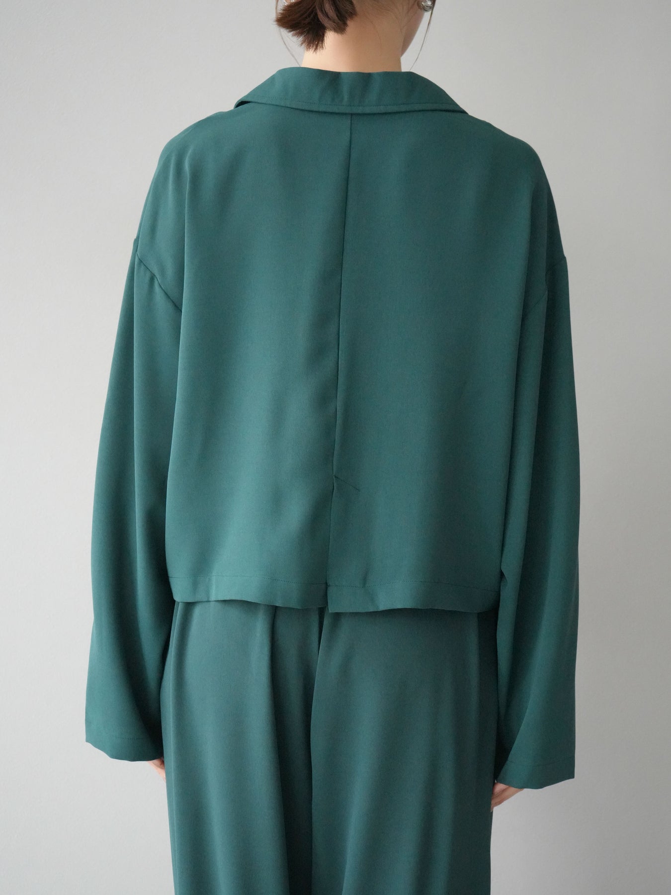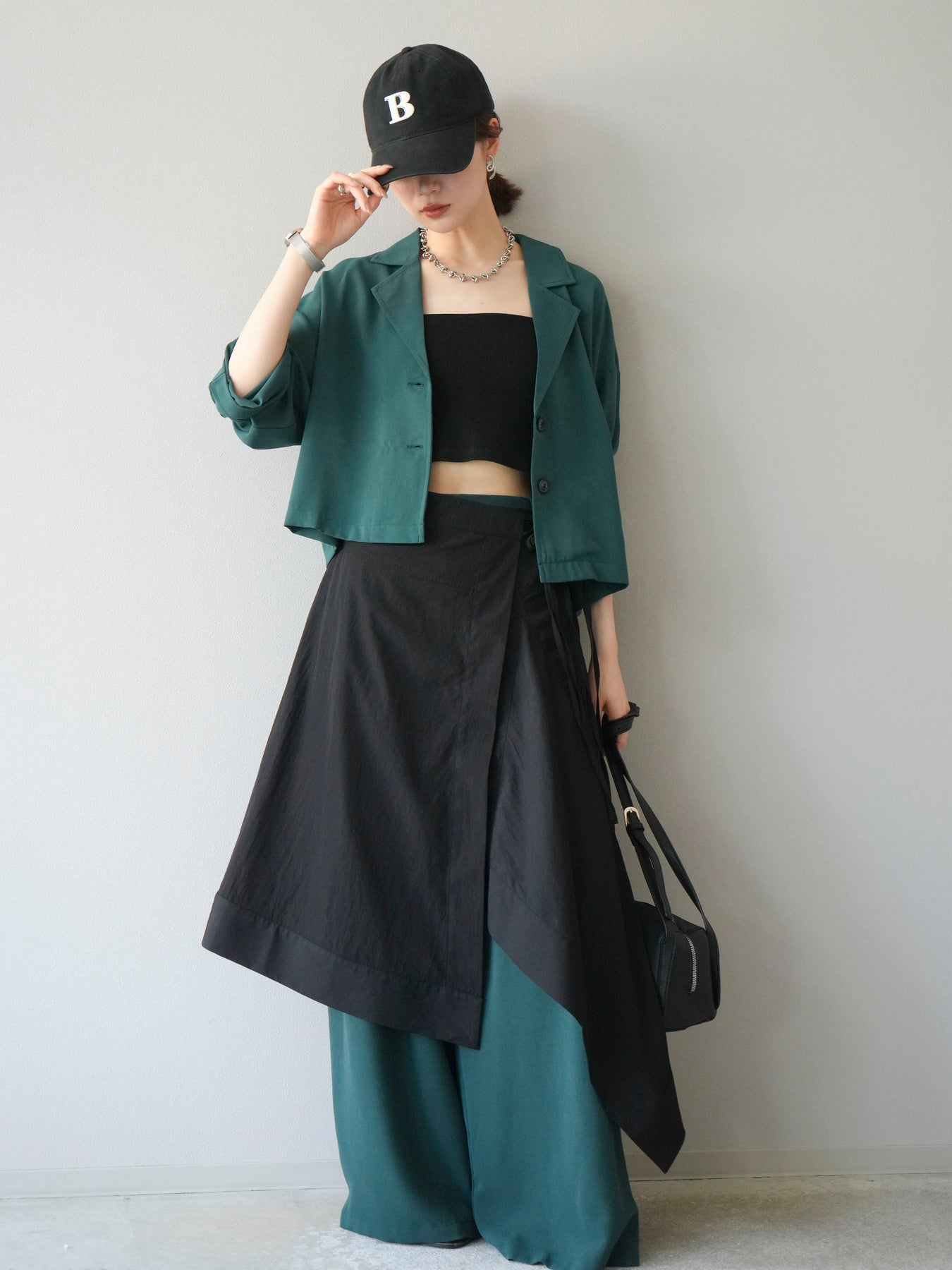 とろみ感のあるレーヨンライク素材を使用したショートジャケット。軽やかな着心地と落ち感があり、羽織るだけでこなれた雰囲気を演出します。コンパクトな着丈がボトムスとのバランスを取りやすく、ワイドパンツやロングスカートとも好相性。シンプルなデザインながらも上品さが漂い、デイリーからオフィスカジュアルまで幅広いシーンで活躍します。季節の変わり目に一枚あると便利な、着回し力の高いジャケットです。 ※ボトムス、キャミソール(インナー)以外の商品は一律でインナーは付属していません。
