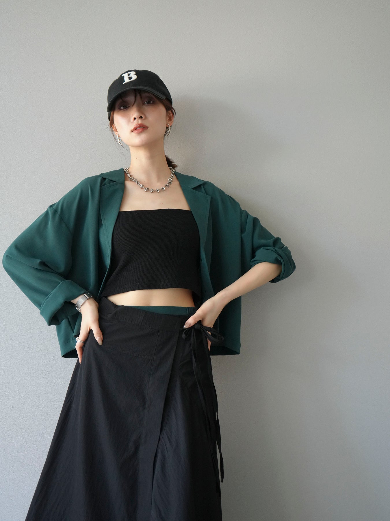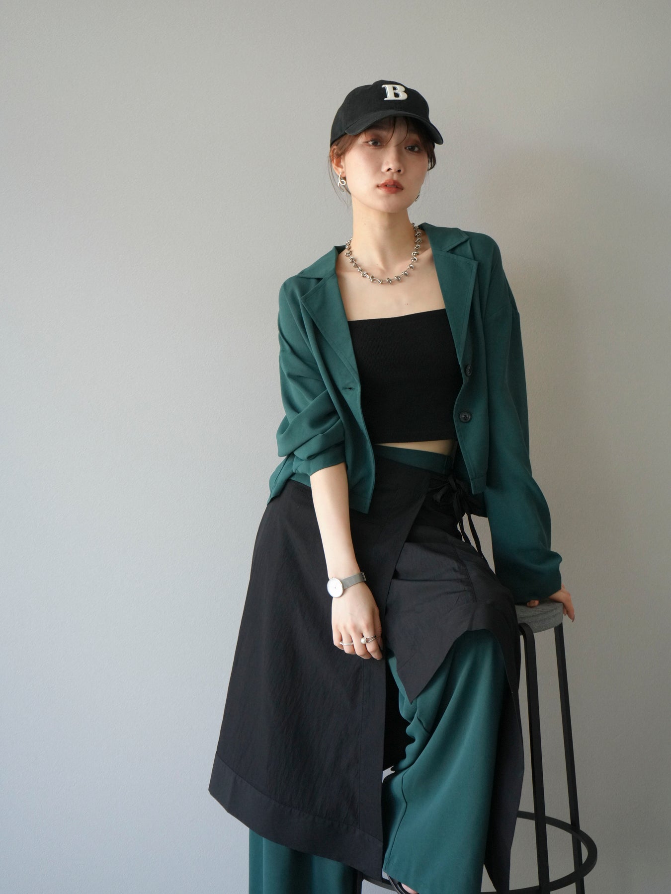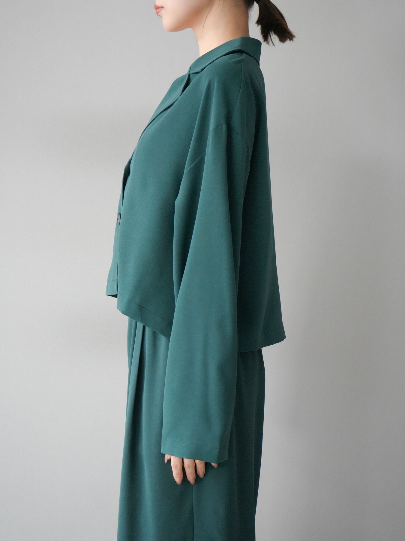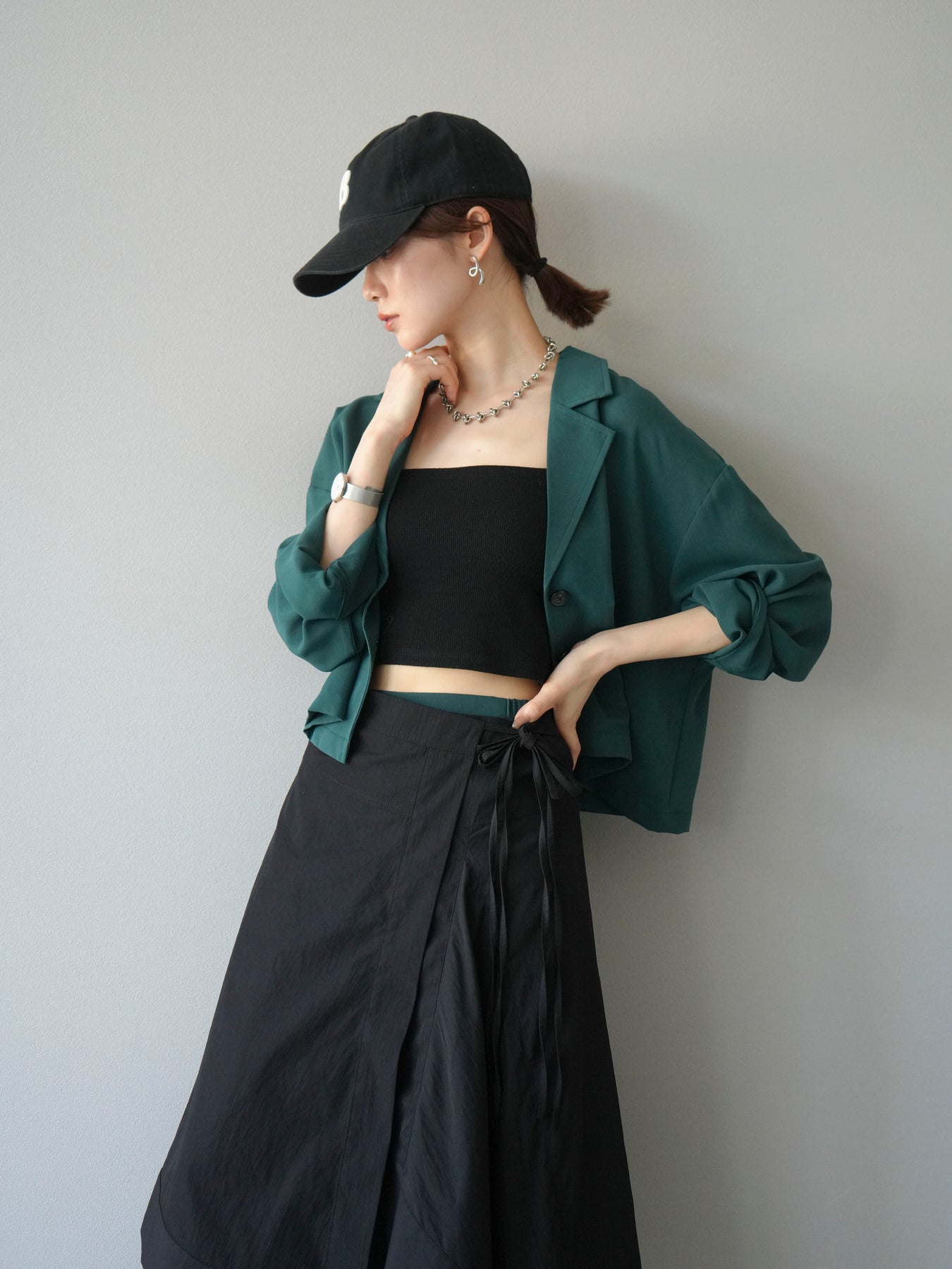 とろみ感のあるレーヨンライク素材を使用したショートジャケット。軽やかな着心地と落ち感があり、羽織るだけでこなれた雰囲気を演出します。コンパクトな着丈がボトムスとのバランスを取りやすく、ワイドパンツやロングスカートとも好相性。シンプルなデザインながらも上品さが漂い、デイリーからオフィスカジュアルまで幅広いシーンで活躍します。季節の変わり目に一枚あると便利な、着回し力の高いジャケットです。 ※ボトムス、キャミソール(インナー)以外の商品は一律でインナーは付属していません。
