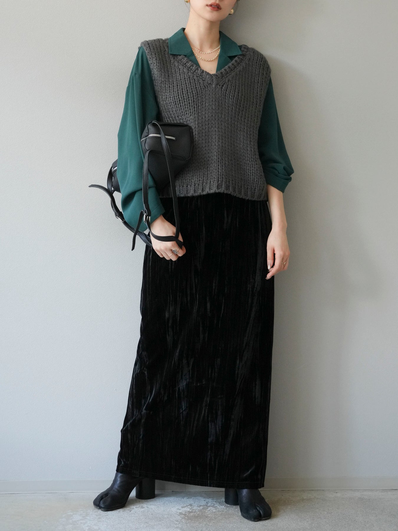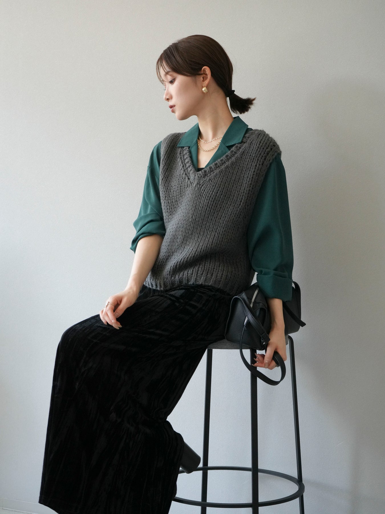 ・お手入れ方法:手洗い水温30℃以下、おしゃれ着用液体洗剤または中性洗剤のご使用をお薦めします。素材の特性上、洗濯の際に色落ちが生じる恐れがありますので単独で・短時間でのお洗濯をお薦めします。洗濯後は形を整えてから陰干ししてください。アイロンはご使用いただけません。※タンブラー乾燥は控え、色物とは分けてください。濡れたままの状態で擦れると、色落ち色移りすることがあります。つけ置き洗いや雨や汗で濡れたまま放置は避け、速やかに処理してください。着用中の摩擦や汗、水濡れ、濃淡差があるものとの重ね着にご注意ください。