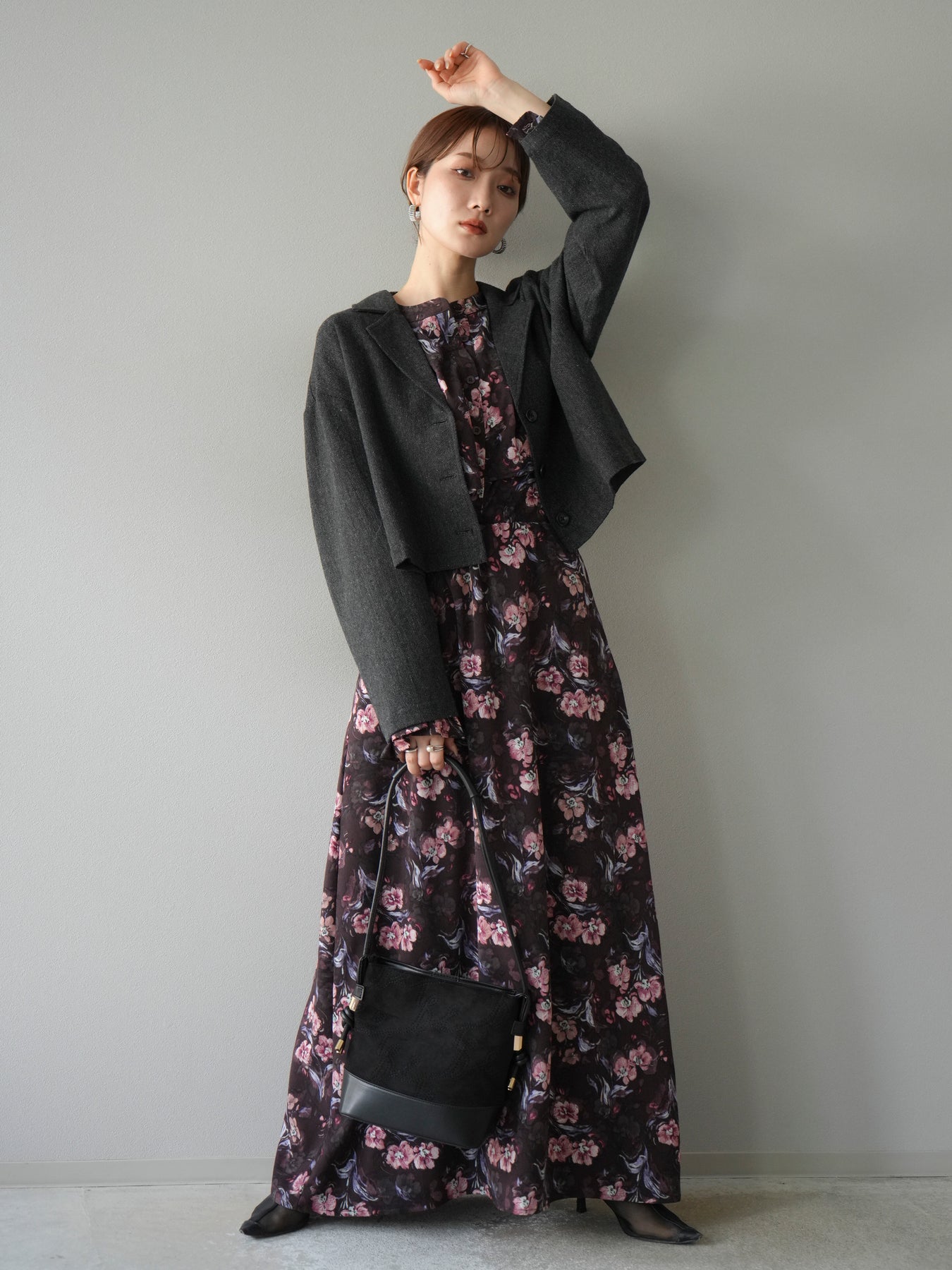 [予約]ツイードショートジャケット/ブラック