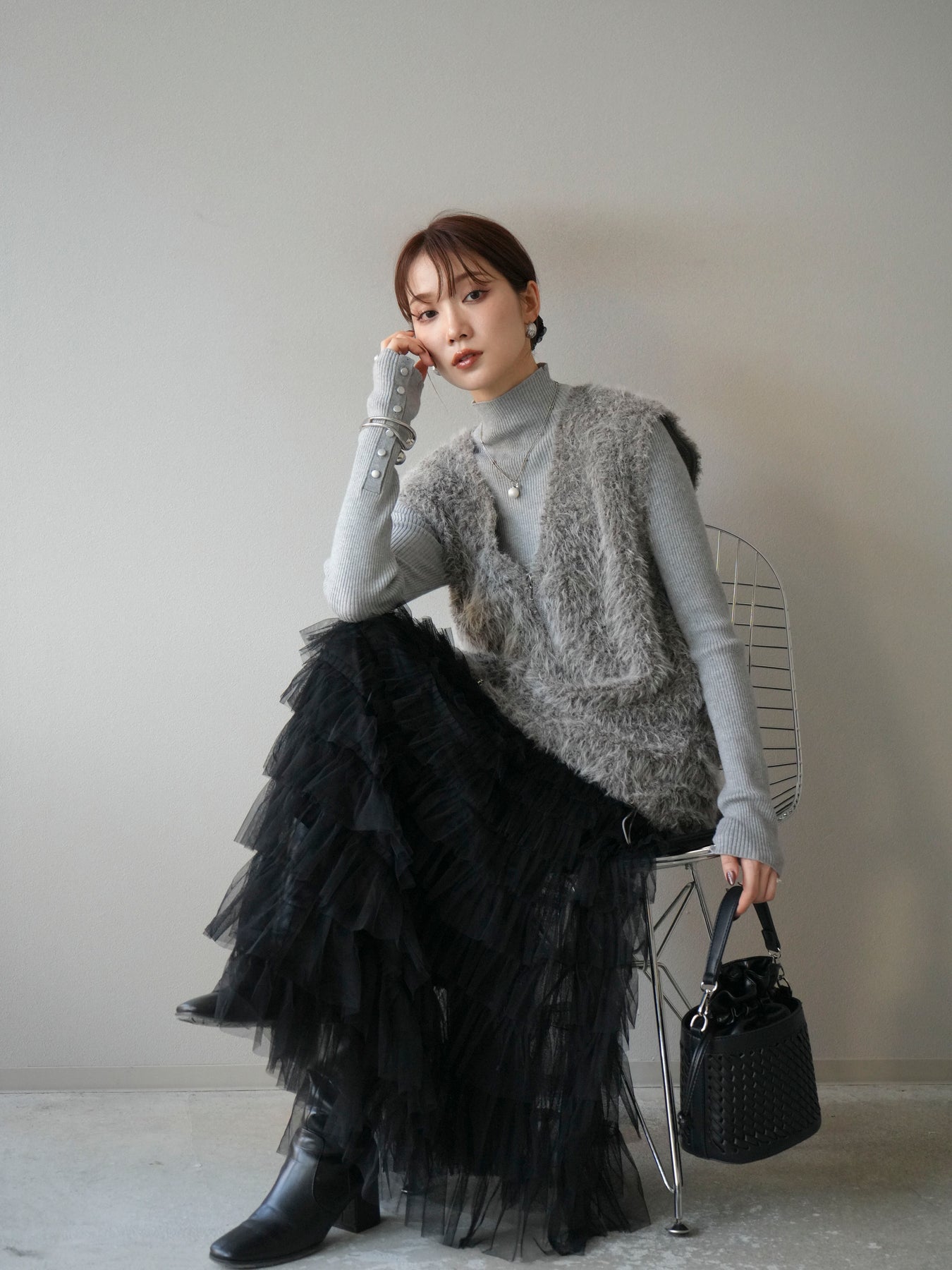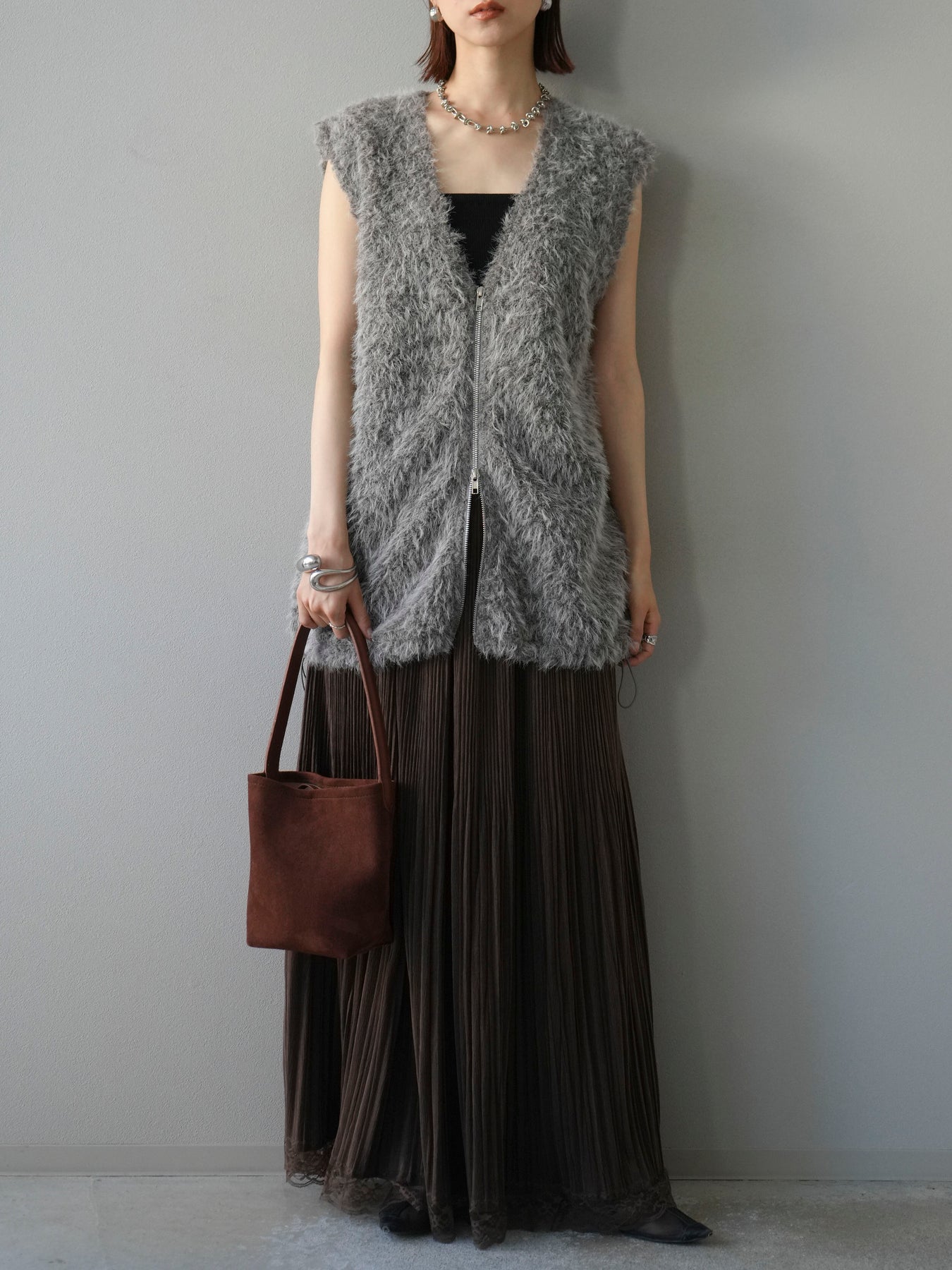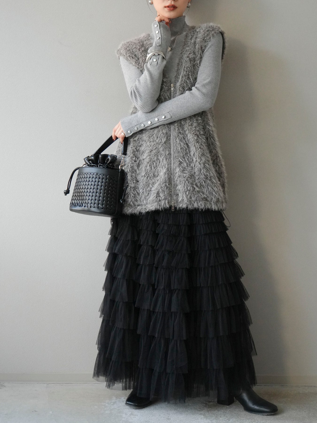 [予約]ダブルZIPループシャギーベスト/ブラック