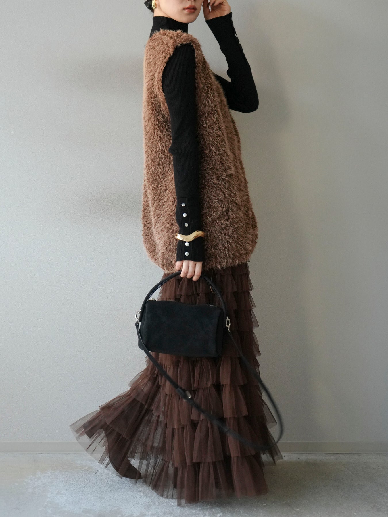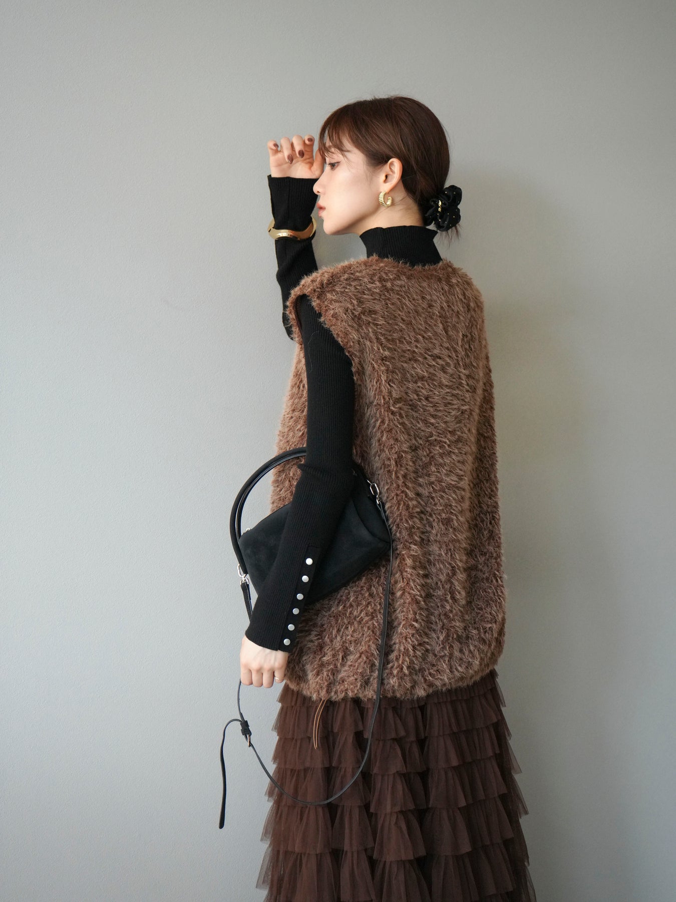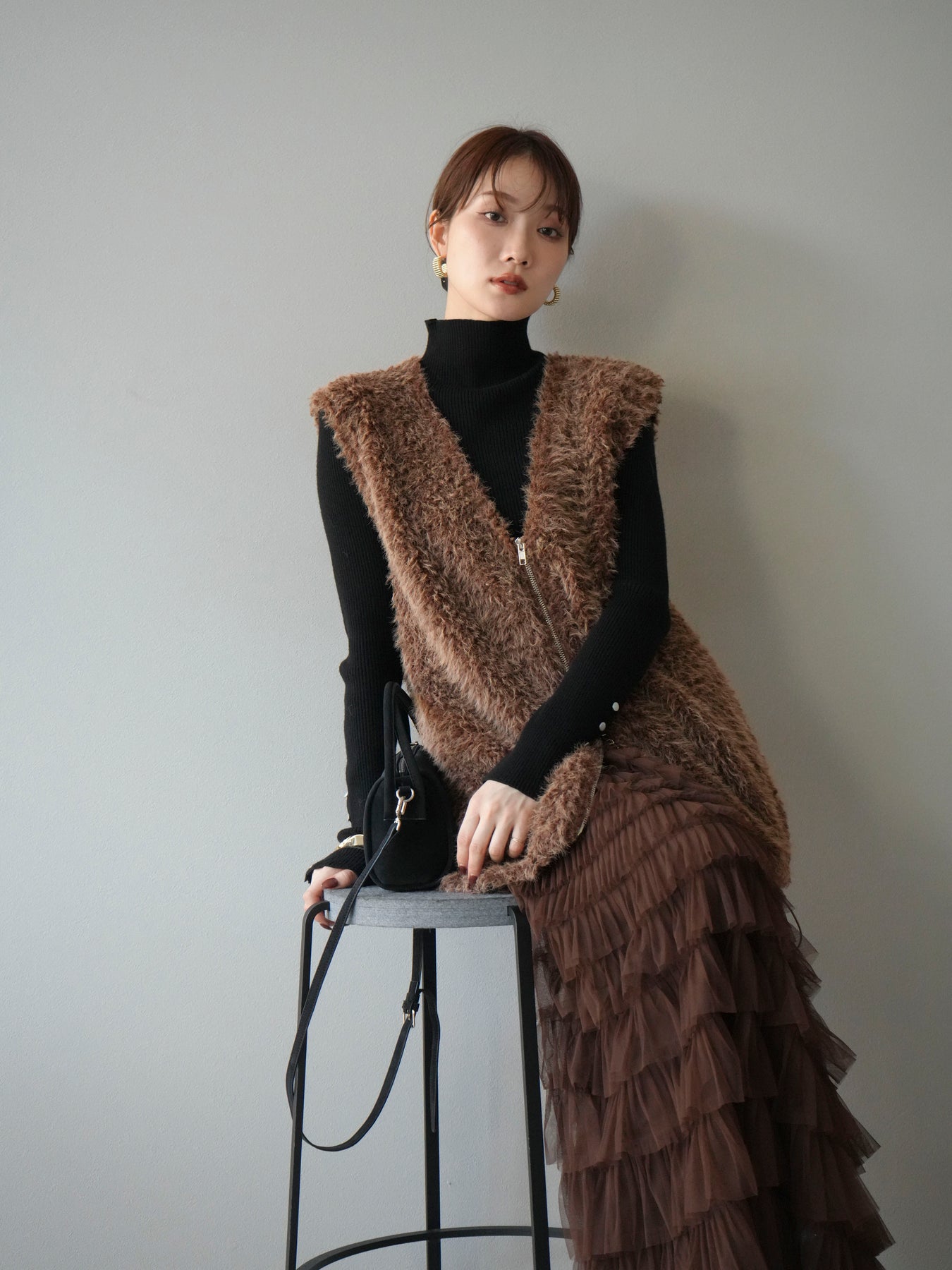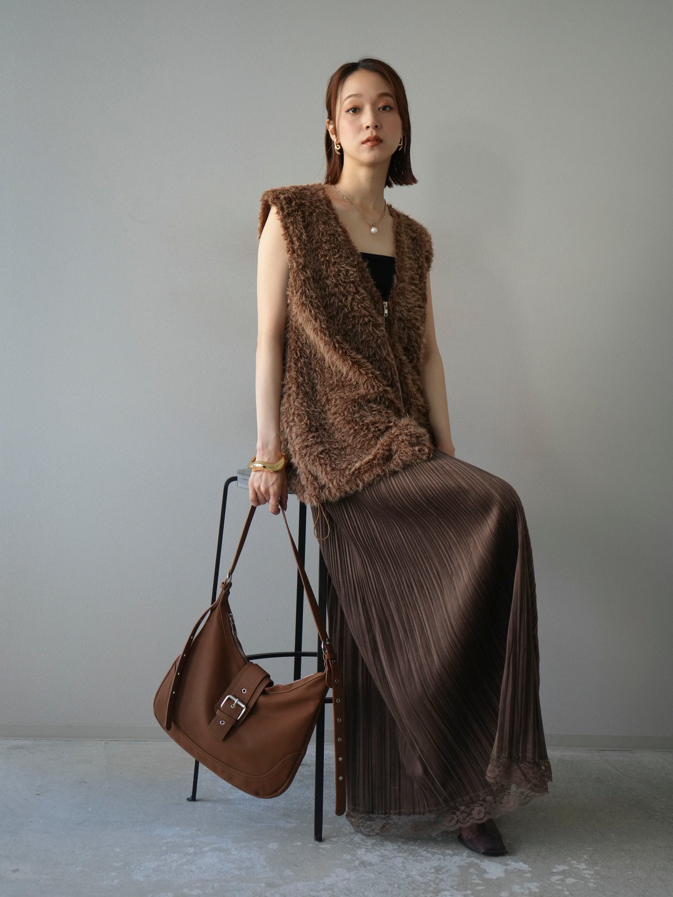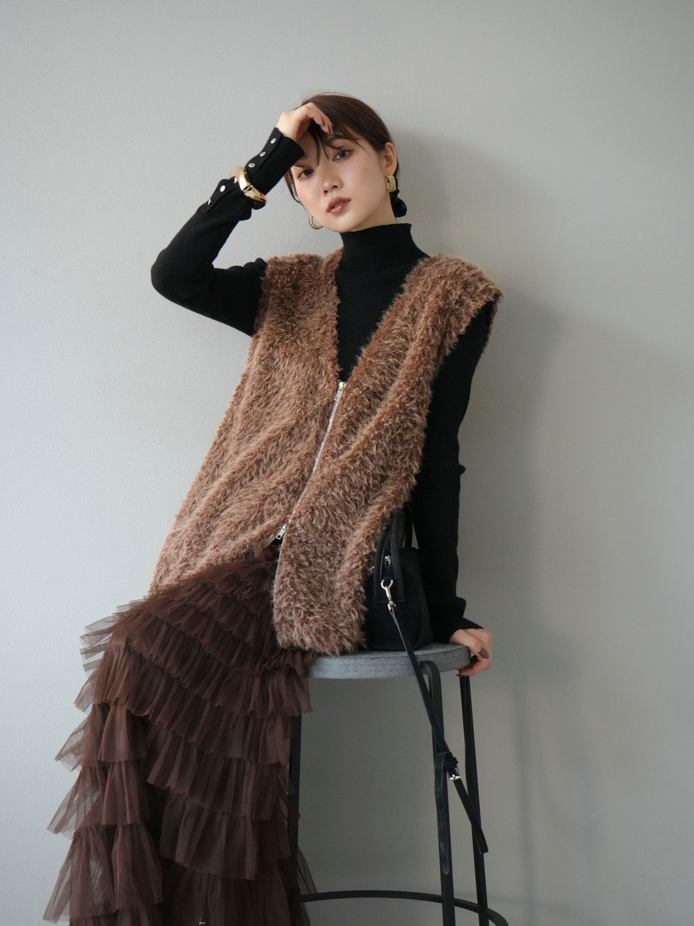 [予約]ダブルZIPループシャギーベスト/ブラウン