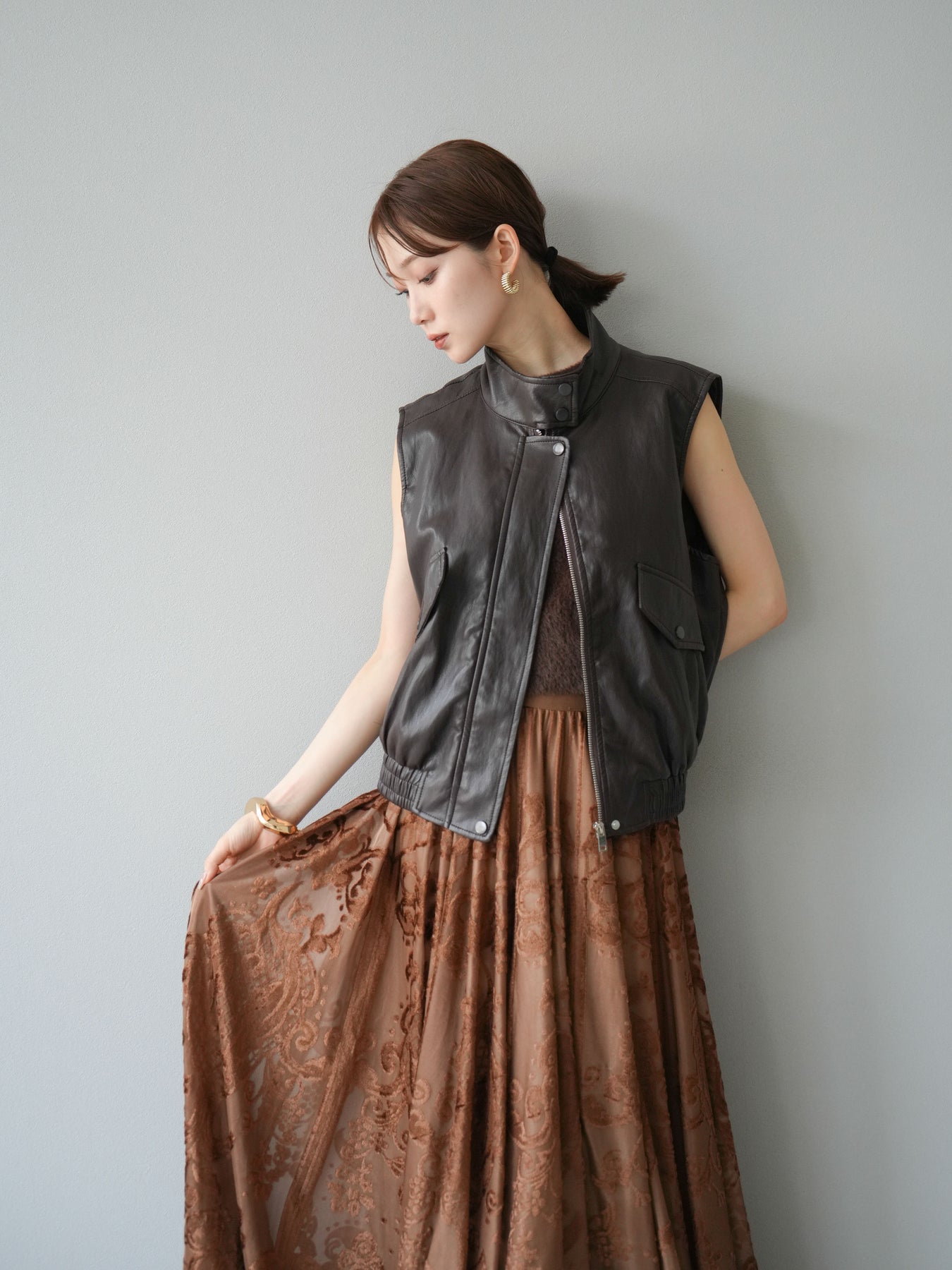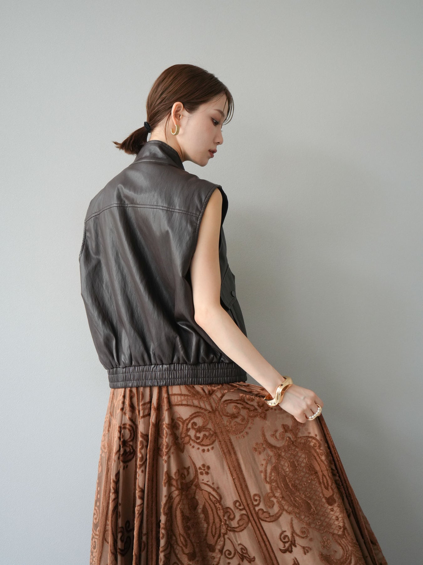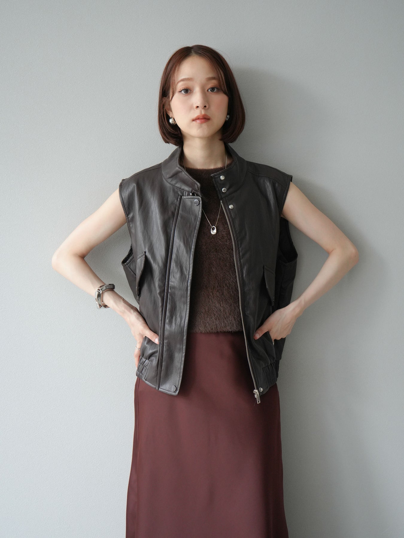 [予約]スリーブレスフェイクレザーブルゾン/ブラウン