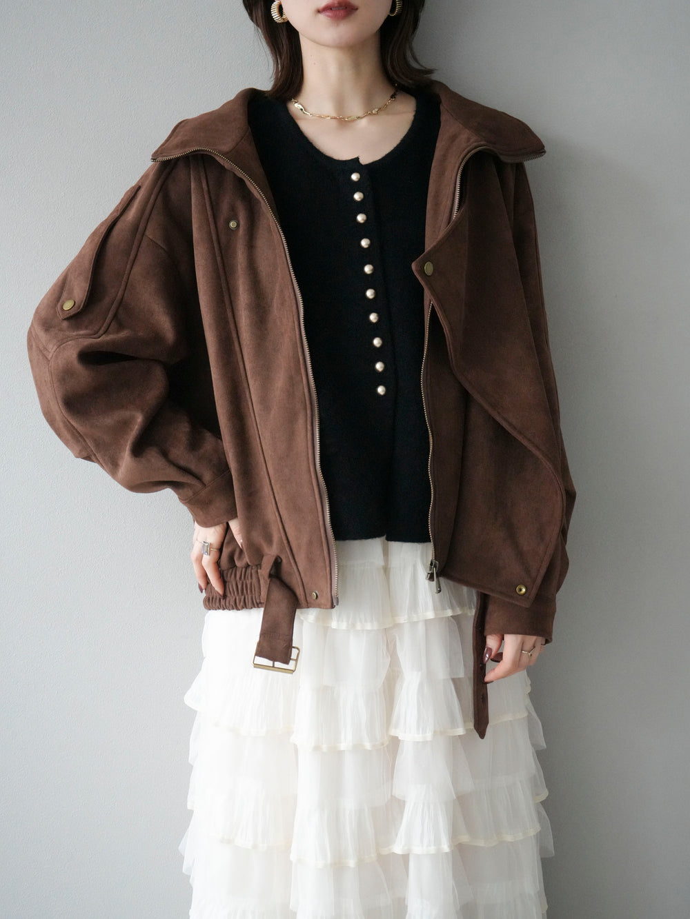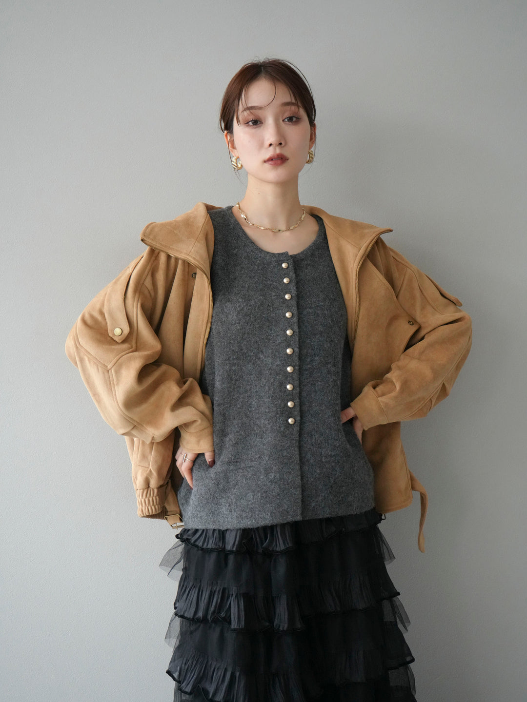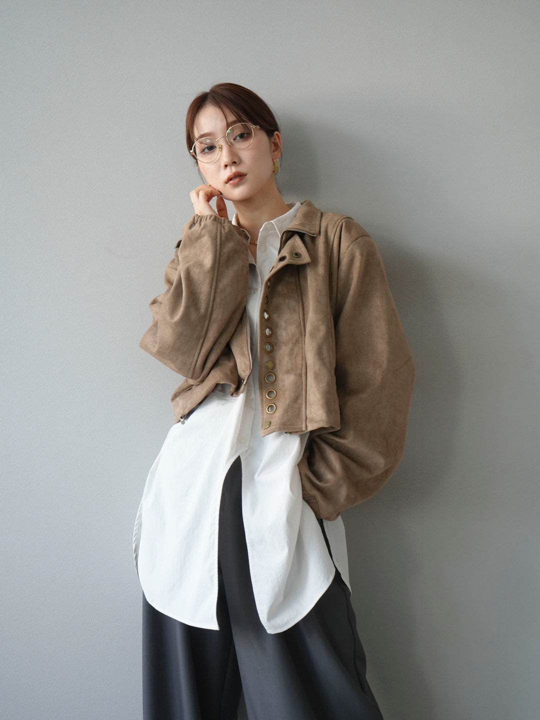 [予約]パンチングデザインスエードショートジャケット/ベージュ