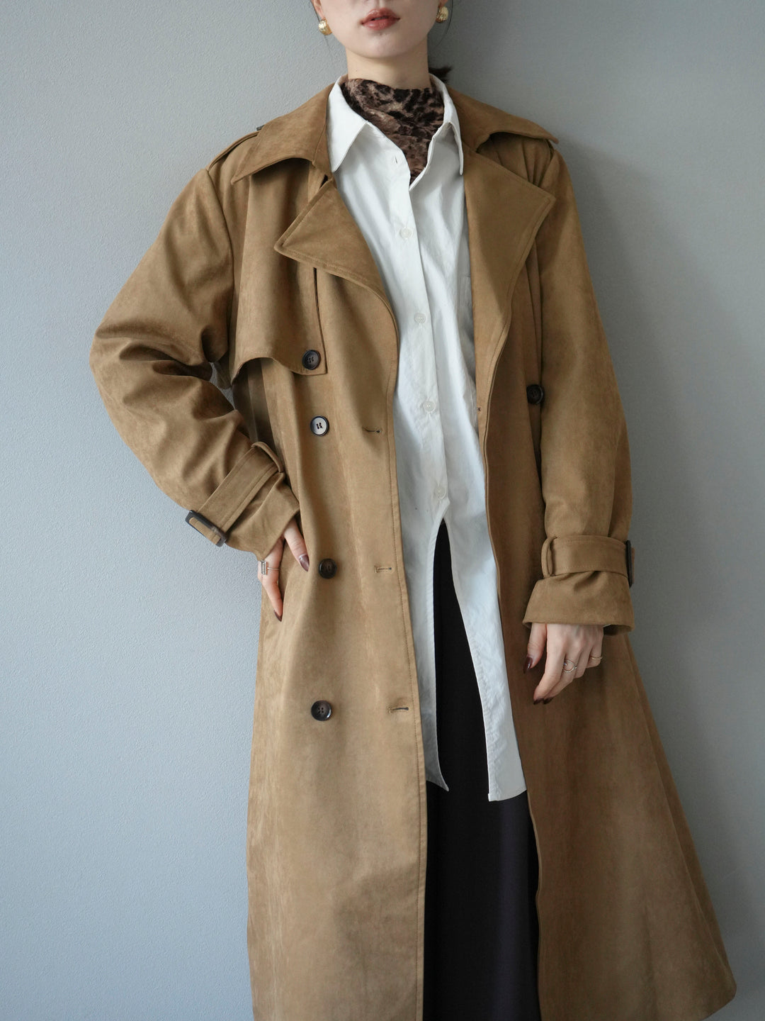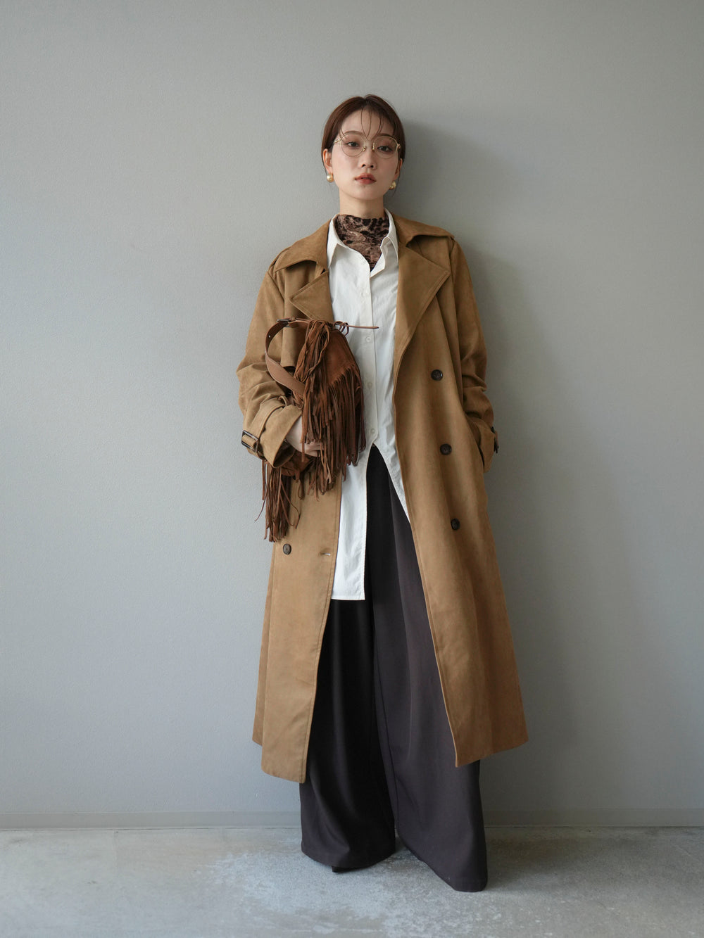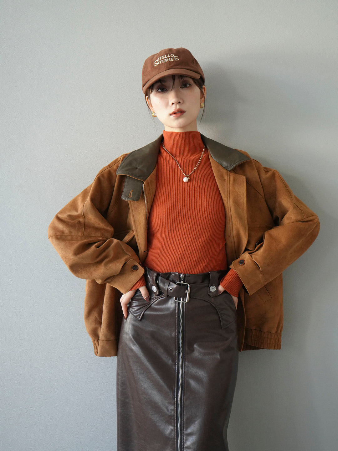 [予約]デザインポケットレザー襟スウェードジャケット/キャメル