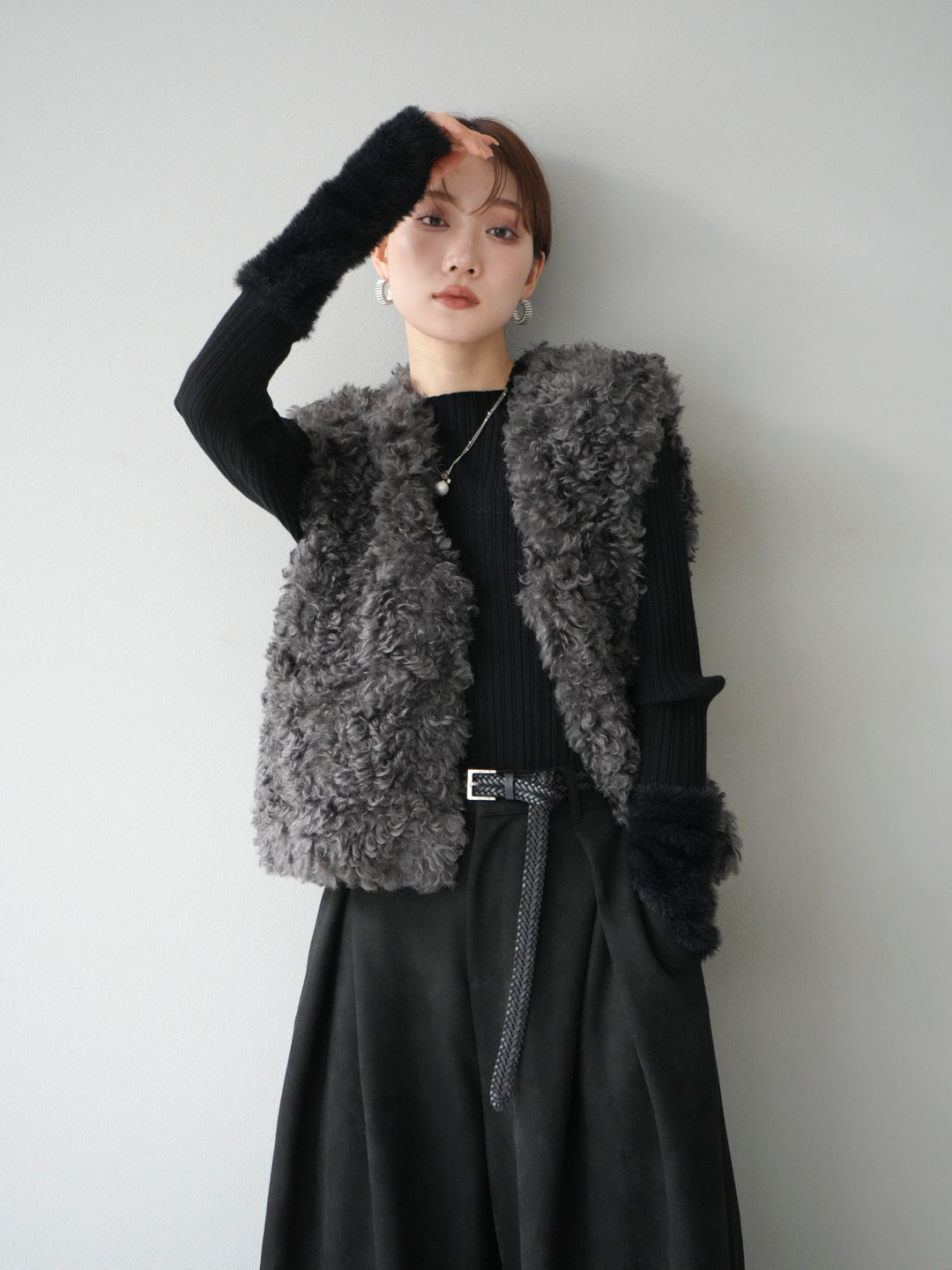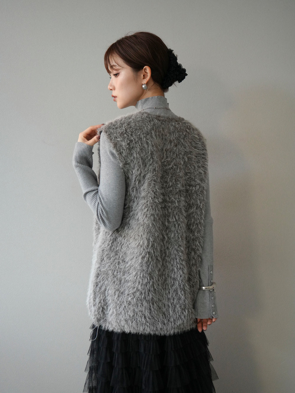 [予約]ダブルZIPループシャギーベスト/ブラック