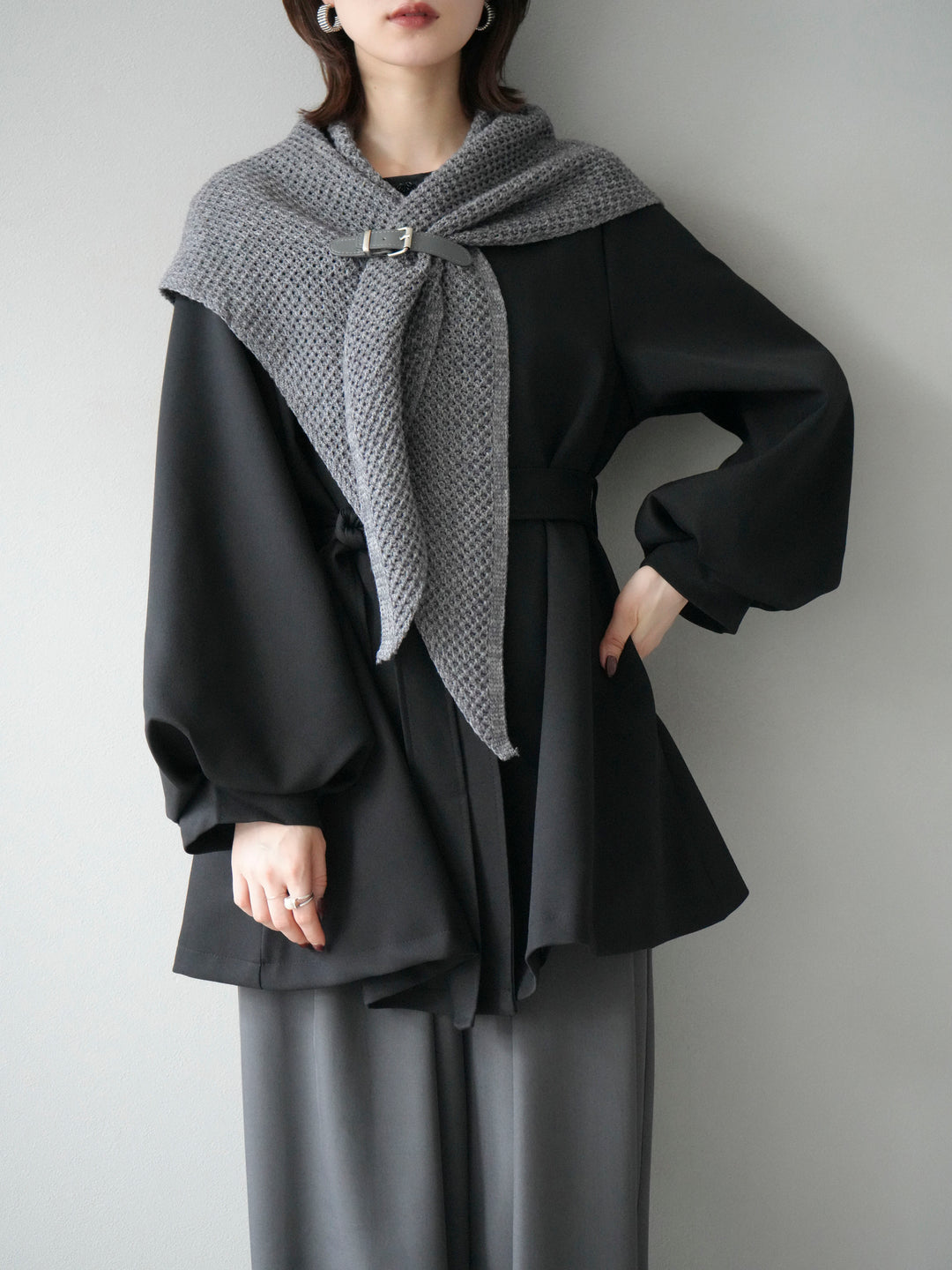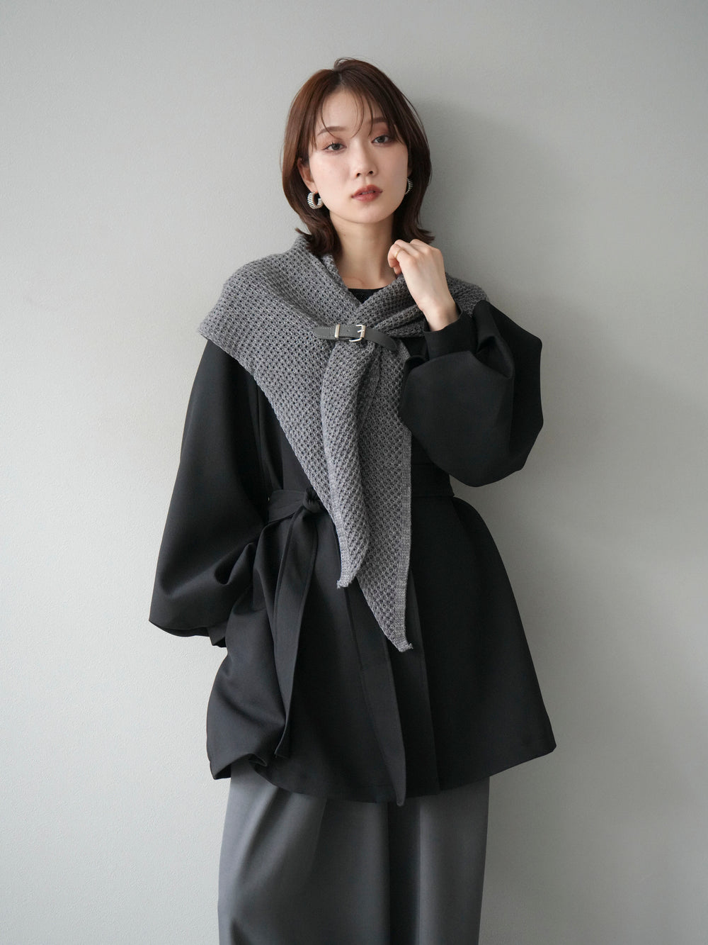 [予約]ストールニット付きボリュームスリーブミディアムコート/ブラック