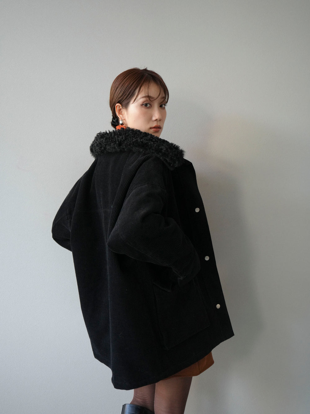 [予約]コーデュロイボア襟フライトジャケット/ブラック