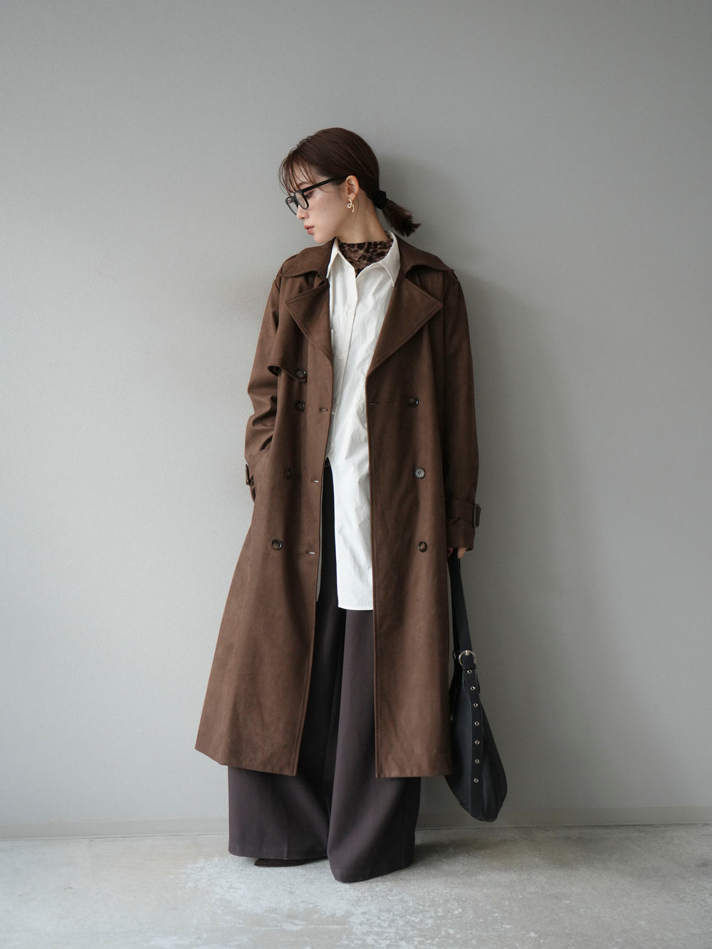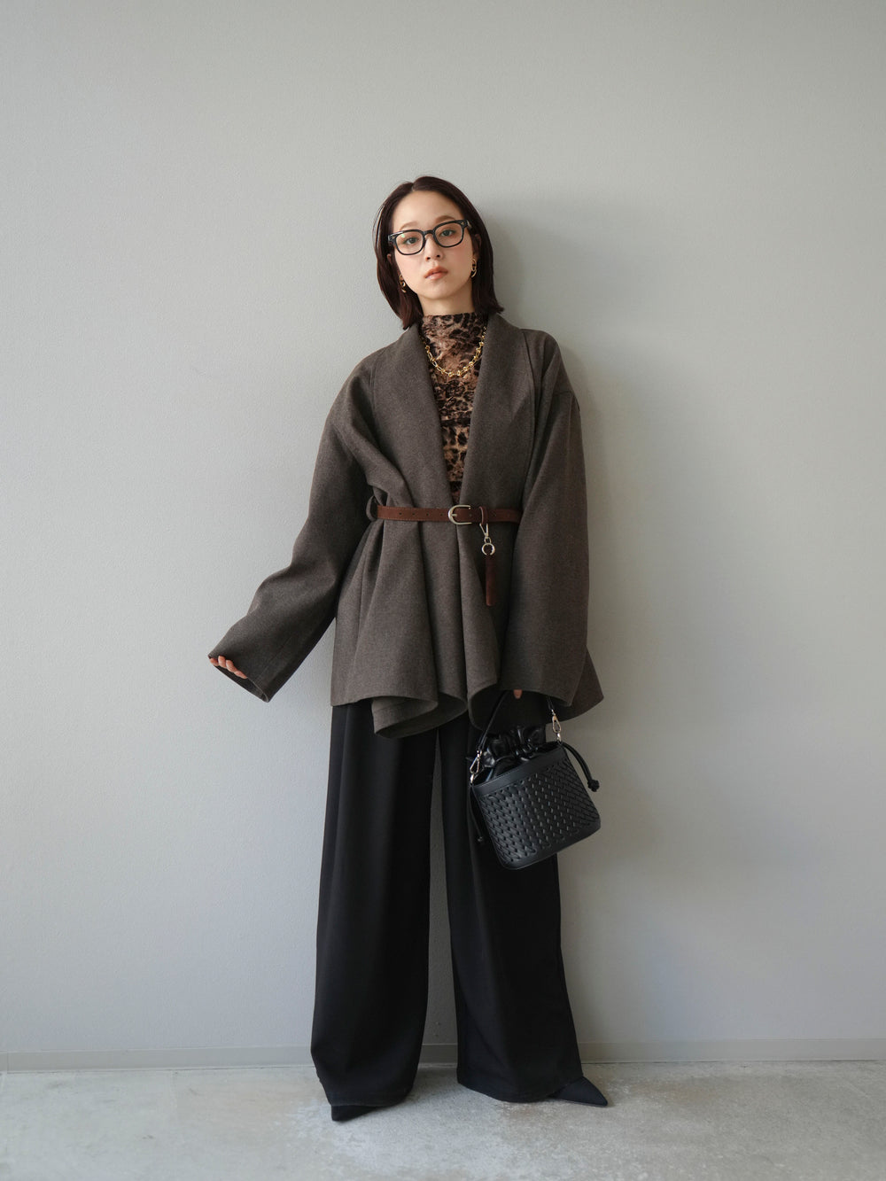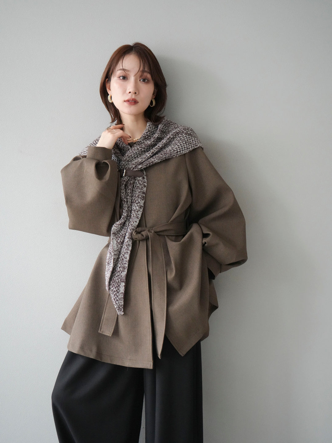 [予約]ストールニット付きボリュームスリーブミディアムコート/ブラウン