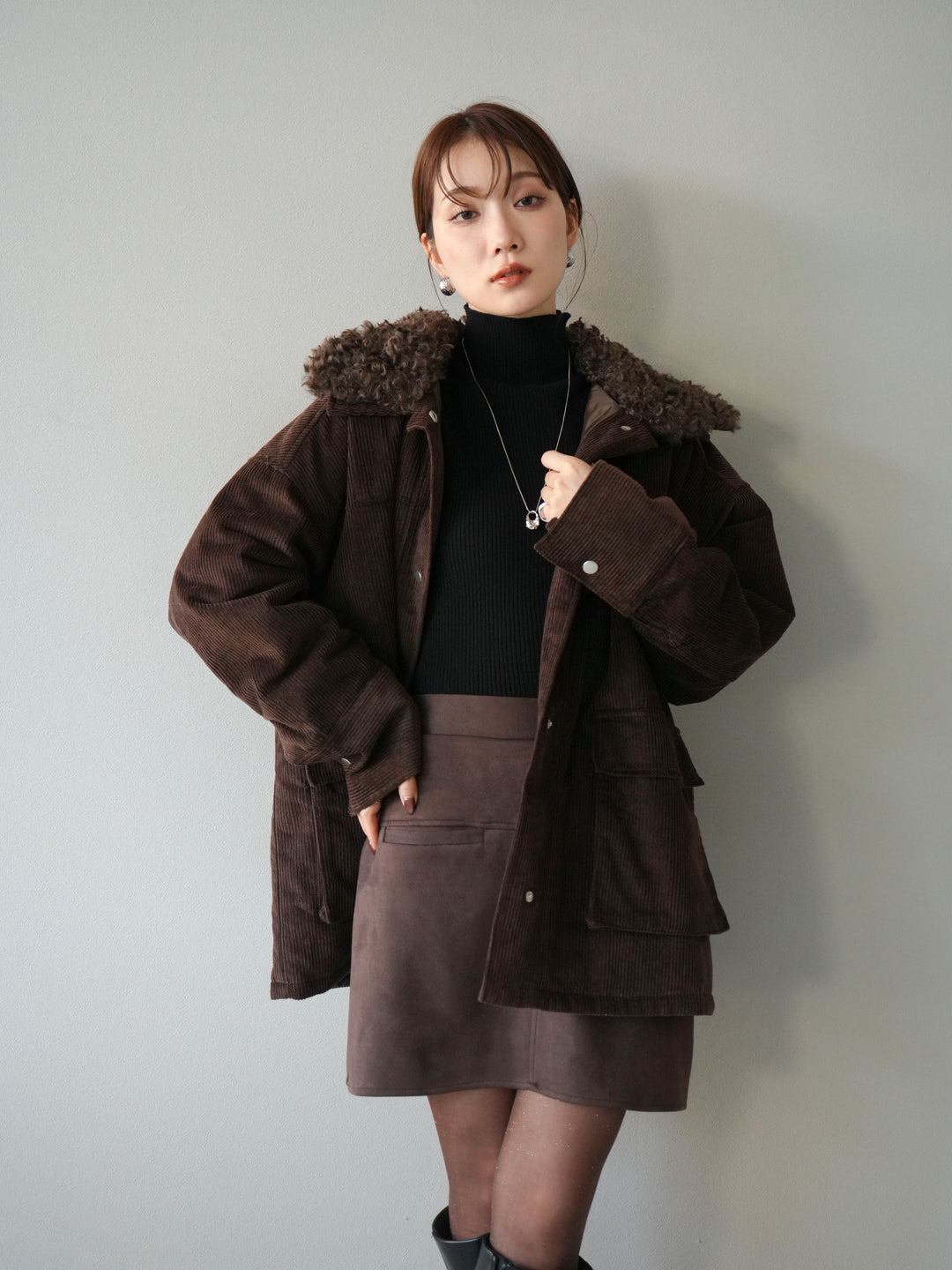 [予約]コーデュロイボア襟フライトジャケット/ブラウン