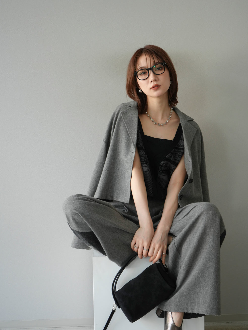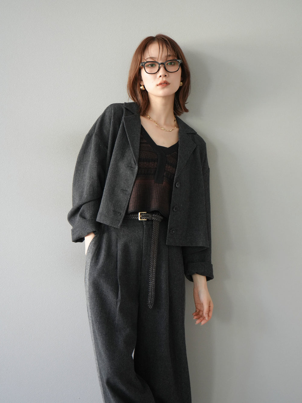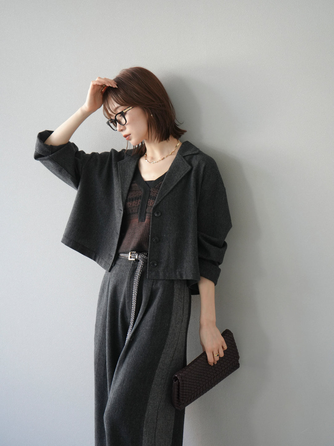 [予約]ツイードショートジャケット/グレー