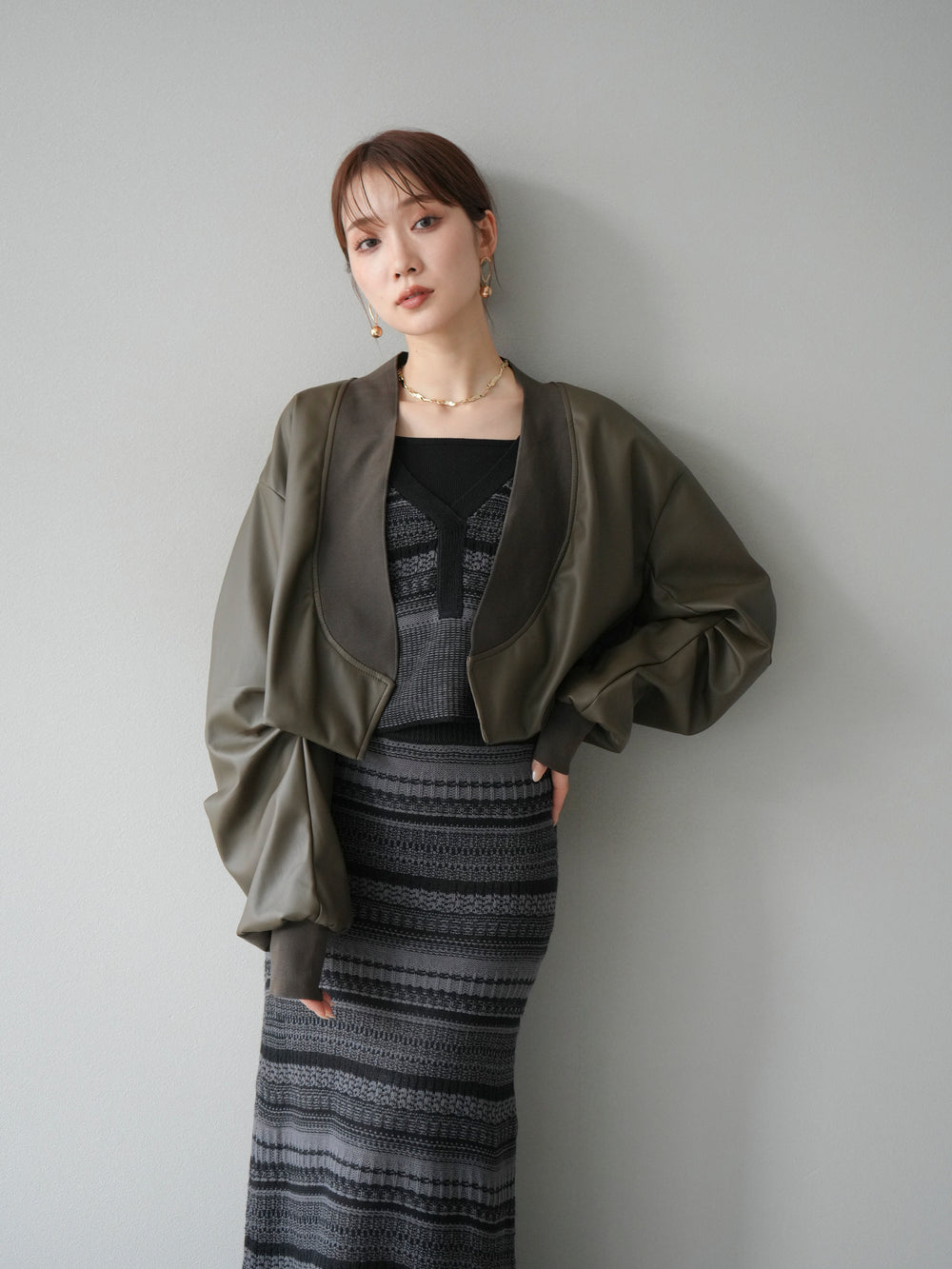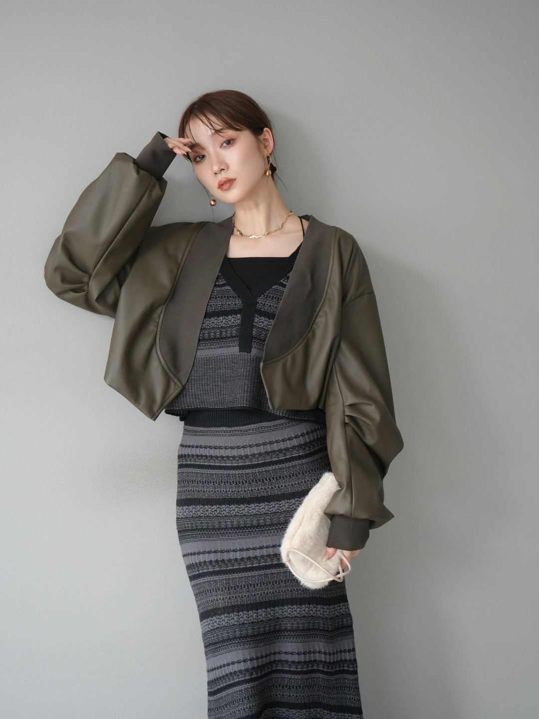 [予約]レザーバルーンボレロ/カーキ