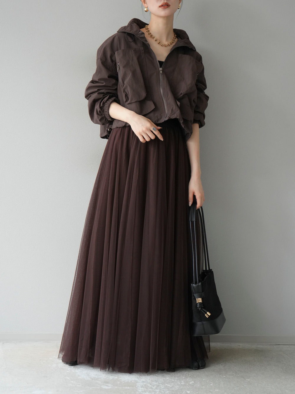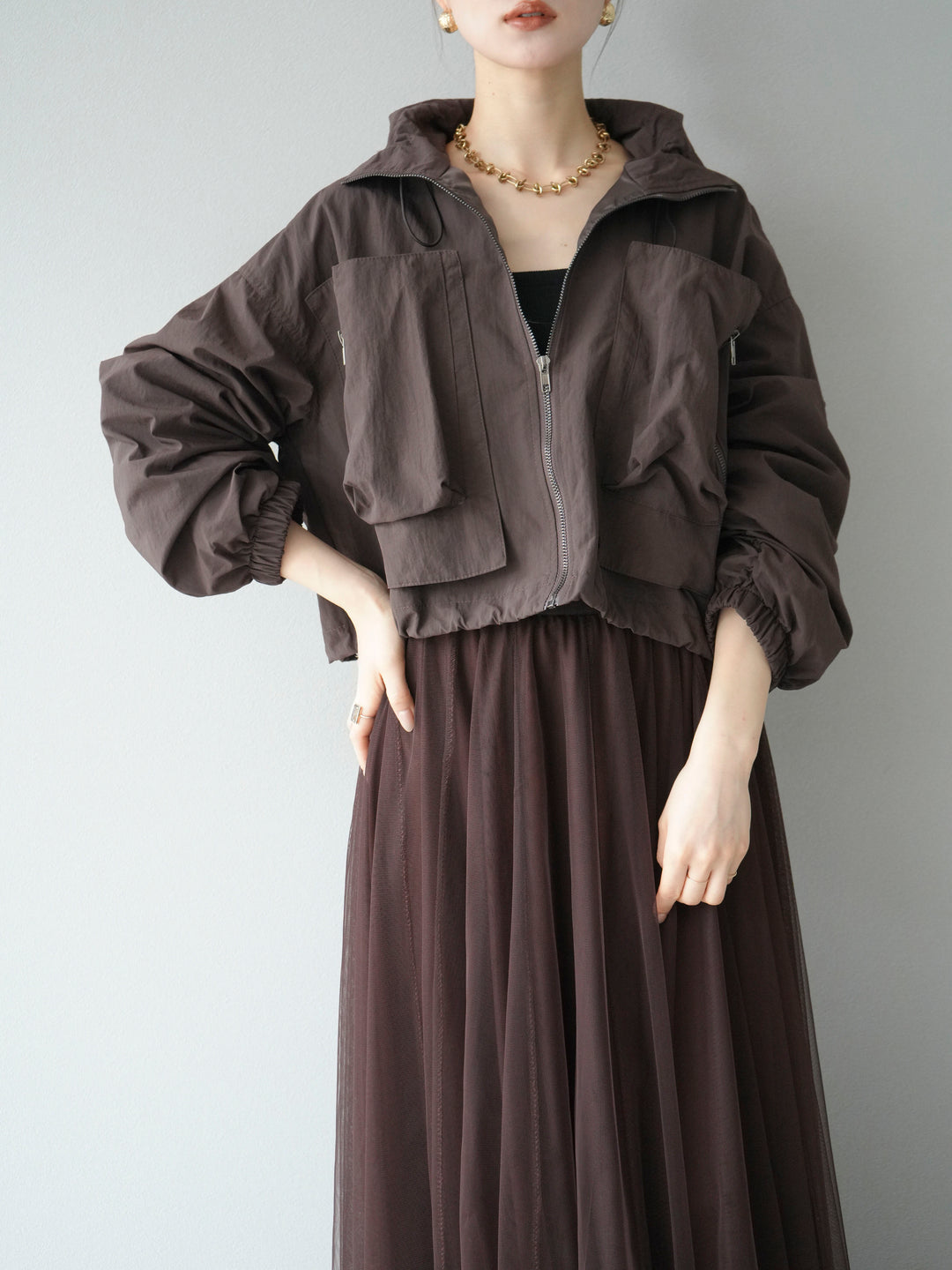 [予約]ポケットデザインショートブルゾン/ブラウン