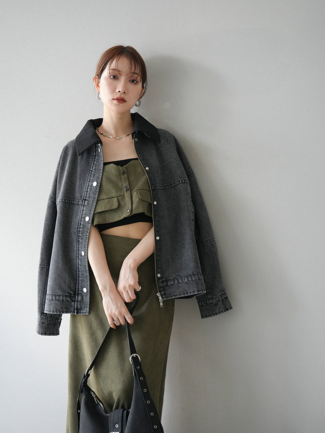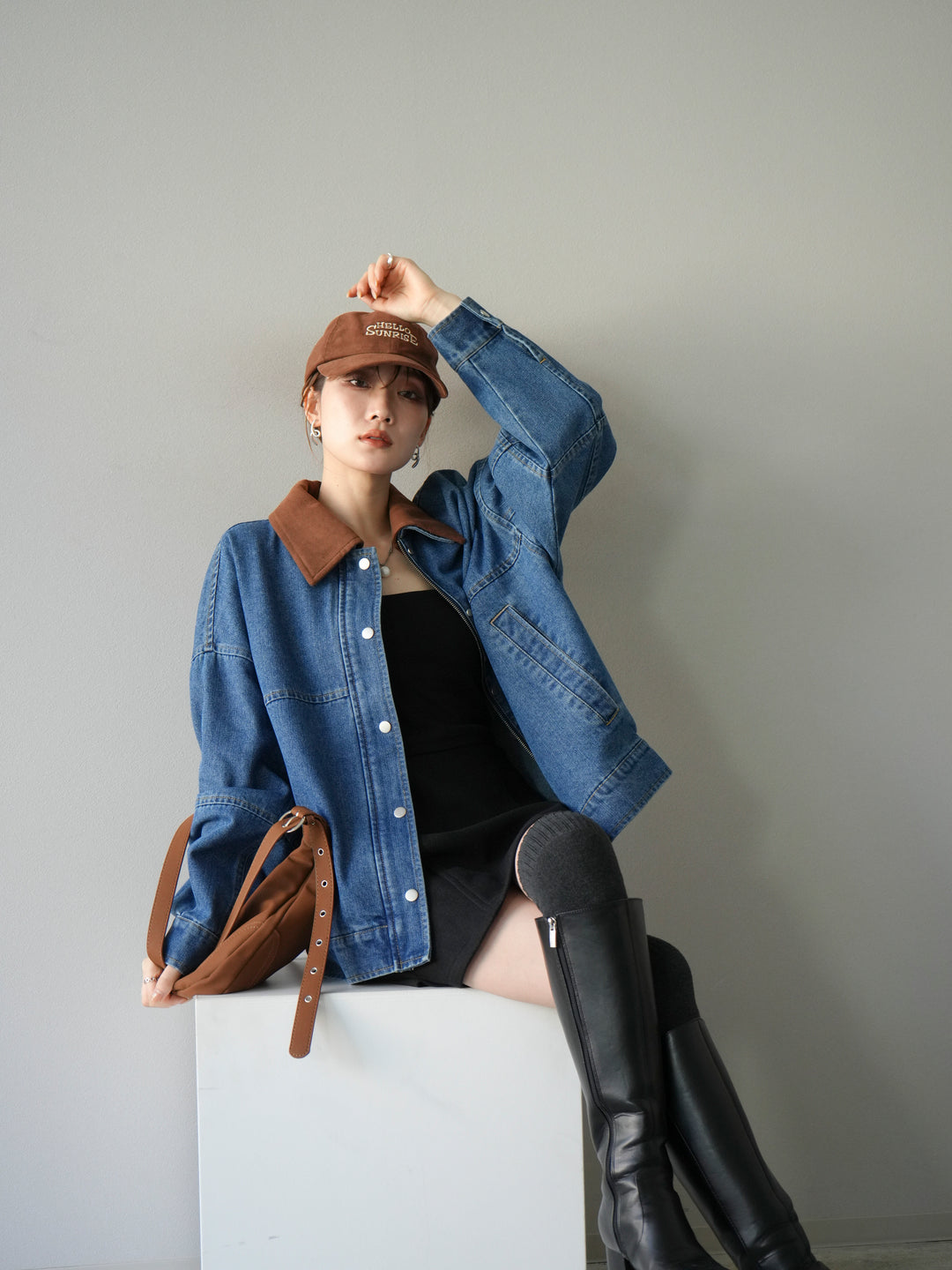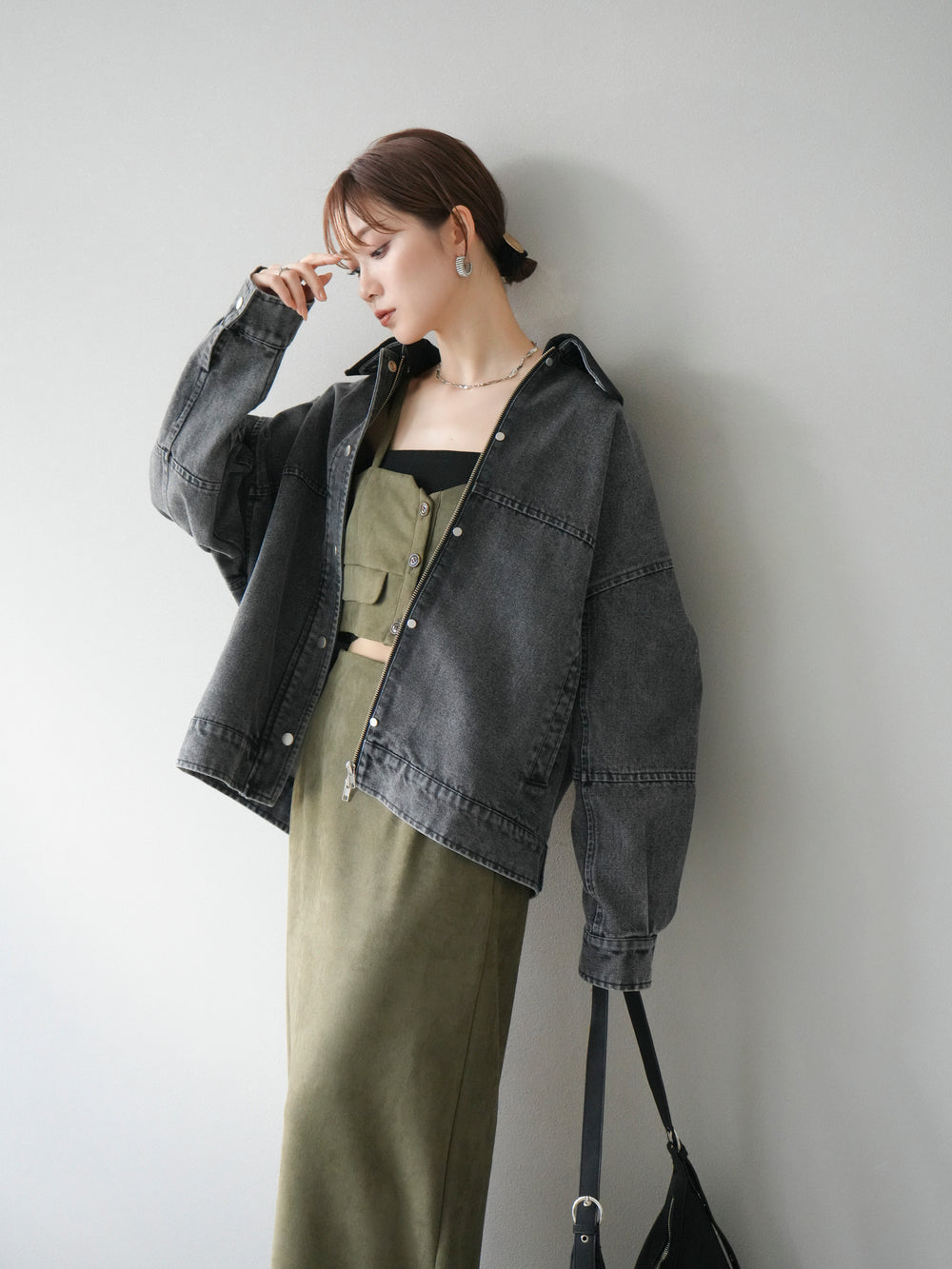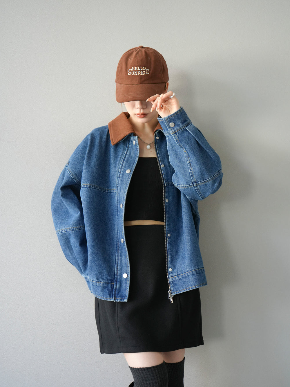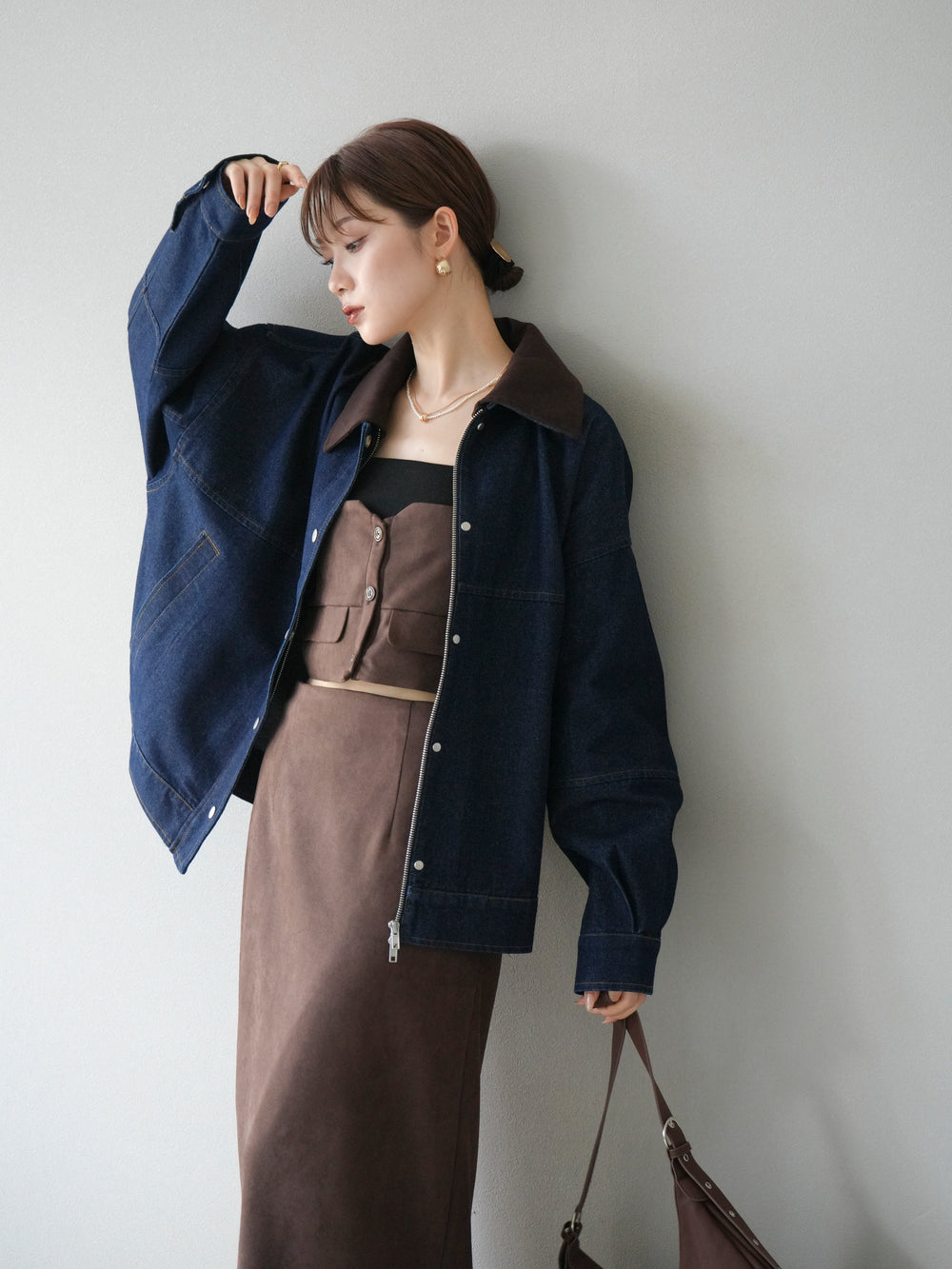 [予約]スウェード襟切替デニムブルゾン/ブラック