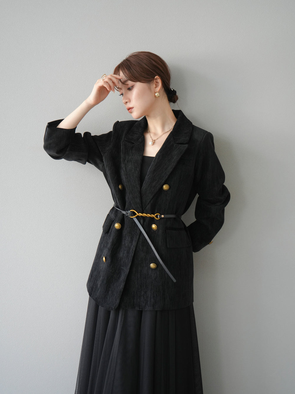 [予約]エステルオーバーテーラードジャケット/ブラック