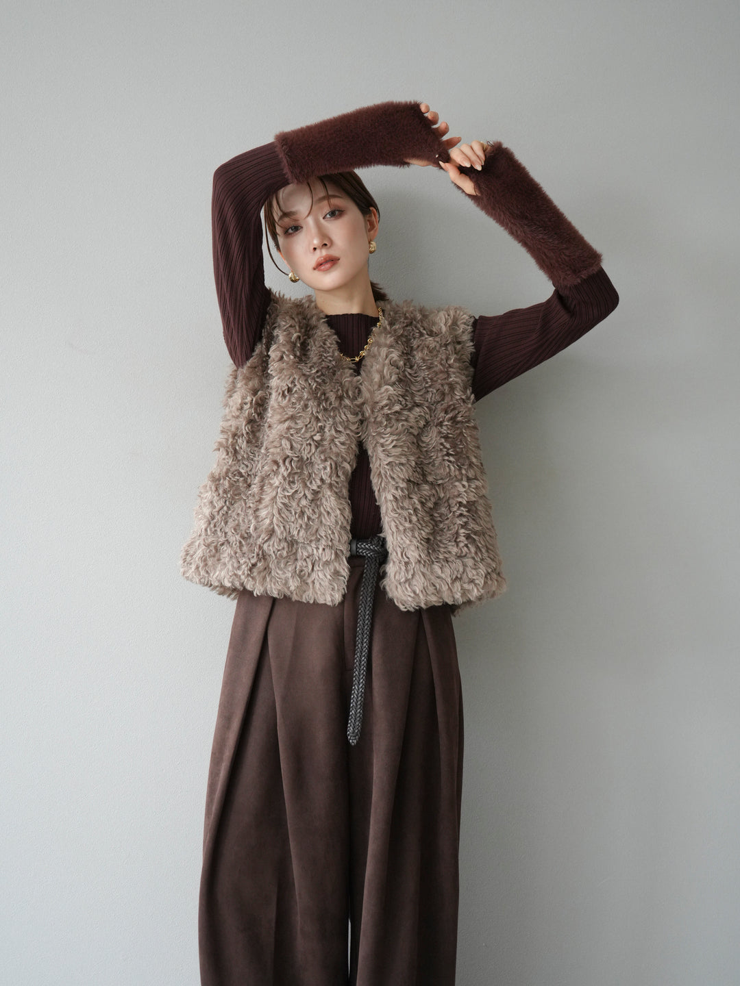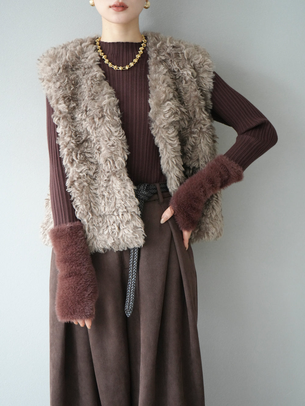 [予約]プードルファーショートベスト/モカ
