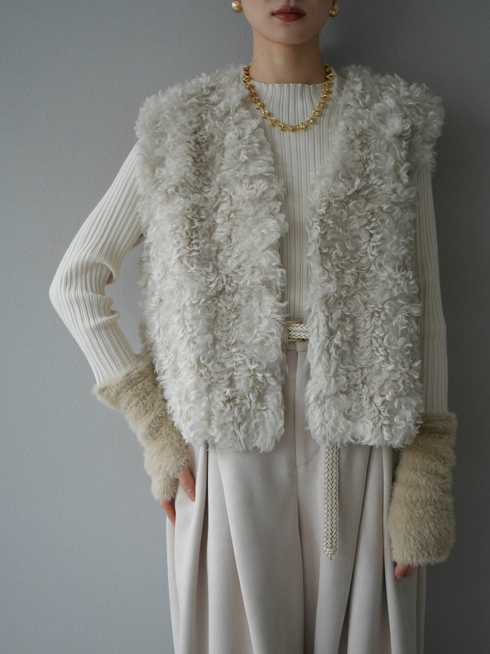 [予約]プードルファーショートベスト/エクリュ