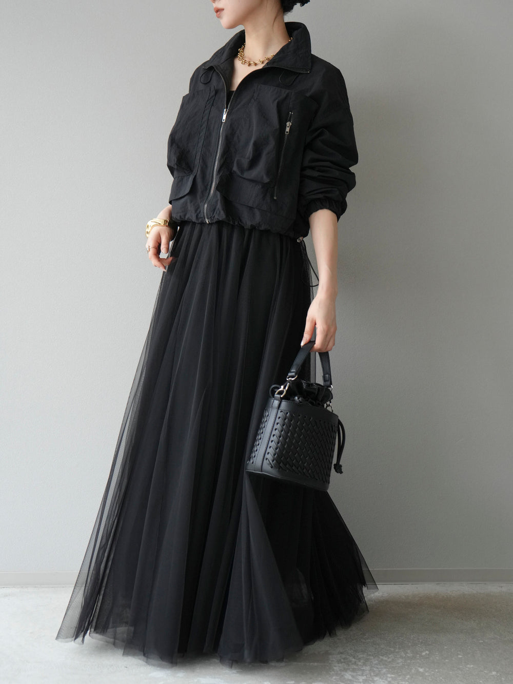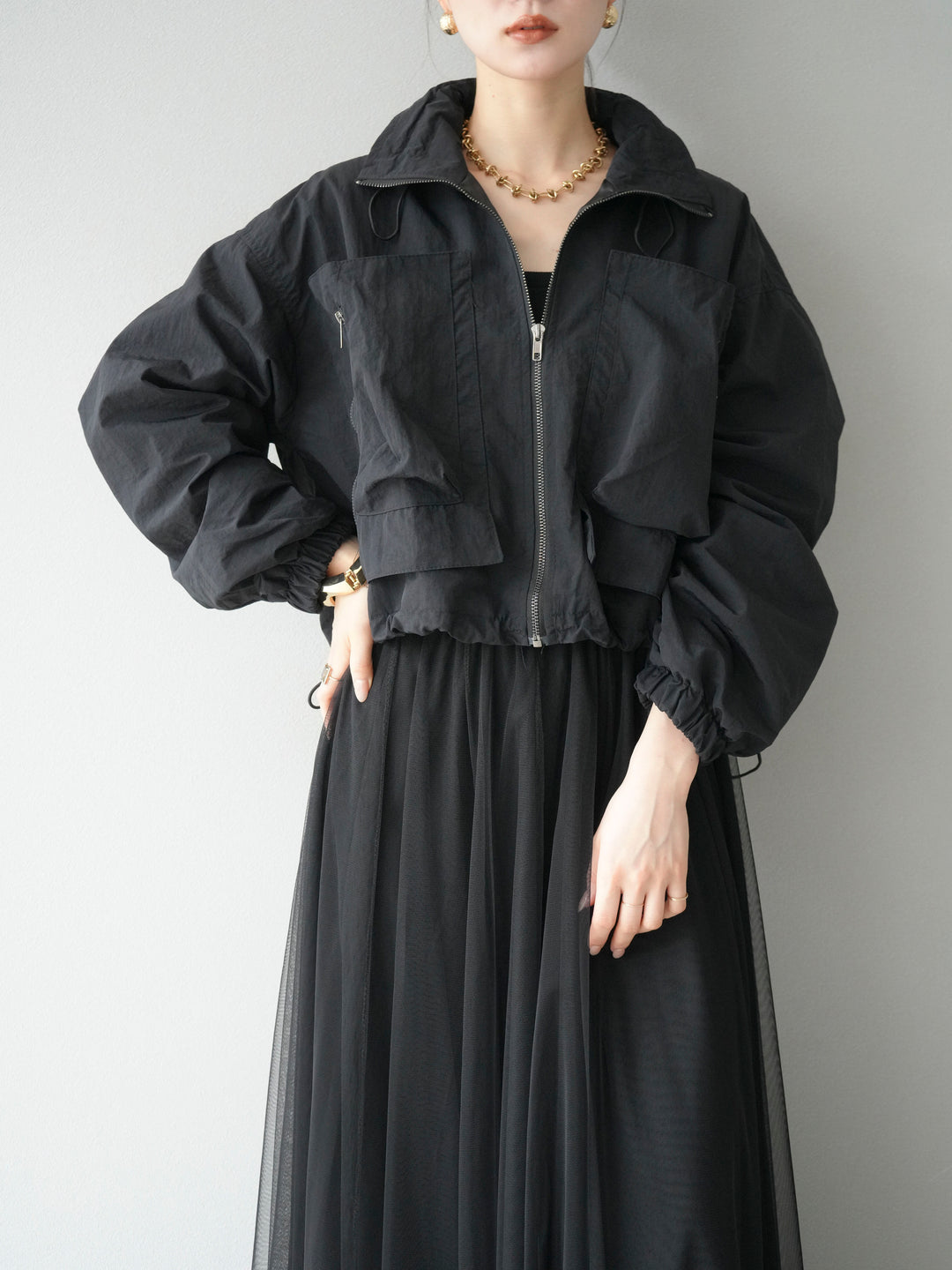 [予約]ポケットデザインショートブルゾン/ブラック