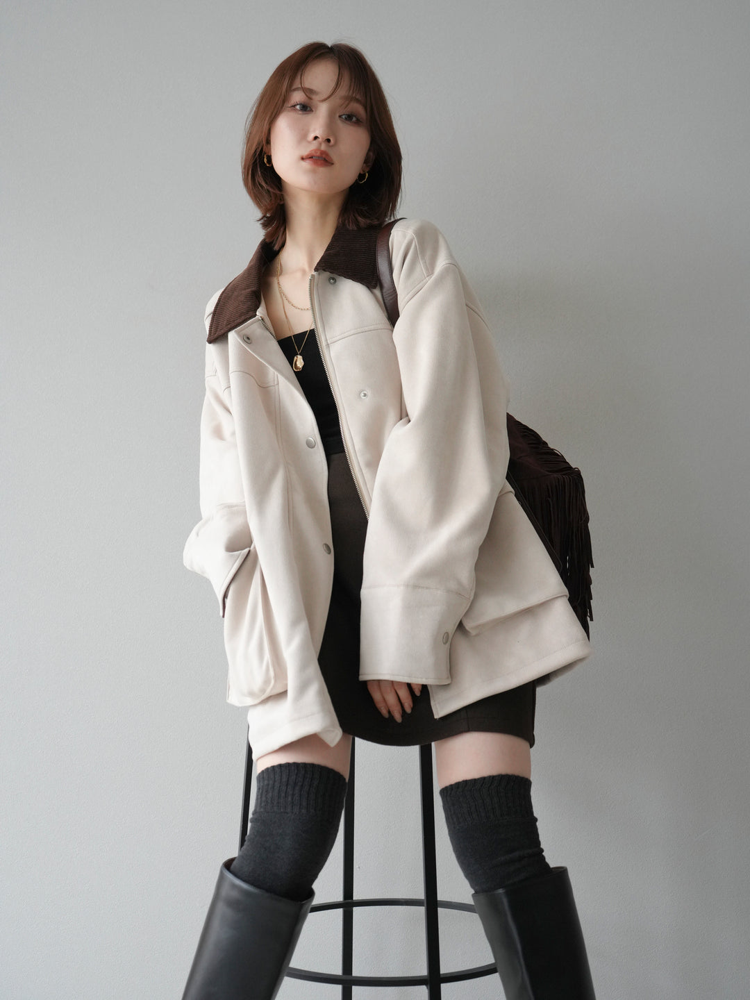 [予約]コーデュロイ襟スウェードミドルジャケット /エクリュ