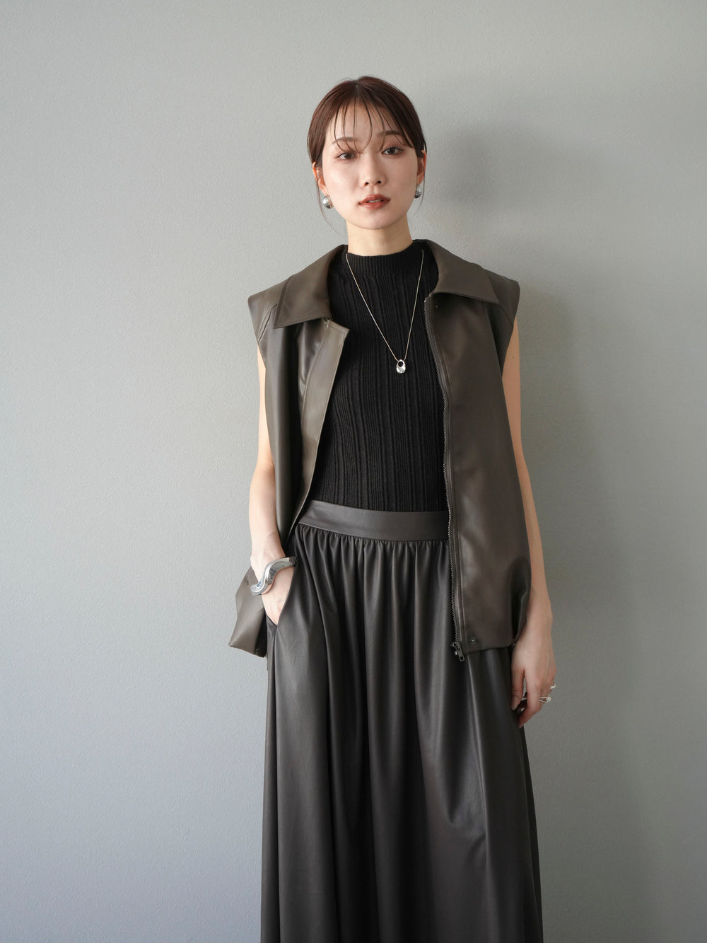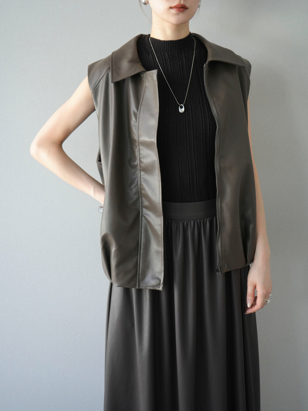 [予約]タックヘムレザーベスト/ブラウン