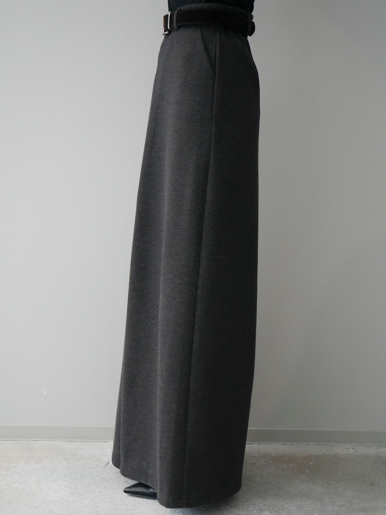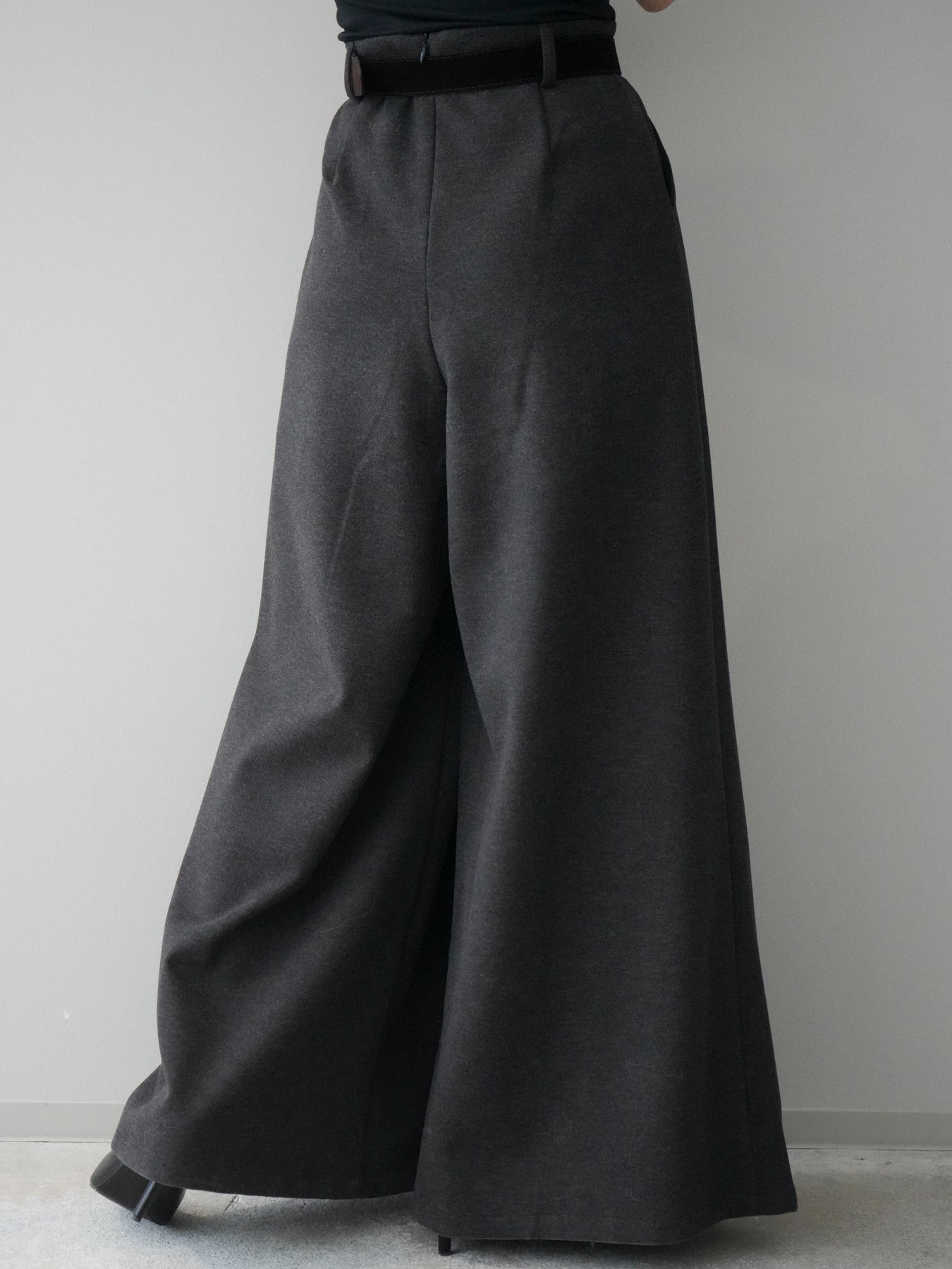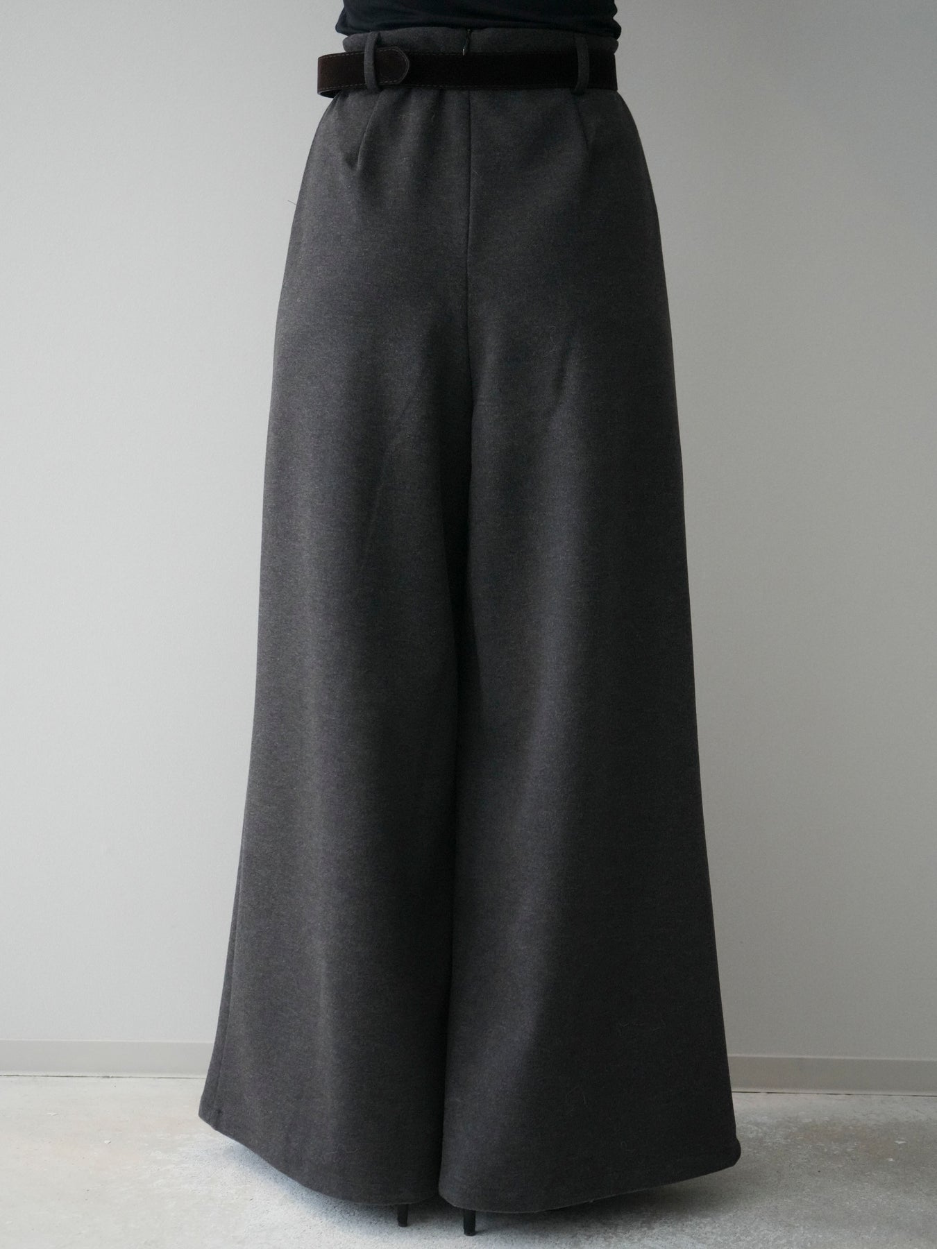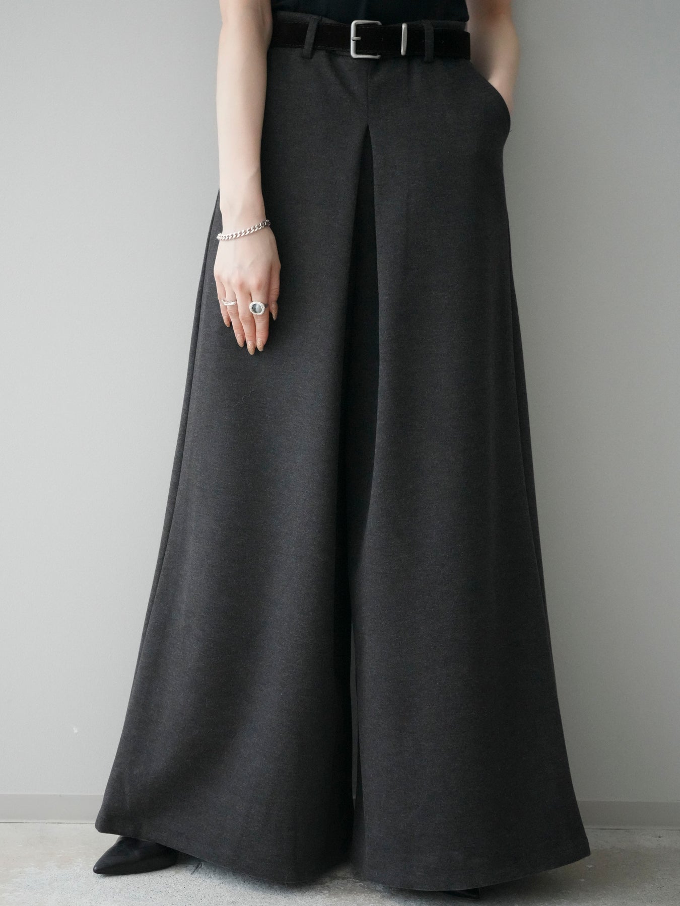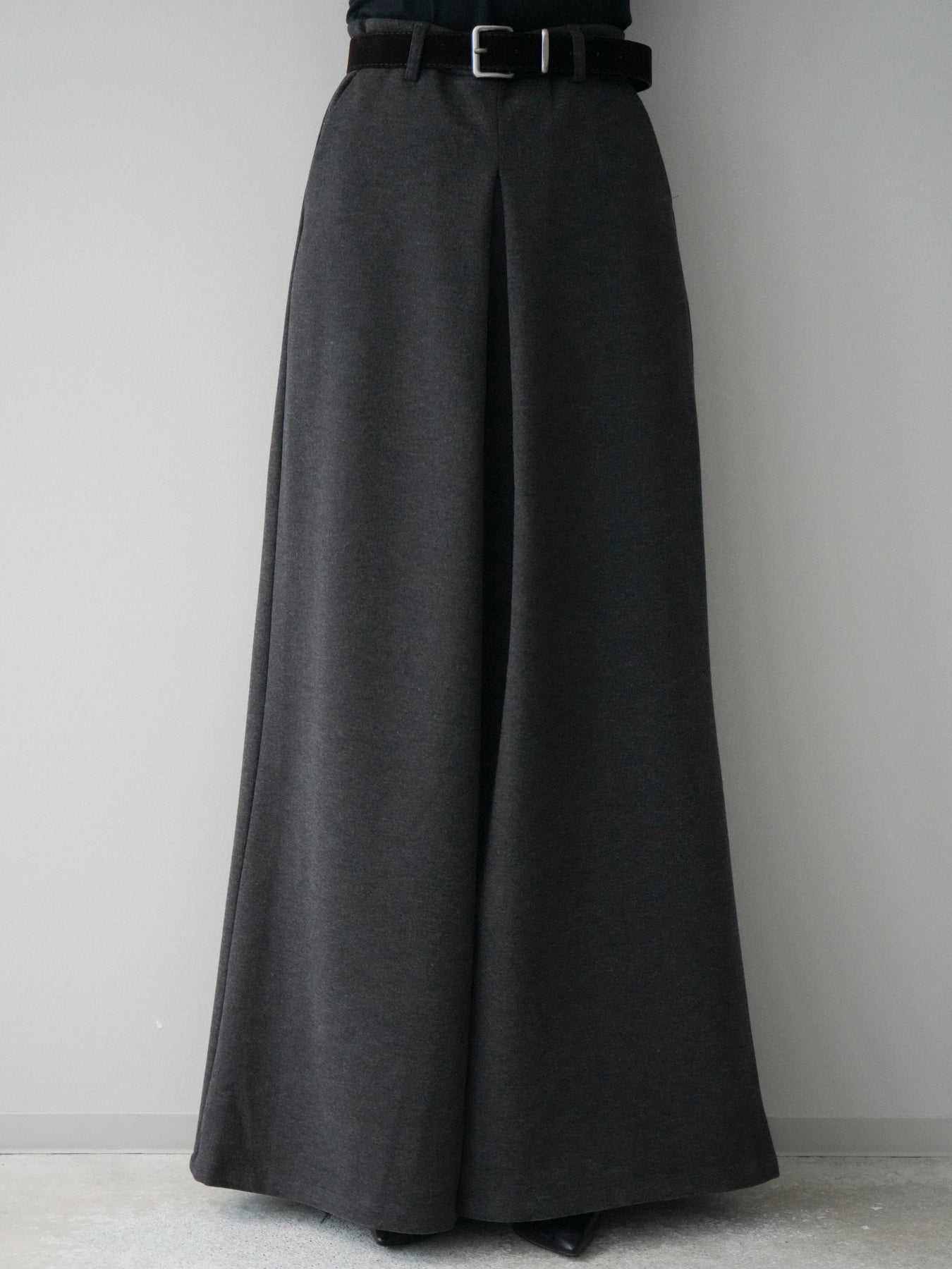 [予約]ベルト付きフロントタックワイドパンツ/charcoal