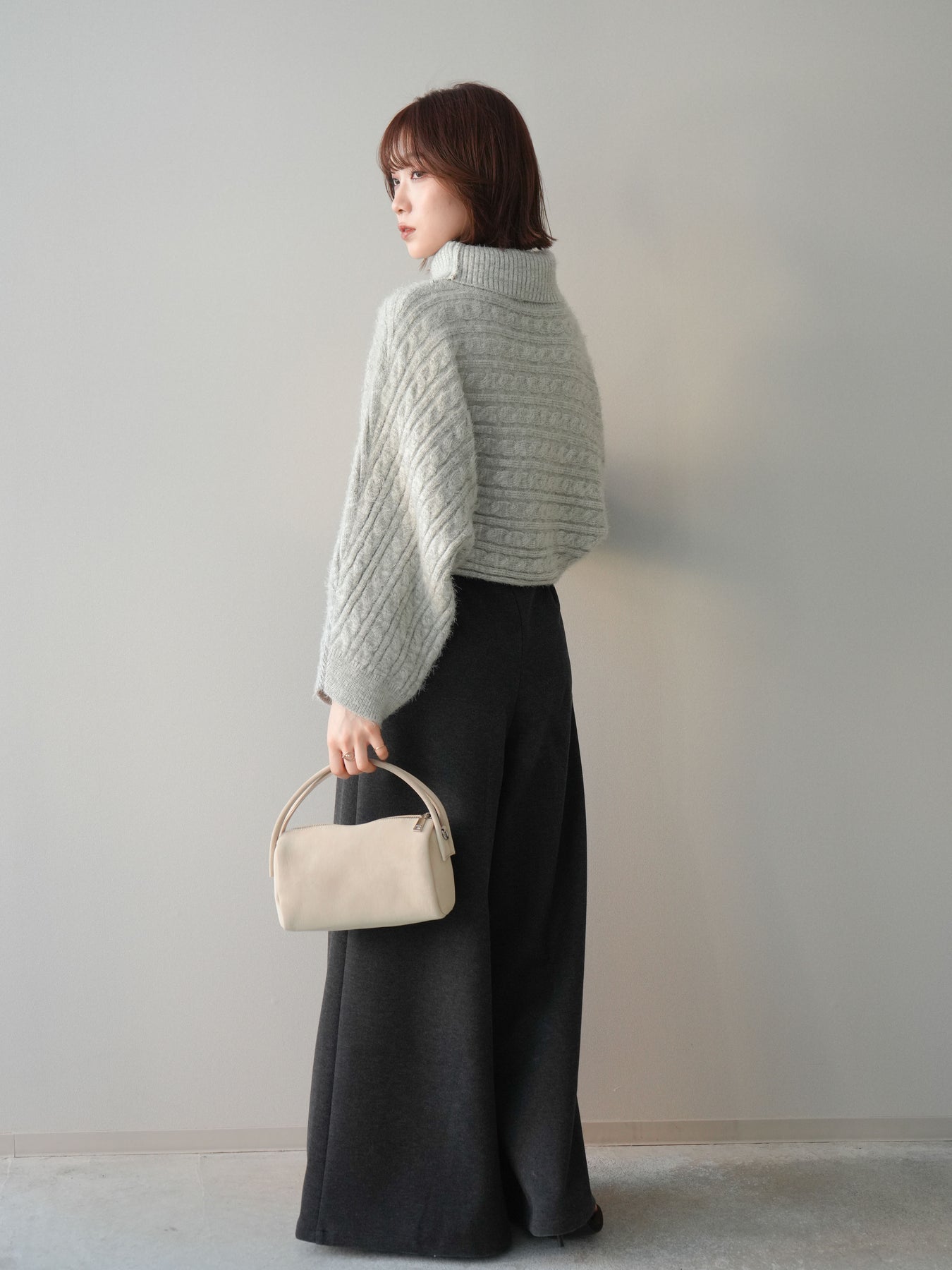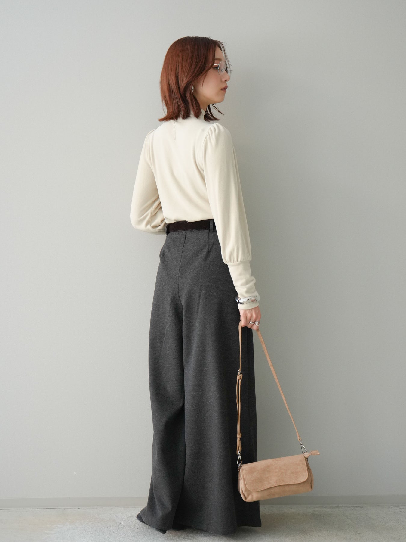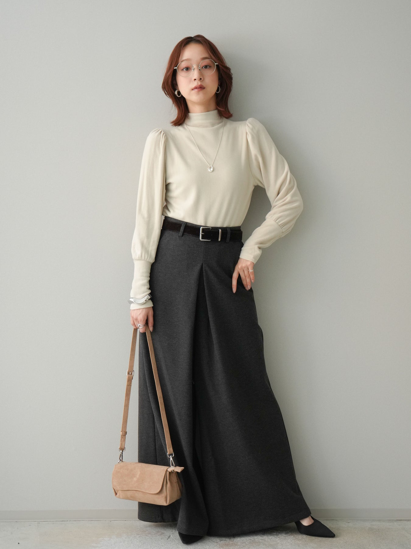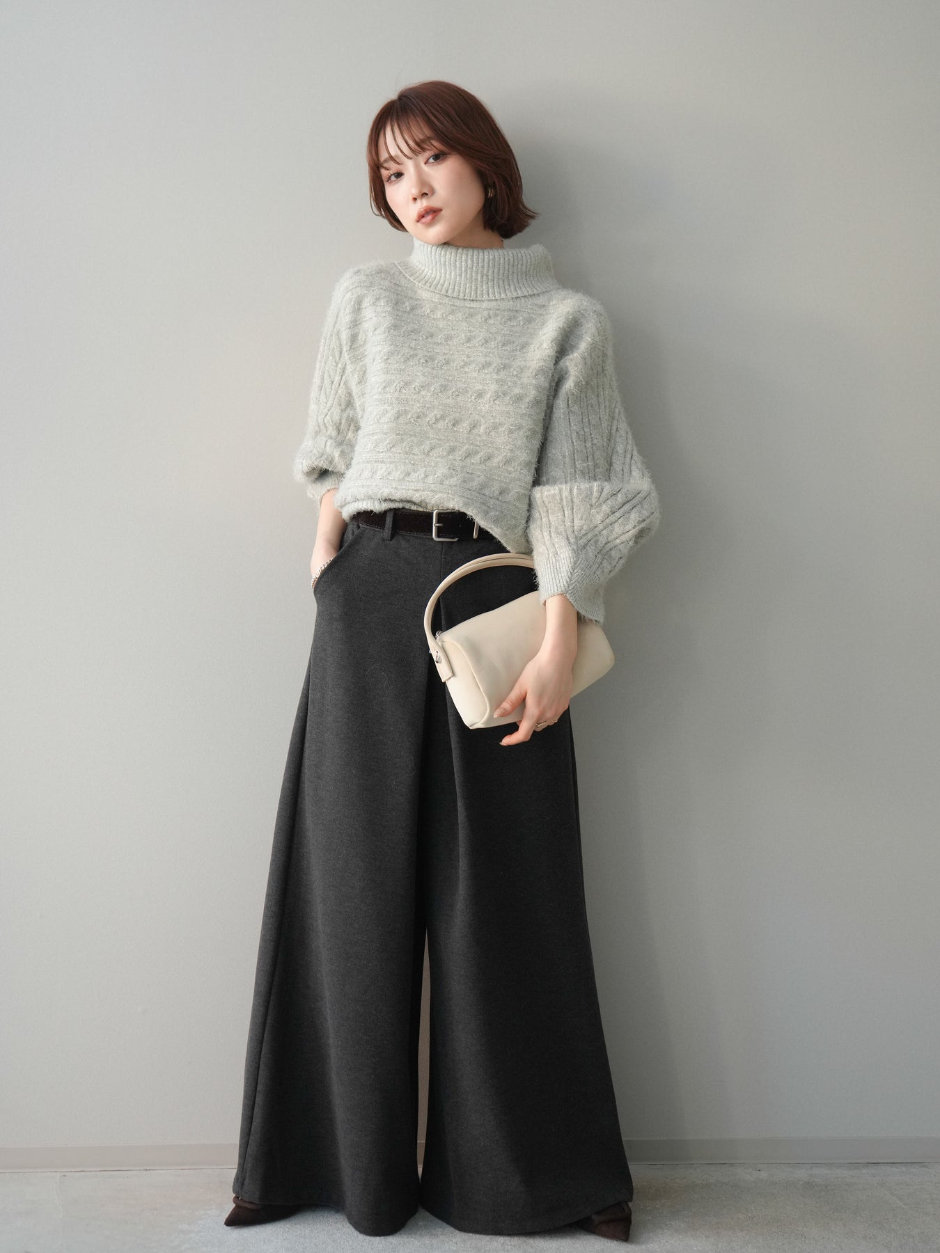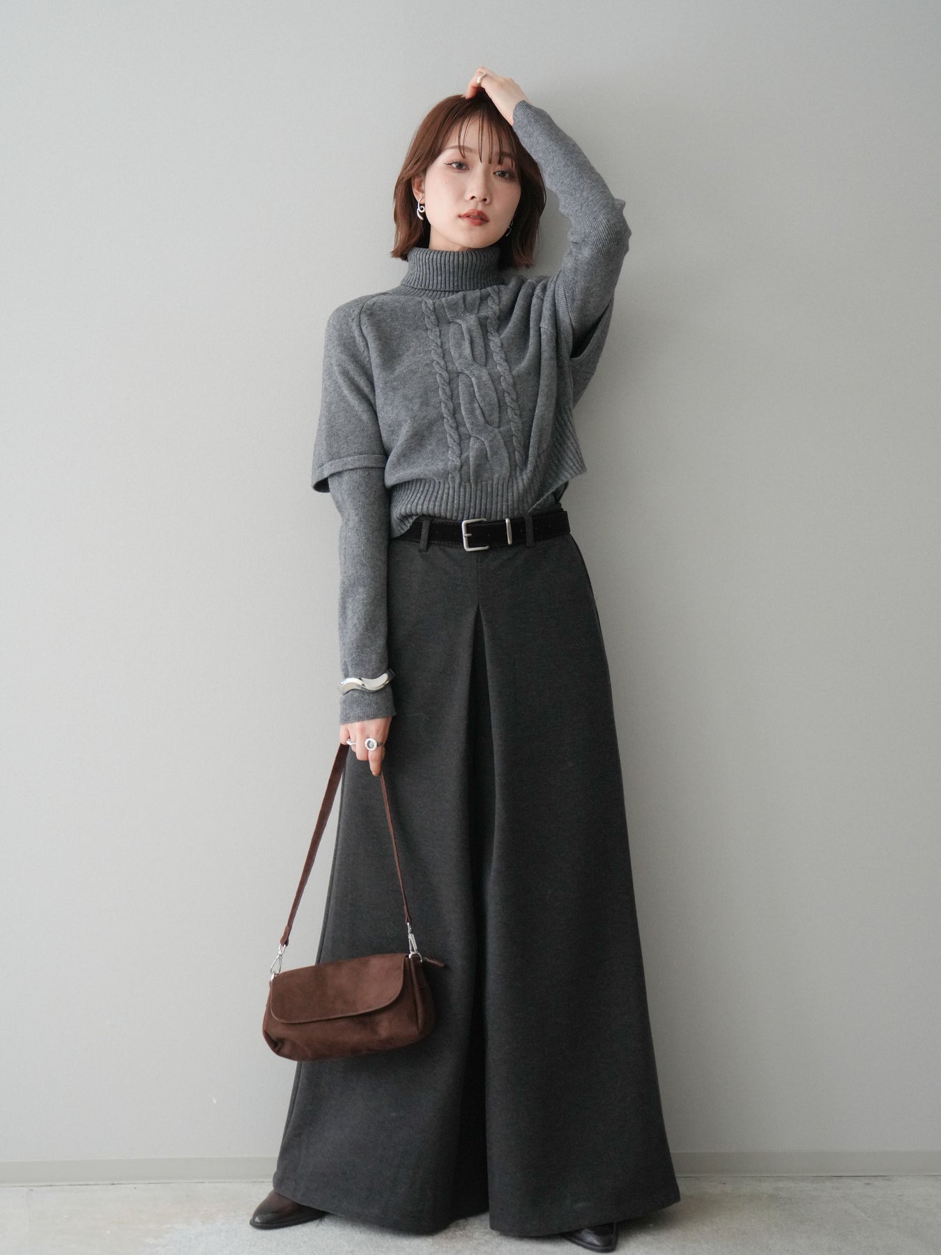 [予約]ベルト付きフロントタックワイドパンツ/charcoal