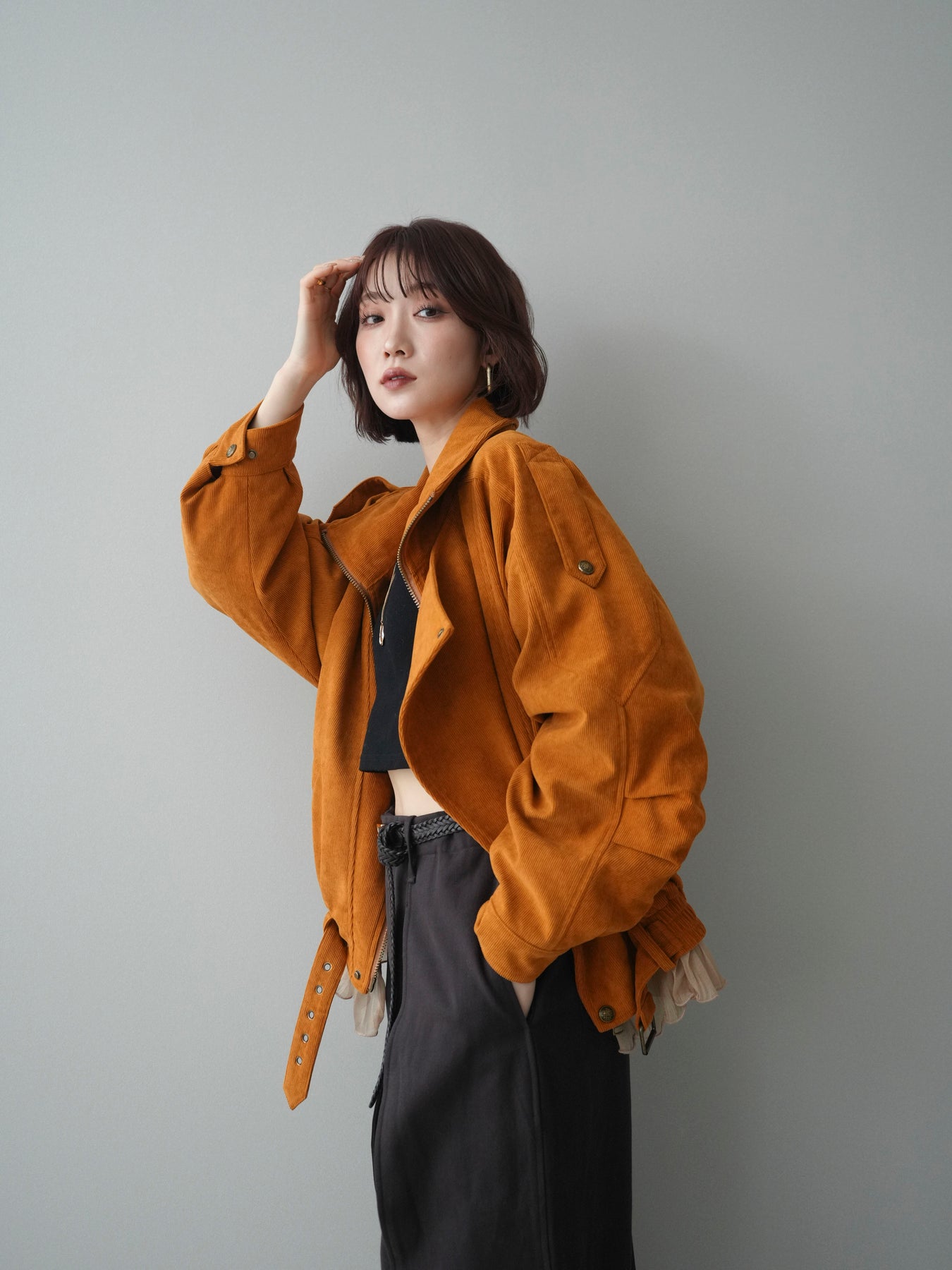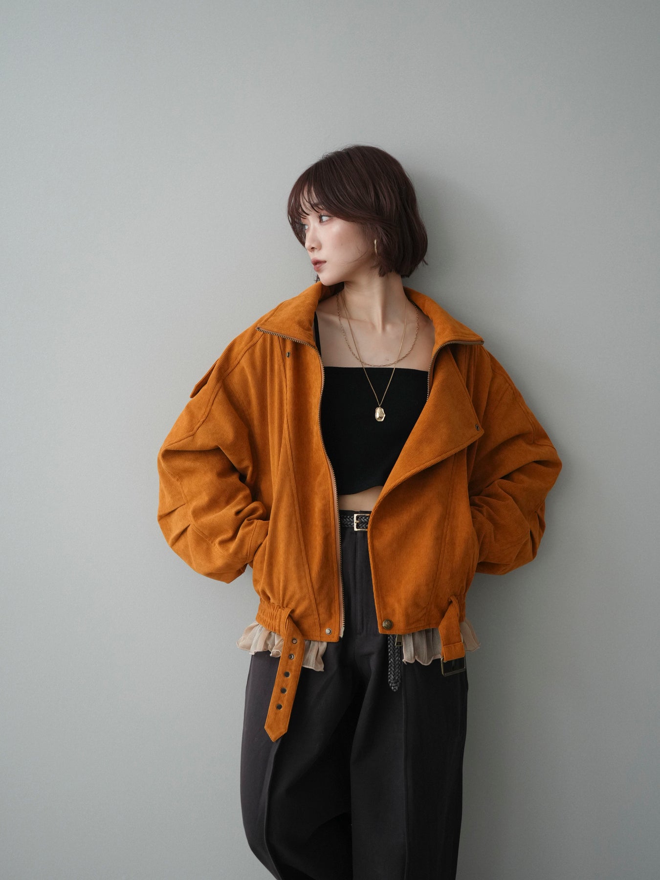 [予約]コーデュロイライダース裾レースブルゾン/orange