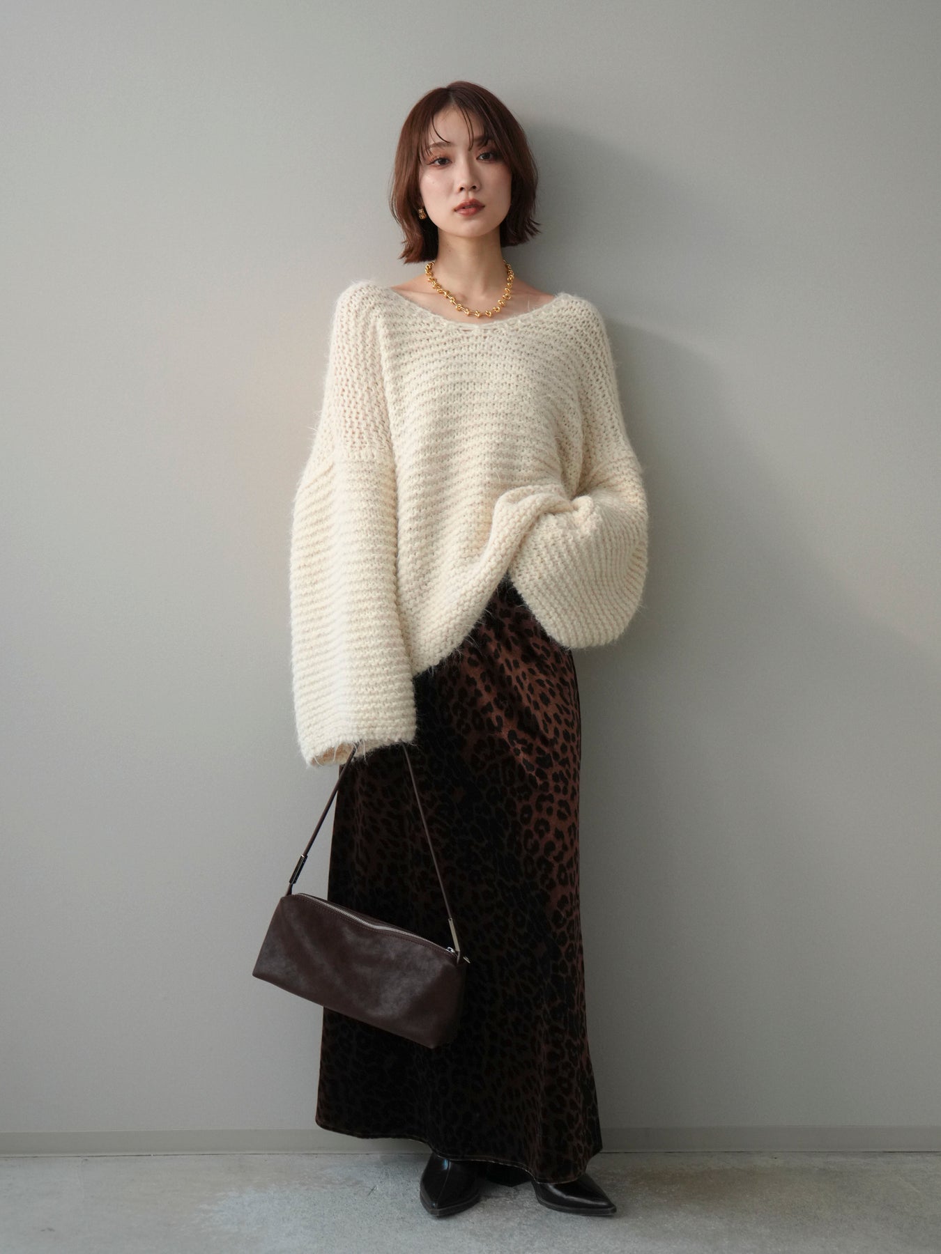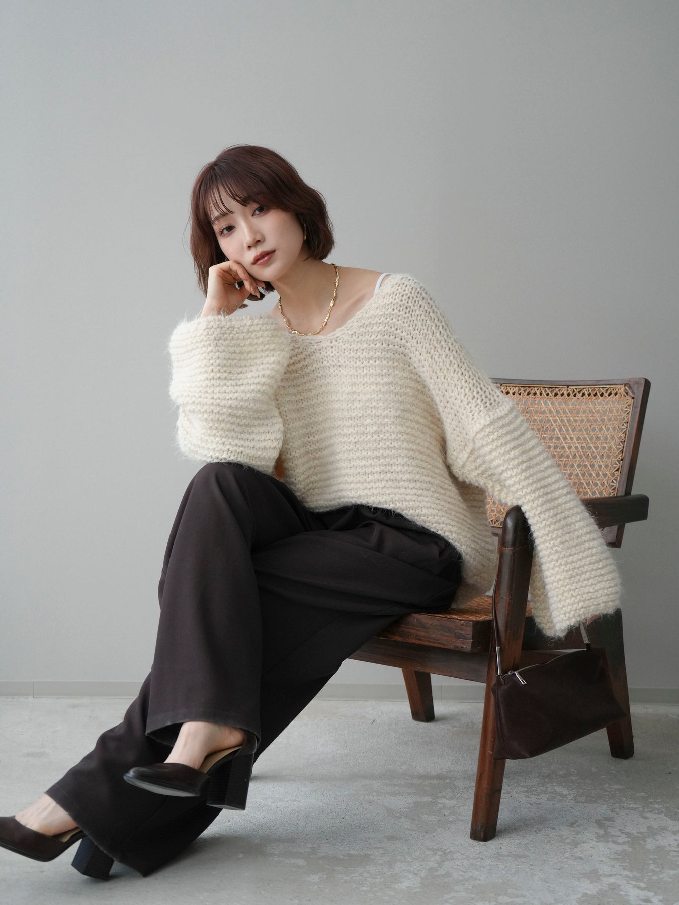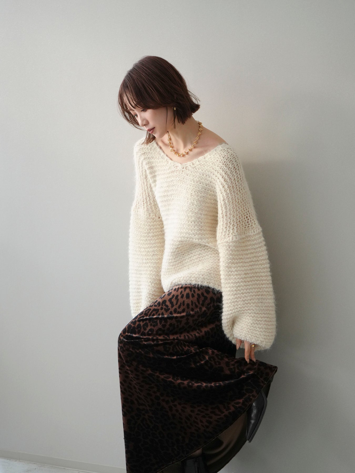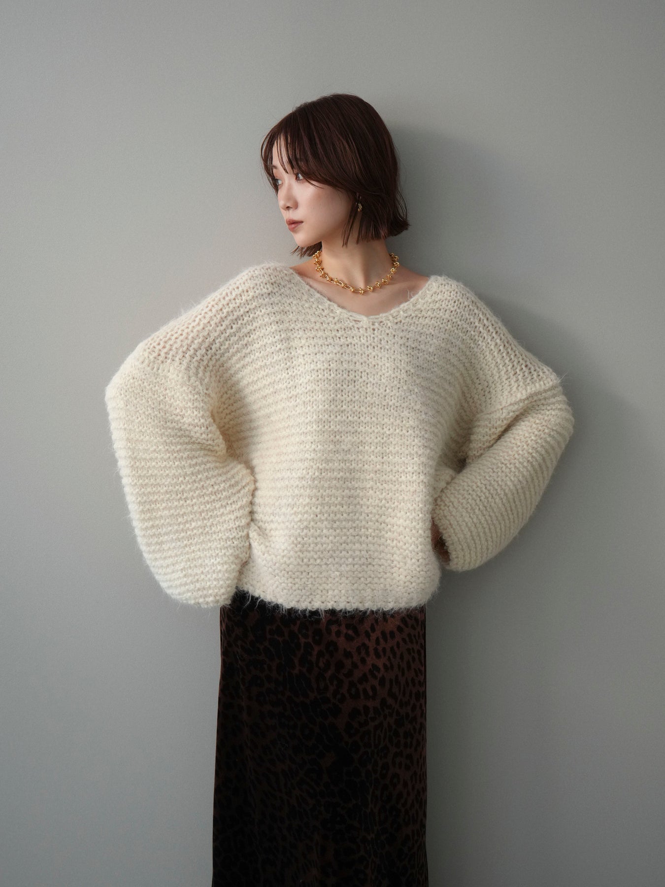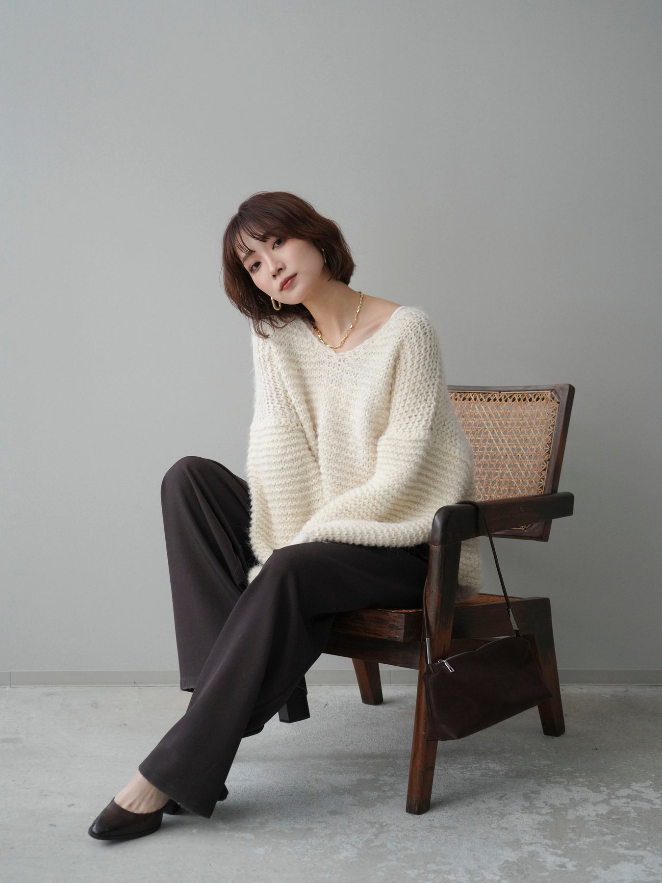 ふんわりとしたシャギー素材とワッフル編みの立体感が魅力のニットプルオーバー。 肌あたりのやさしい風合いで、着心地も抜群。ゆったりとしたルーズシルエットが抜け感を演出し、ナチュラルなムードに仕上げてくれます。 デコルテを美しく見せる絶妙なネックラインで女性らしさも忘れずに。 一枚着としても、シャツやワンピースとのレイヤードスタイルでも活躍する、着回し力の高いアイテムです。