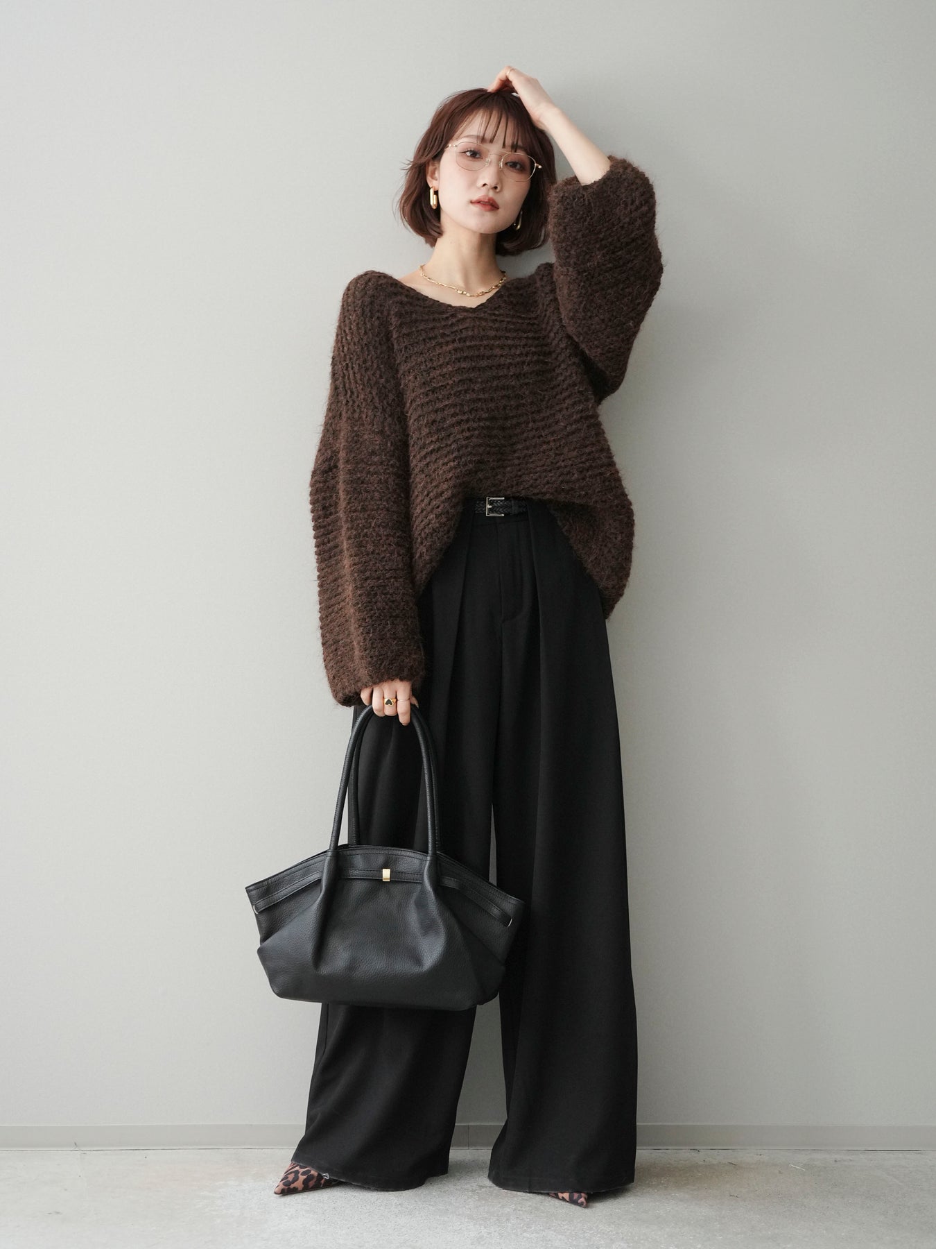ふんわりとしたシャギー素材とワッフル編みの立体感が魅力のニットプルオーバー。 肌あたりのやさしい風合いで、着心地も抜群。ゆったりとしたルーズシルエットが抜け感を演出し、ナチュラルなムードに仕上げてくれます。 デコルテを美しく見せる絶妙なネックラインで女性らしさも忘れずに。 一枚着としても、シャツやワンピースとのレイヤードスタイルでも活躍する、着回し力の高いアイテムです。