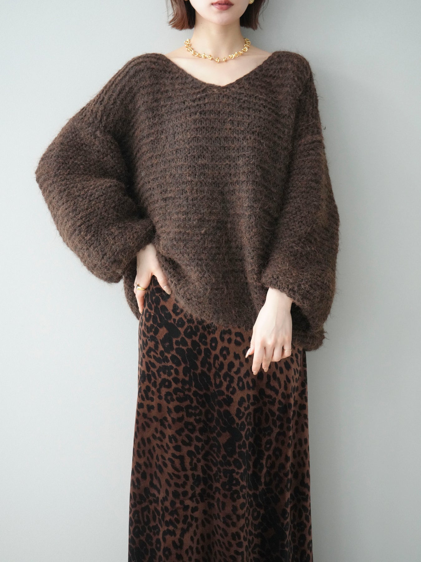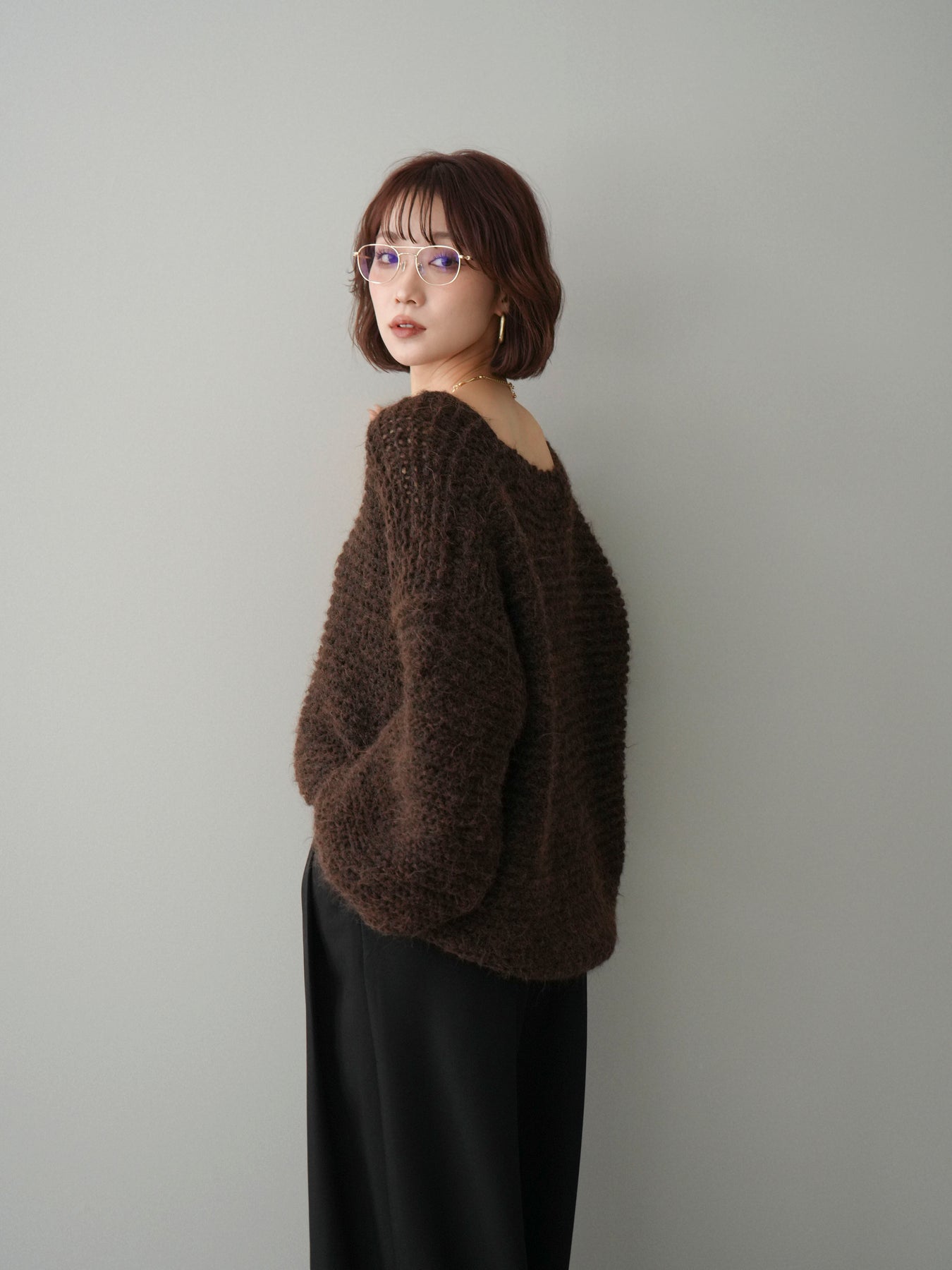 [予約]ワッフル編みシャギーニットプルオーバー/brown