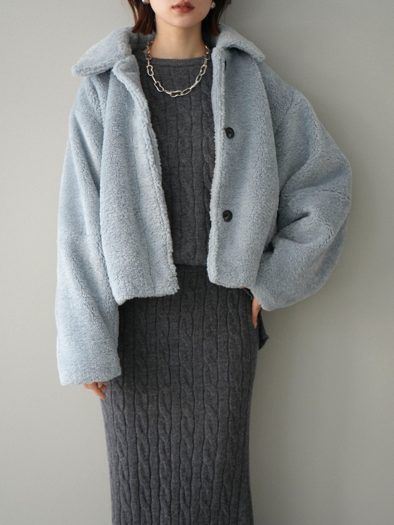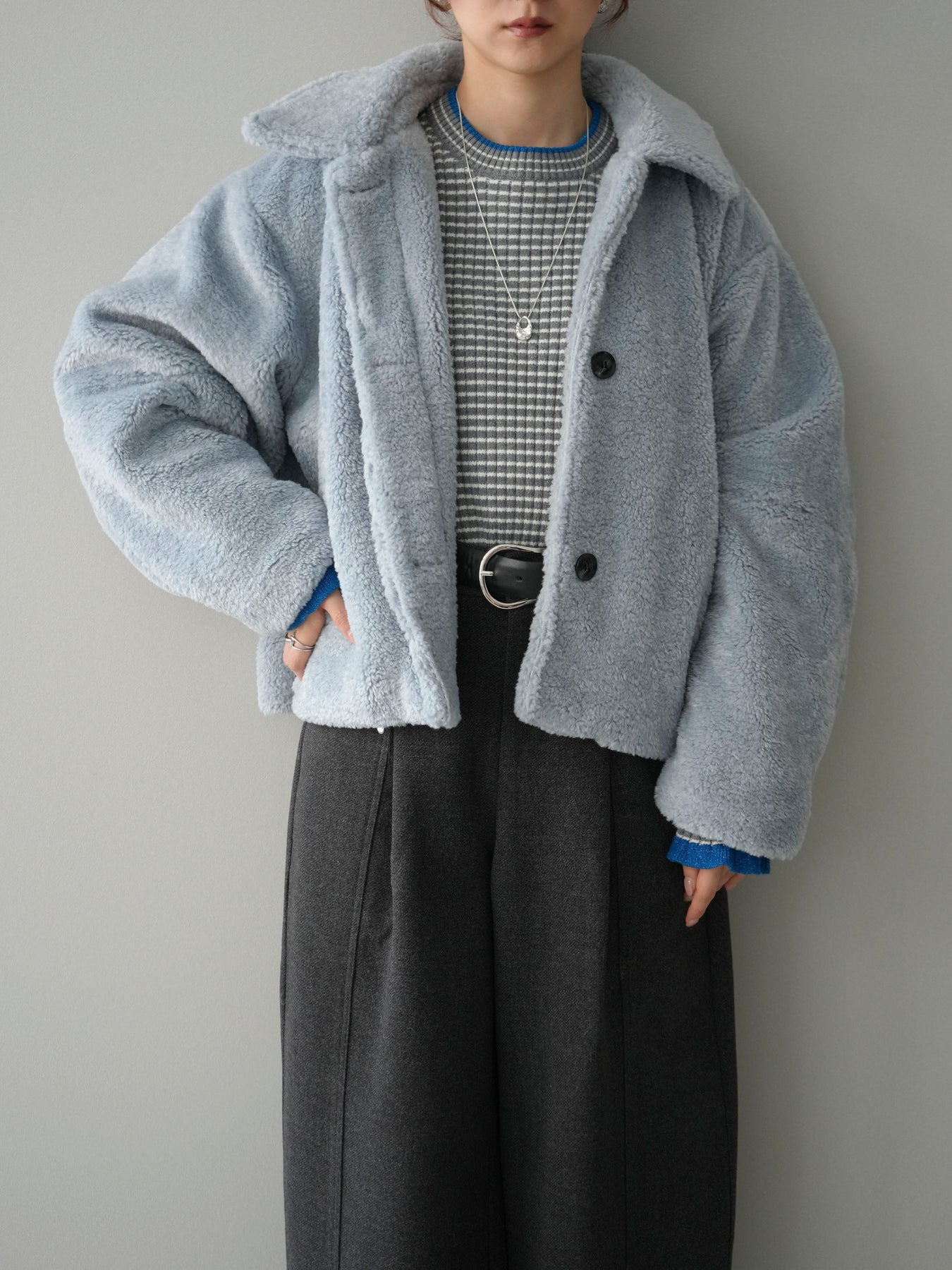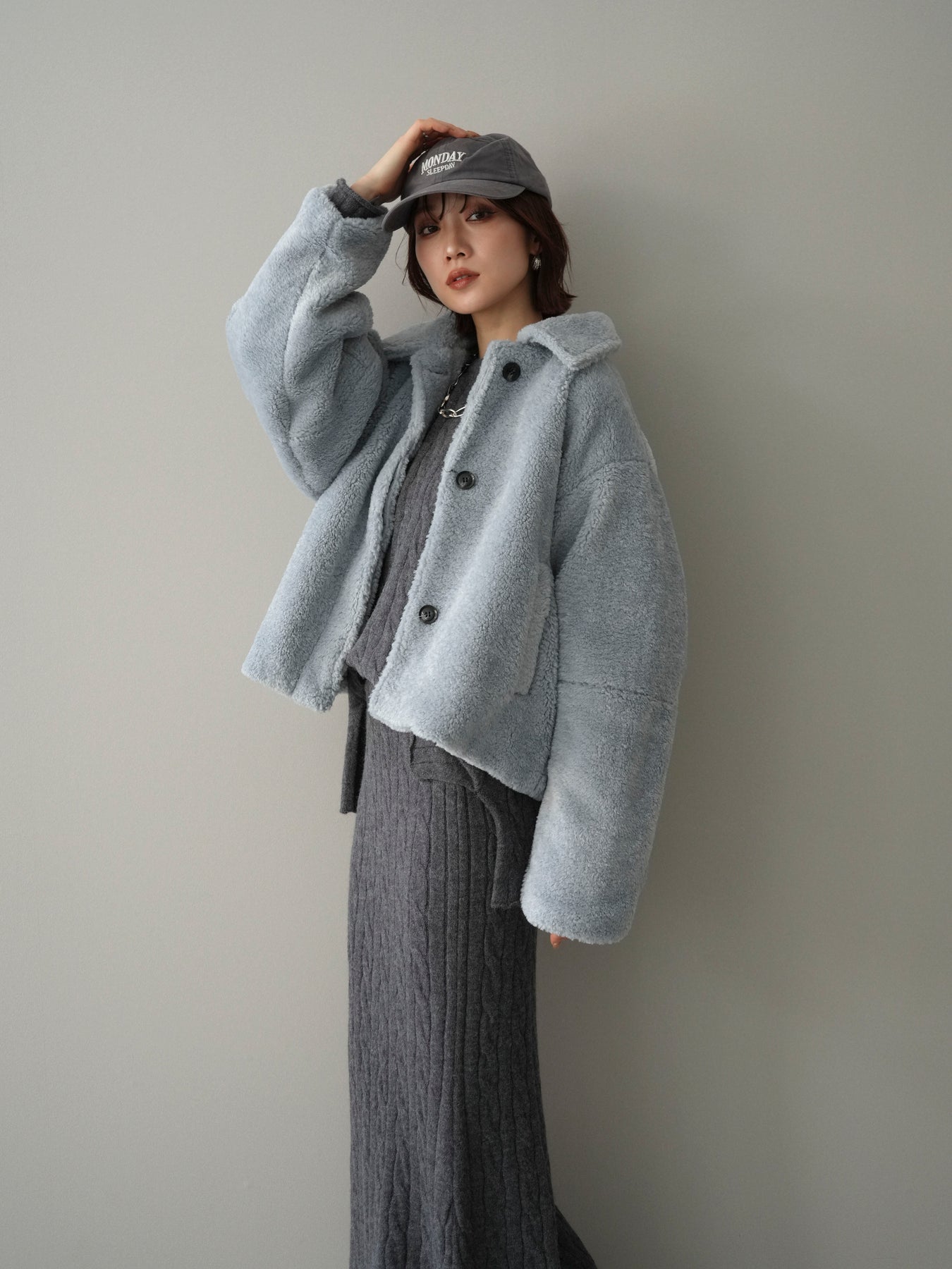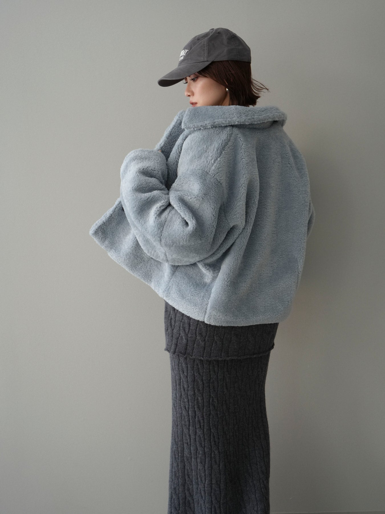 やわらかなエコファー素材を使用したステンカラージャケット。程よいボリューム感とコンパクトな丈感のバランスが良く、羽織るだけで季節感のあるスタイリングが完成します。カジュアルにもきれいめにも取り入れやすく、幅広いコーディネートに活躍する一着です。