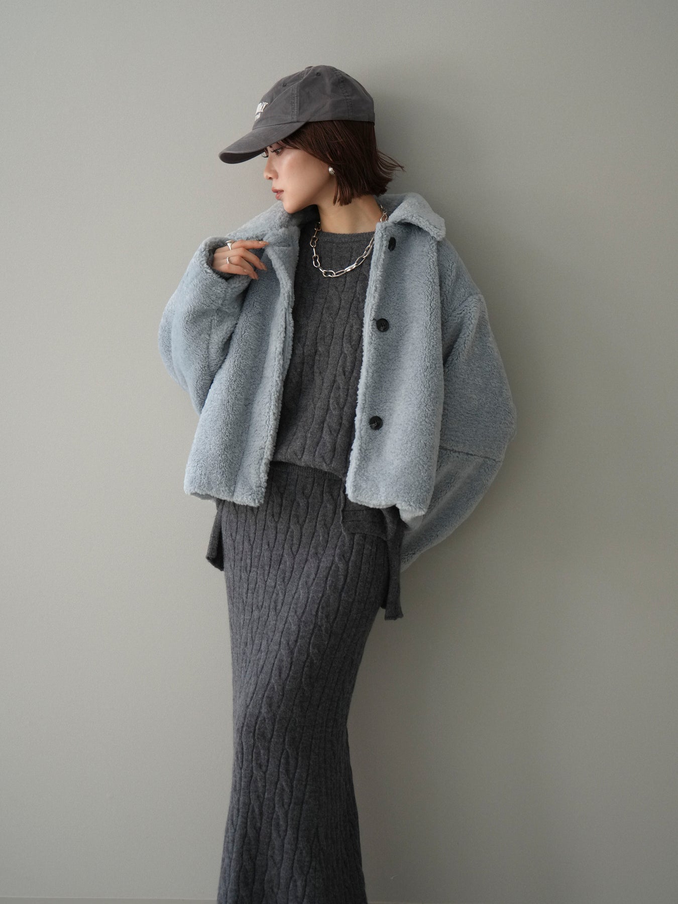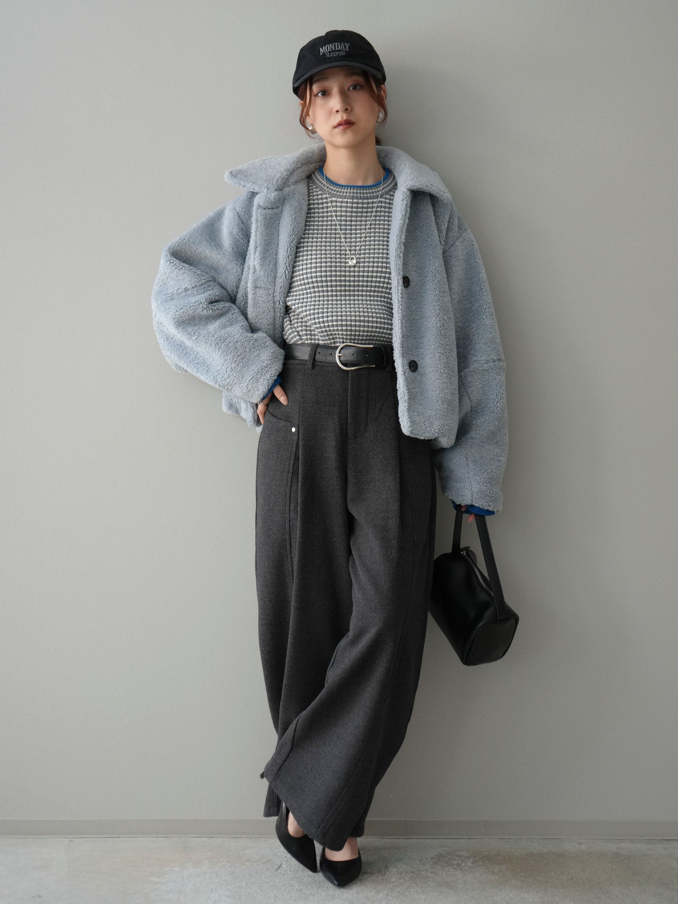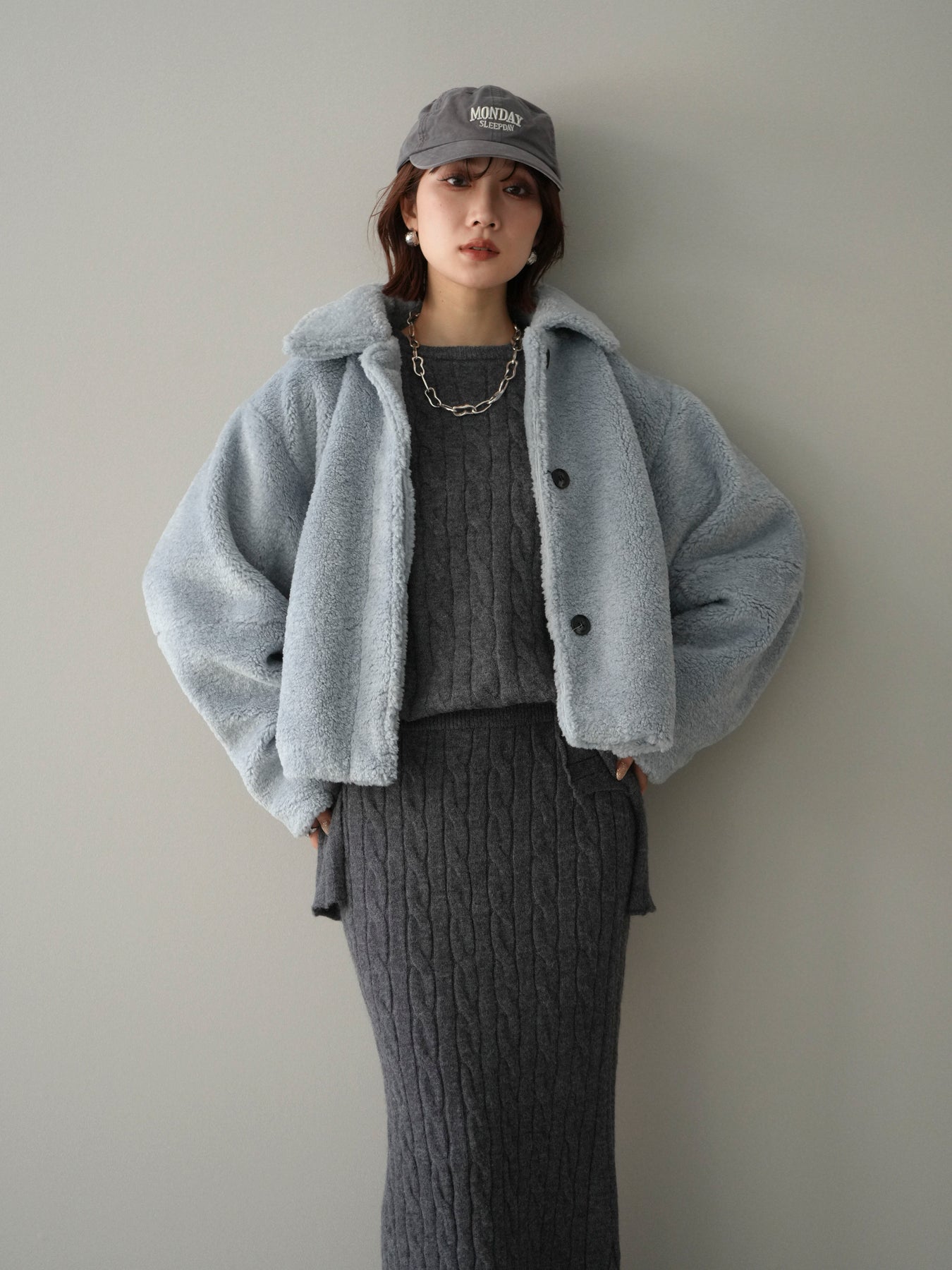 やわらかなエコファー素材を使用したステンカラージャケット。程よいボリューム感とコンパクトな丈感のバランスが良く、羽織るだけで季節感のあるスタイリングが完成します。カジュアルにもきれいめにも取り入れやすく、幅広いコーディネートに活躍する一着です。