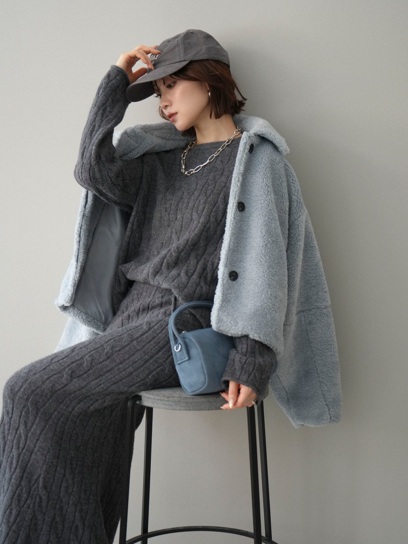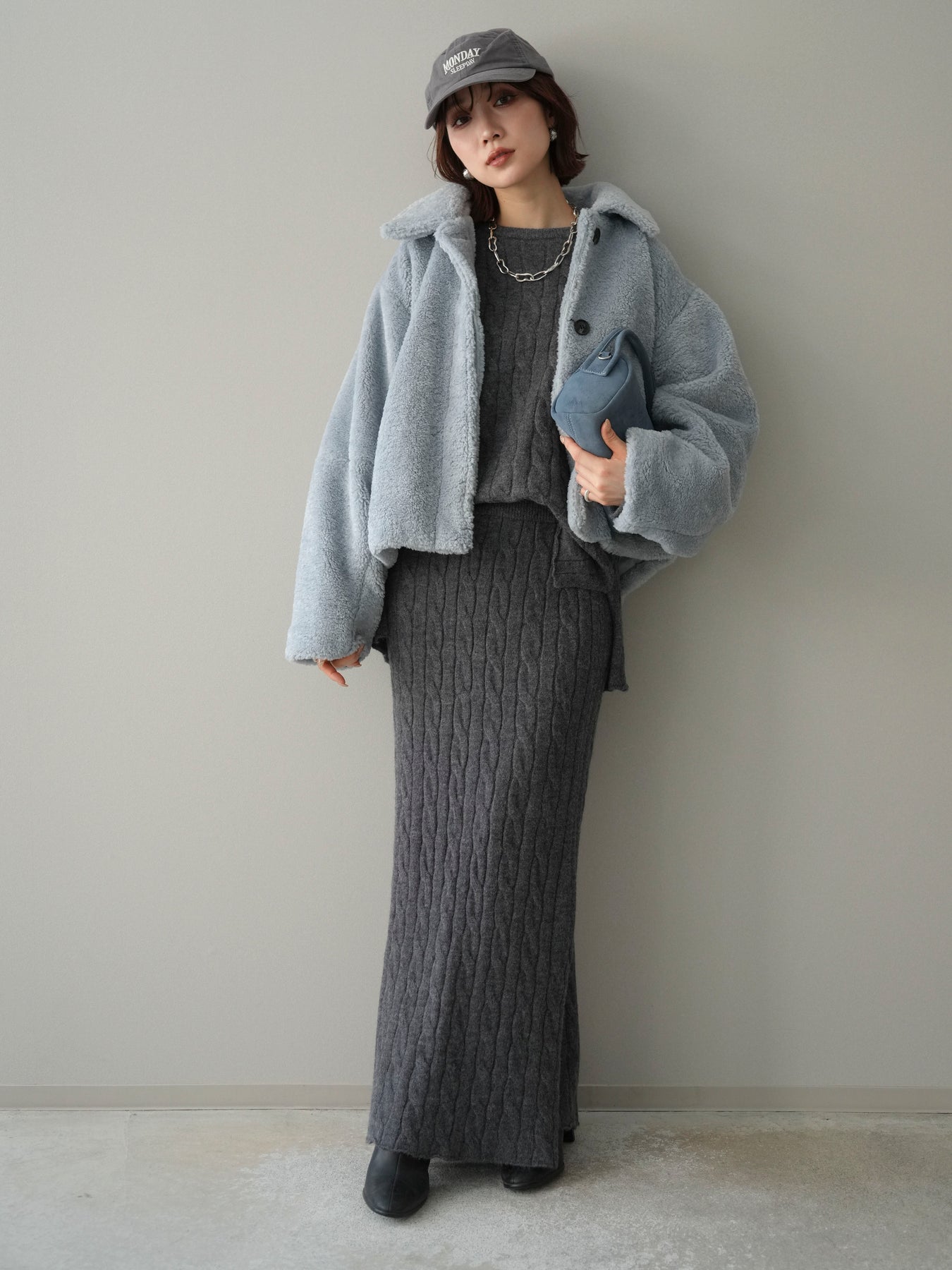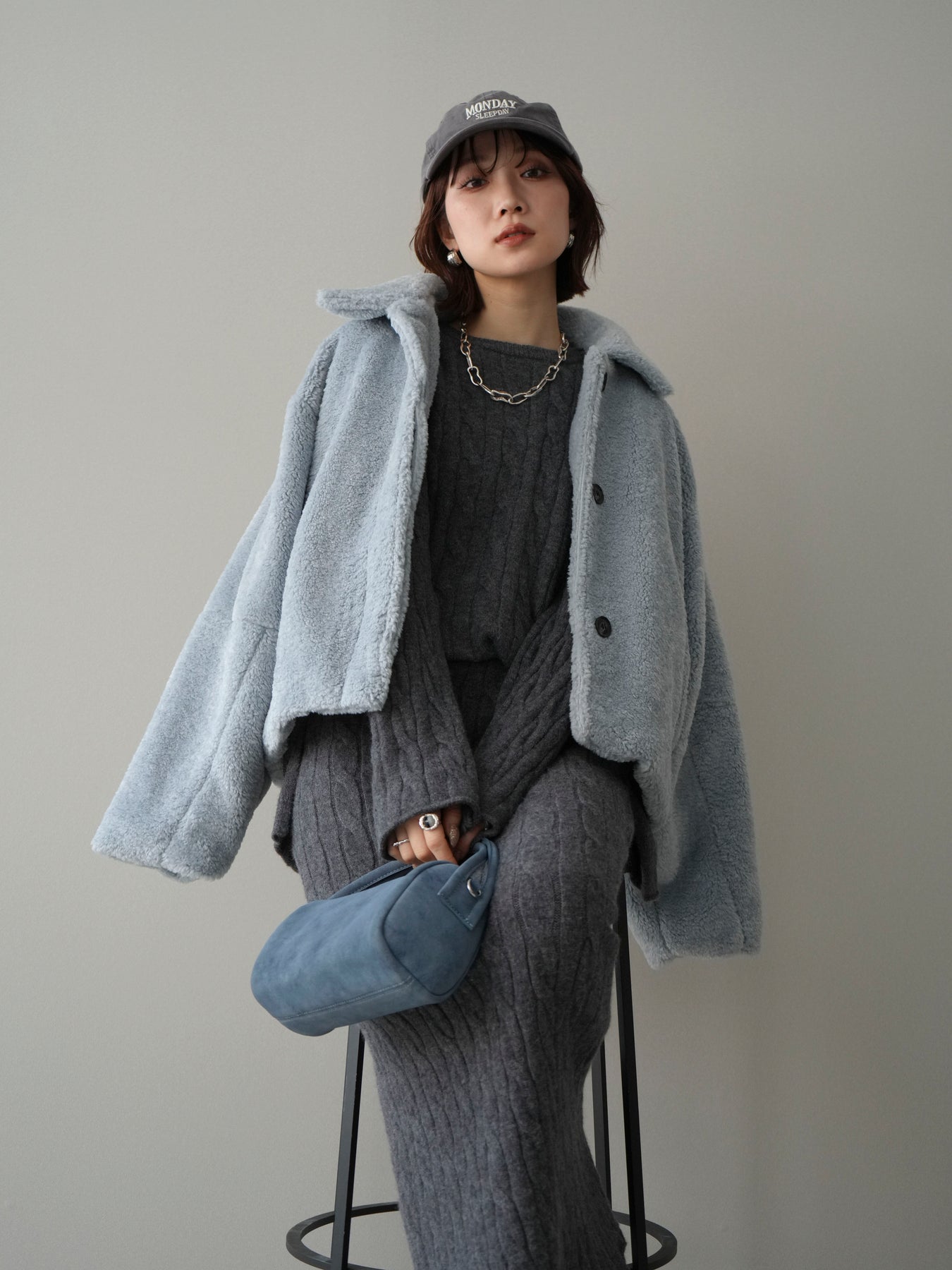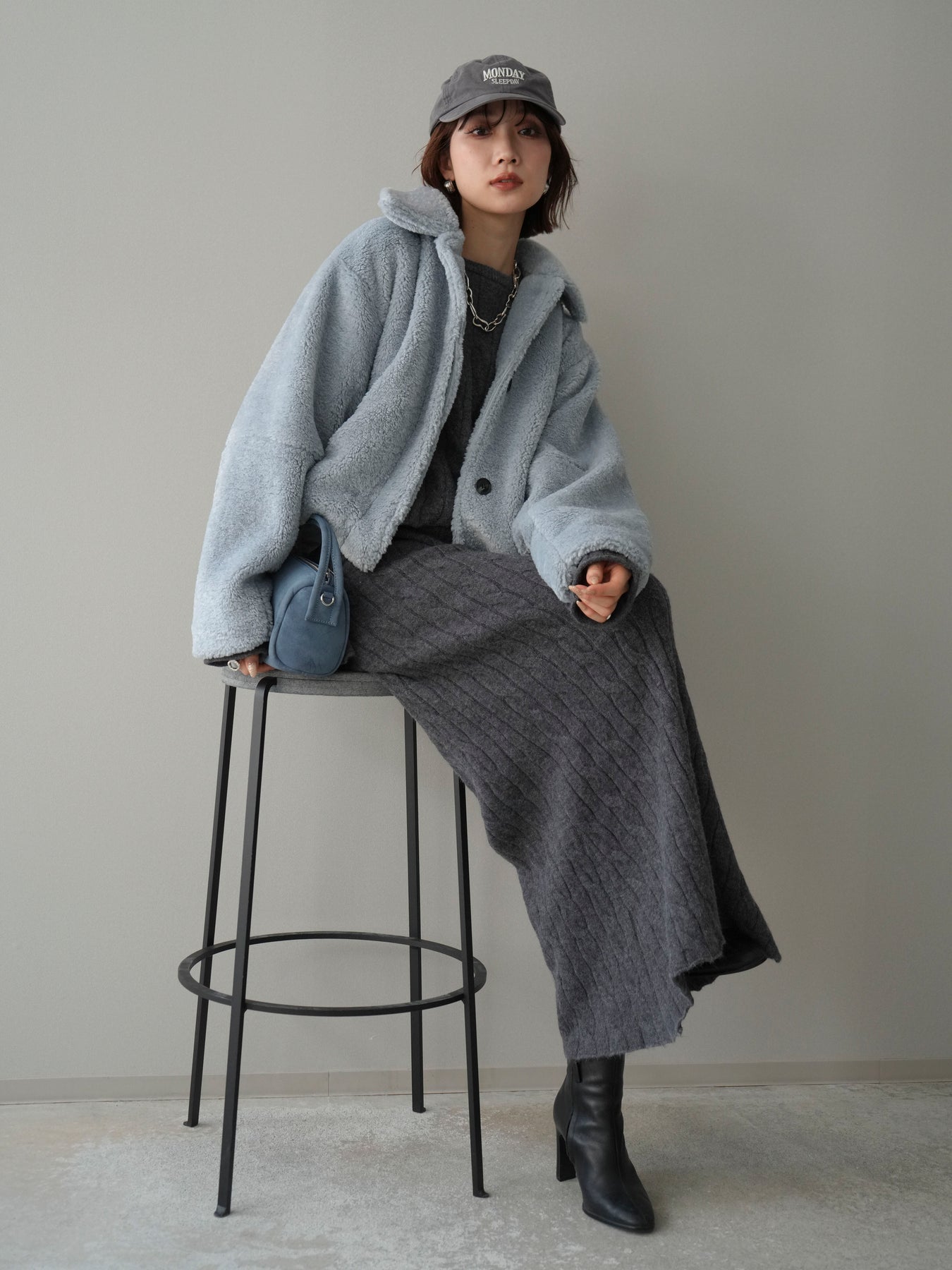 やわらかなエコファー素材を使用したステンカラージャケット。程よいボリューム感とコンパクトな丈感のバランスが良く、羽織るだけで季節感のあるスタイリングが完成します。カジュアルにもきれいめにも取り入れやすく、幅広いコーディネートに活躍する一着です。