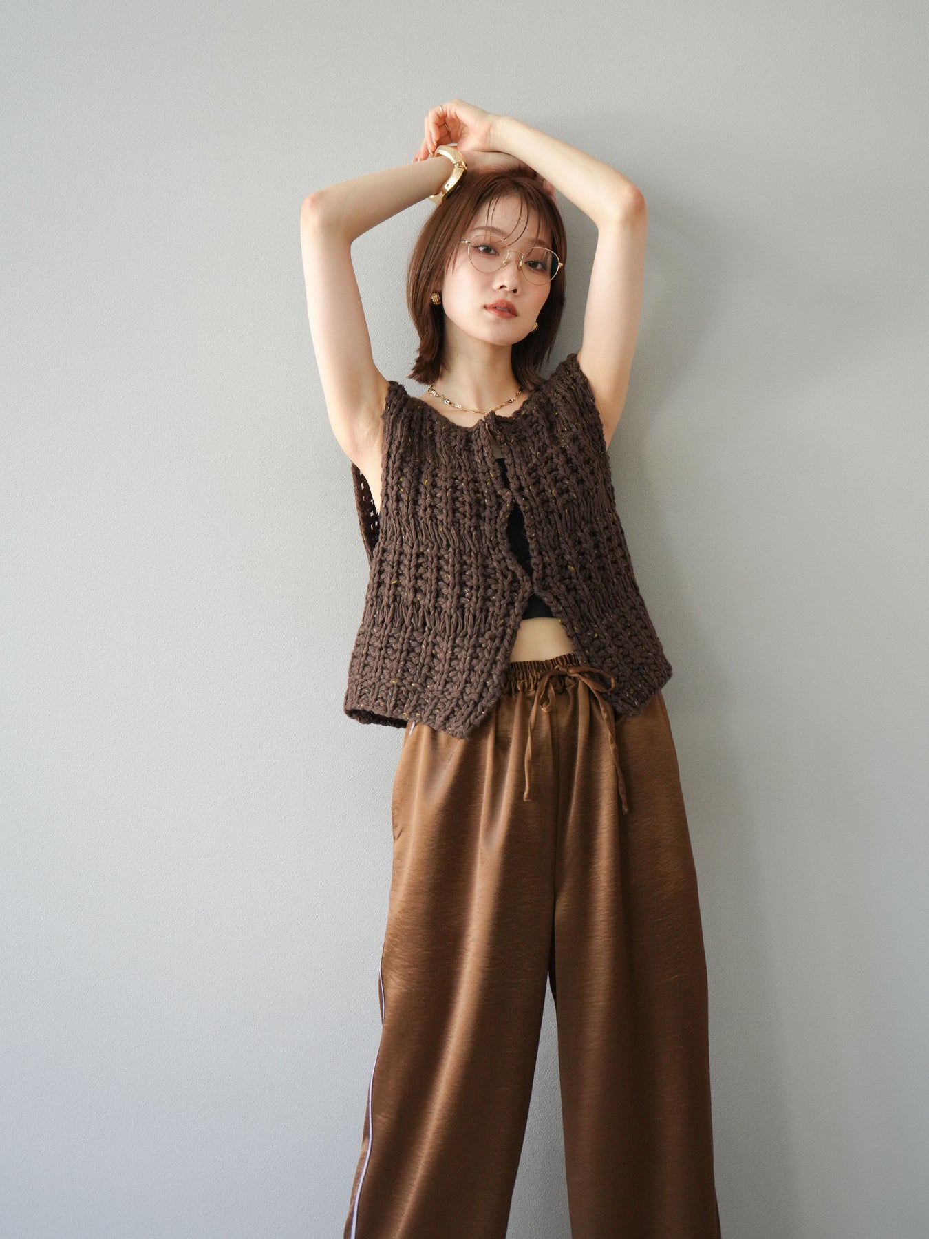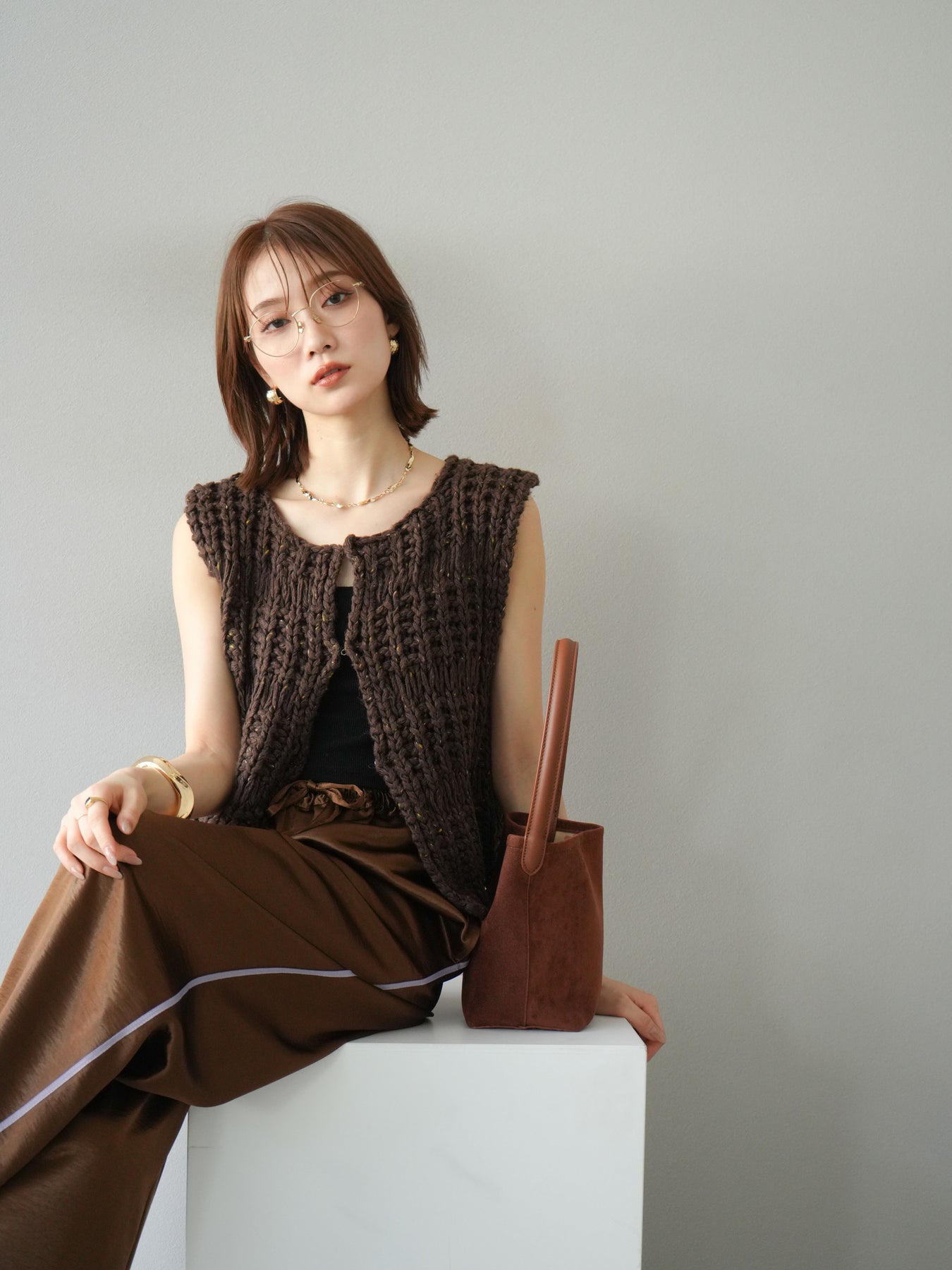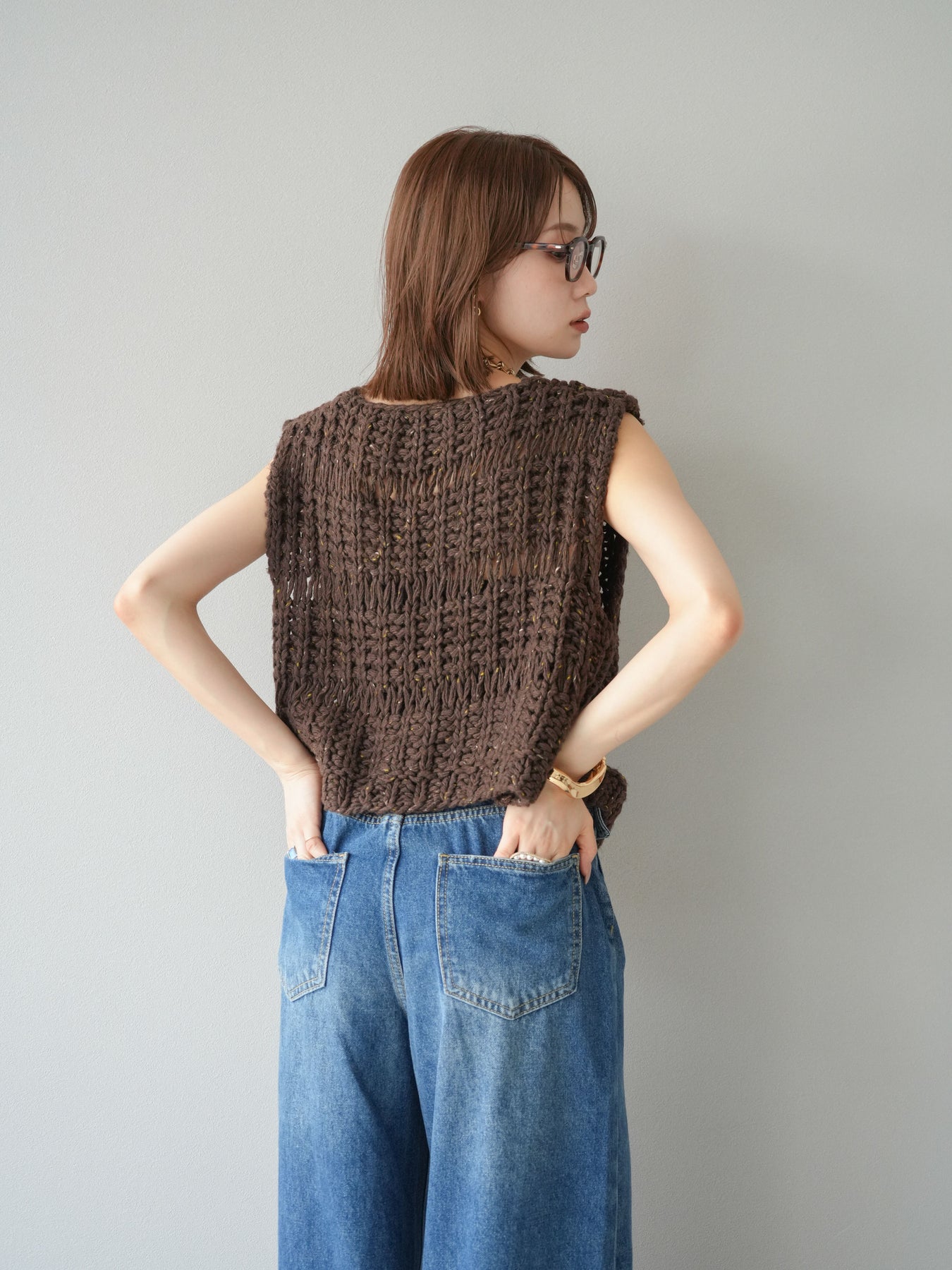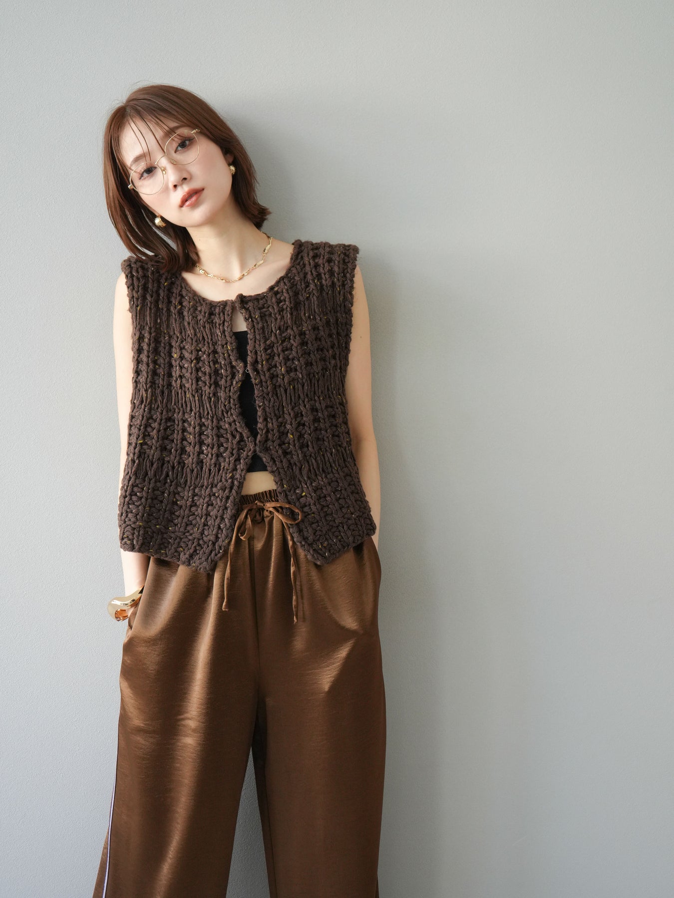 [予約]ミックスヤーンデザイン編みニットベスト/ブラウン