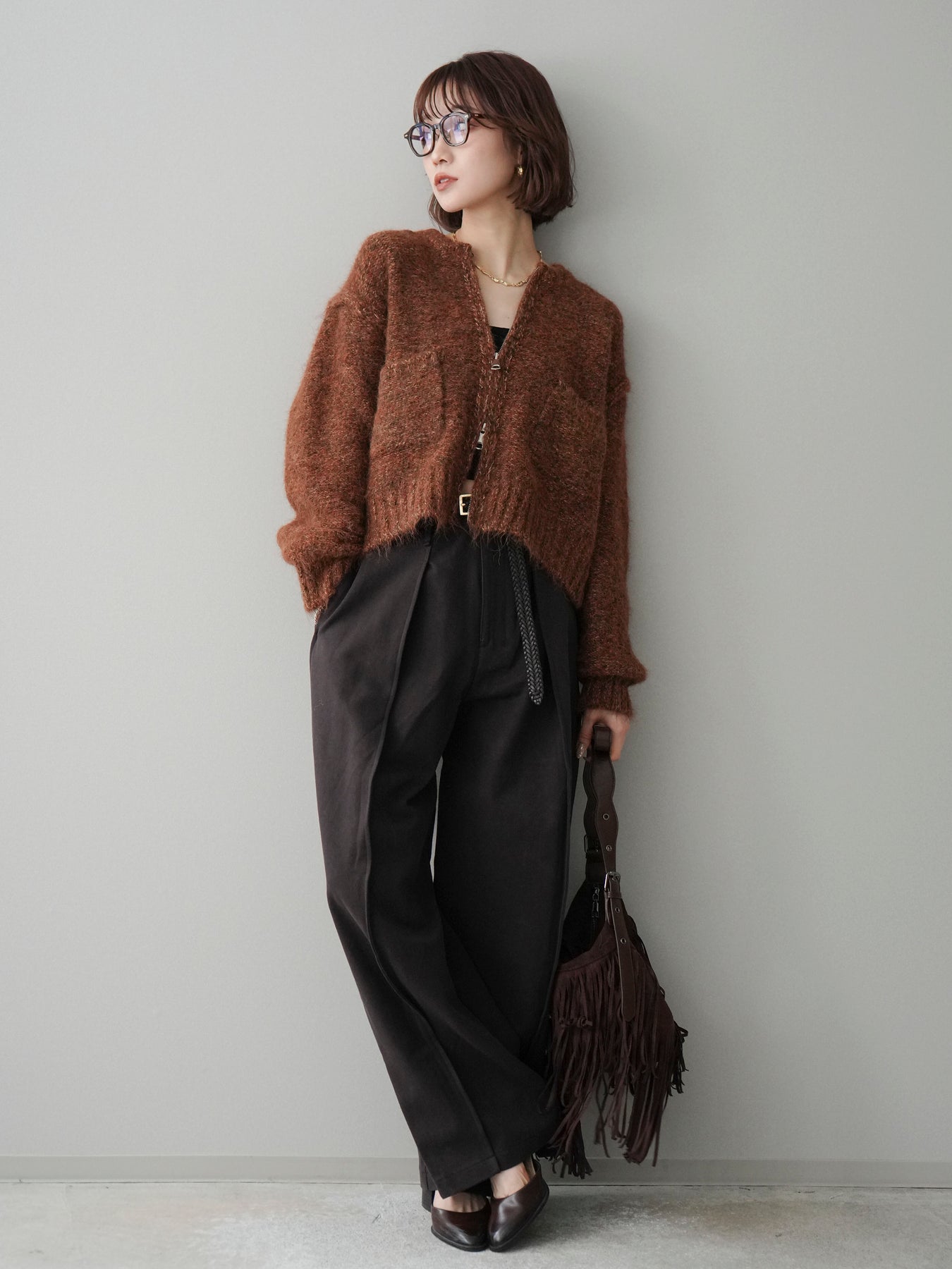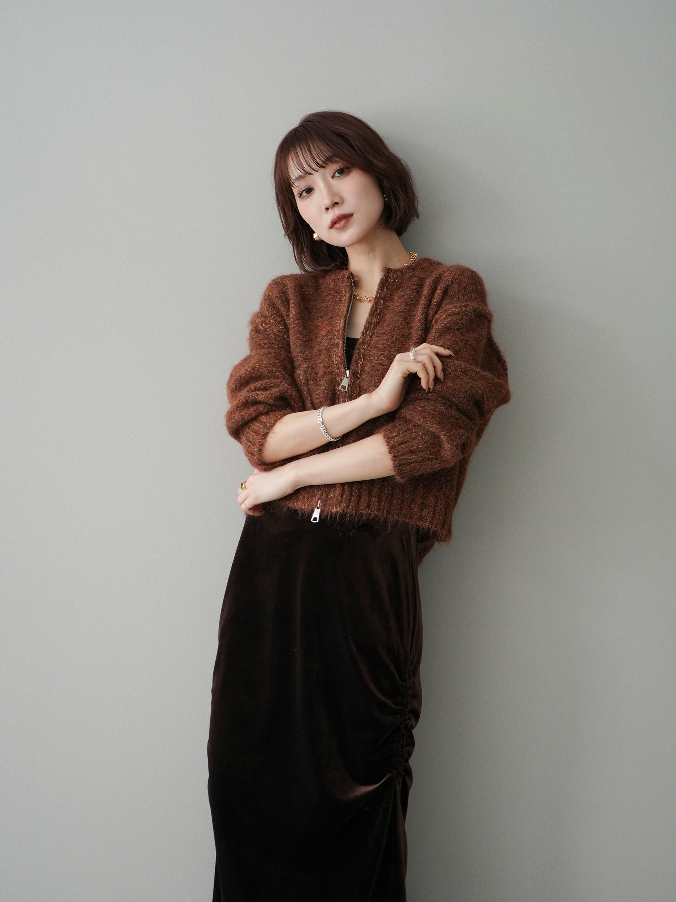 [予約]ミックスヤーンダブルZIPニットカーディガン/brown
