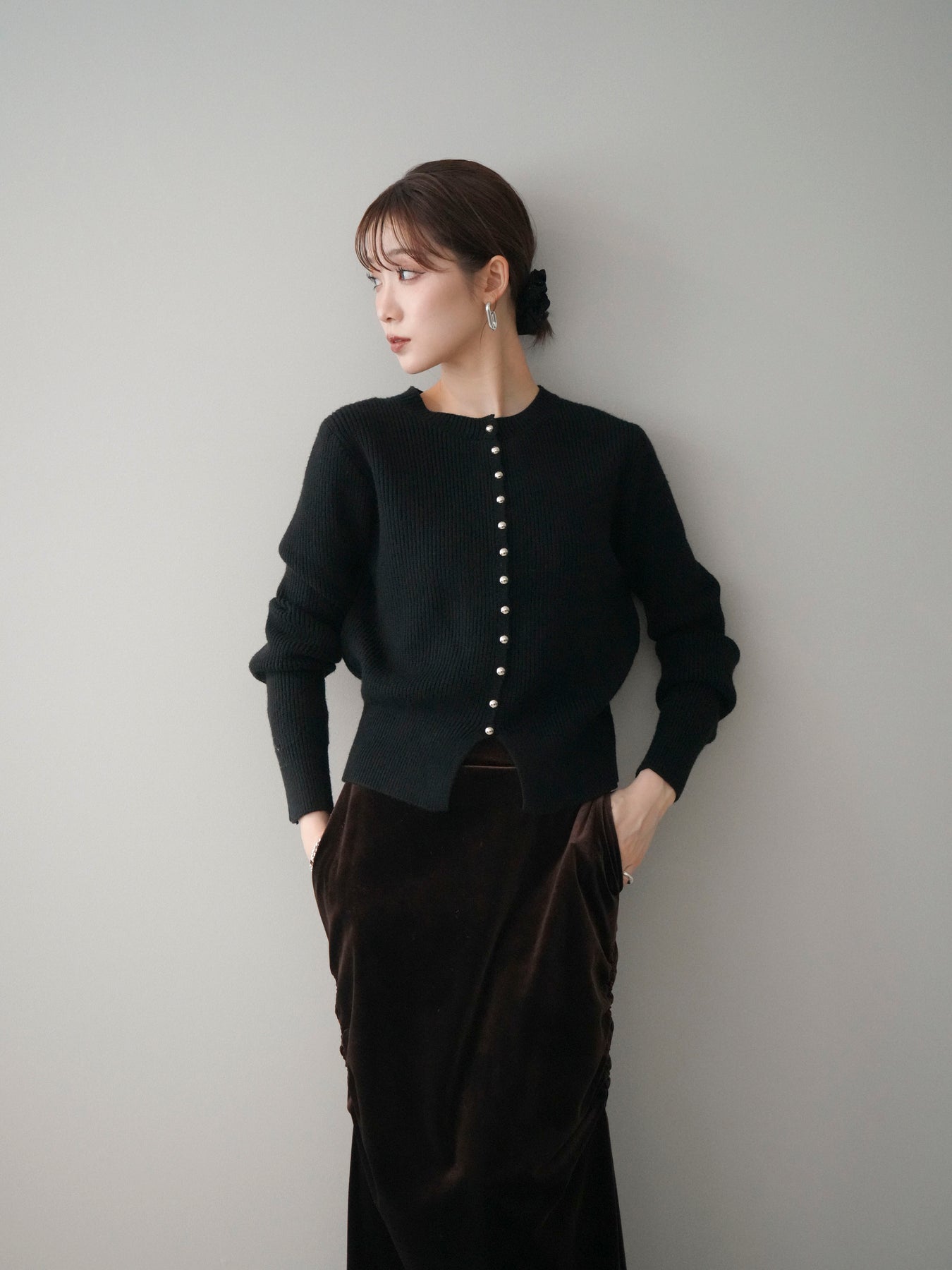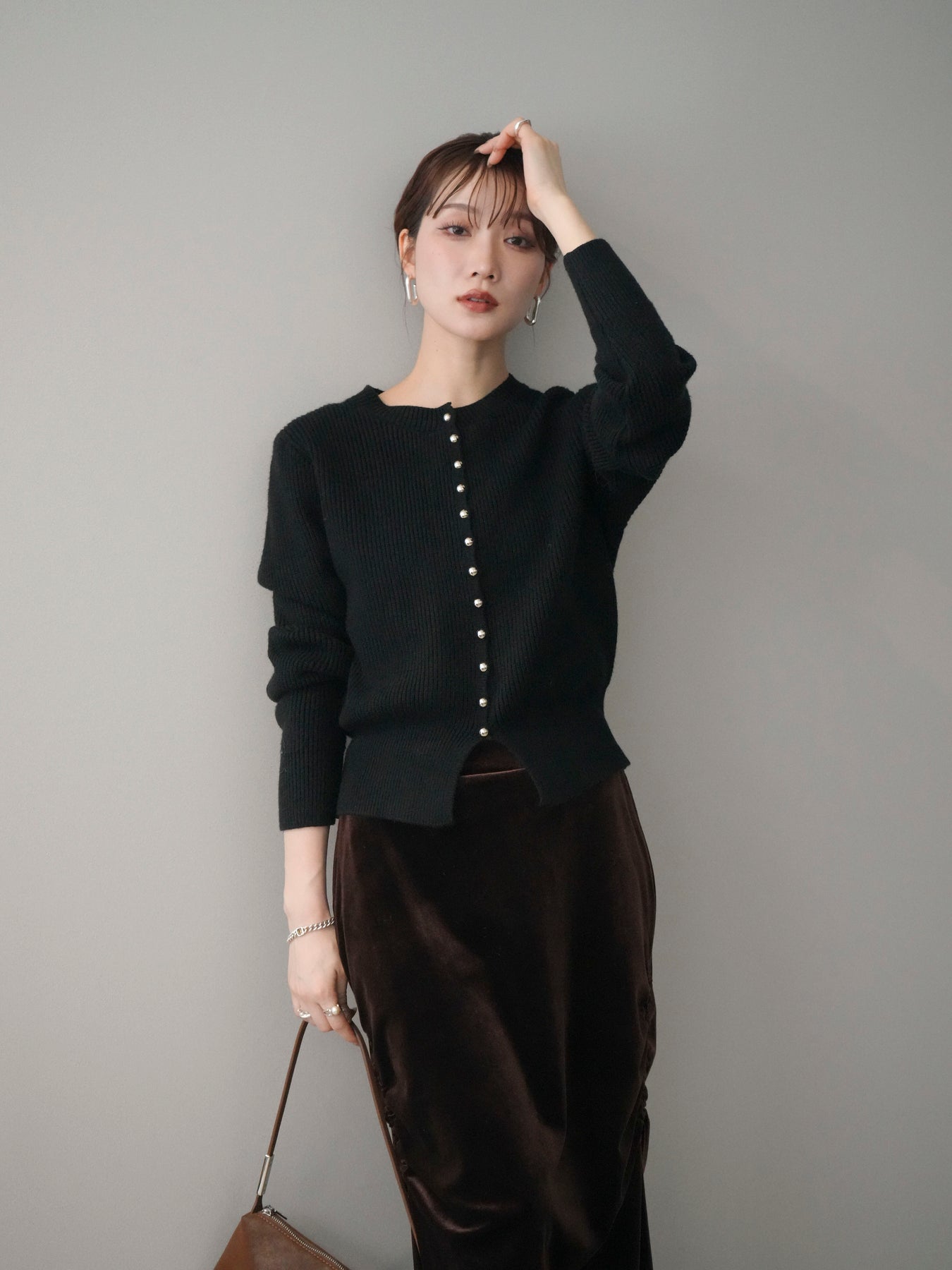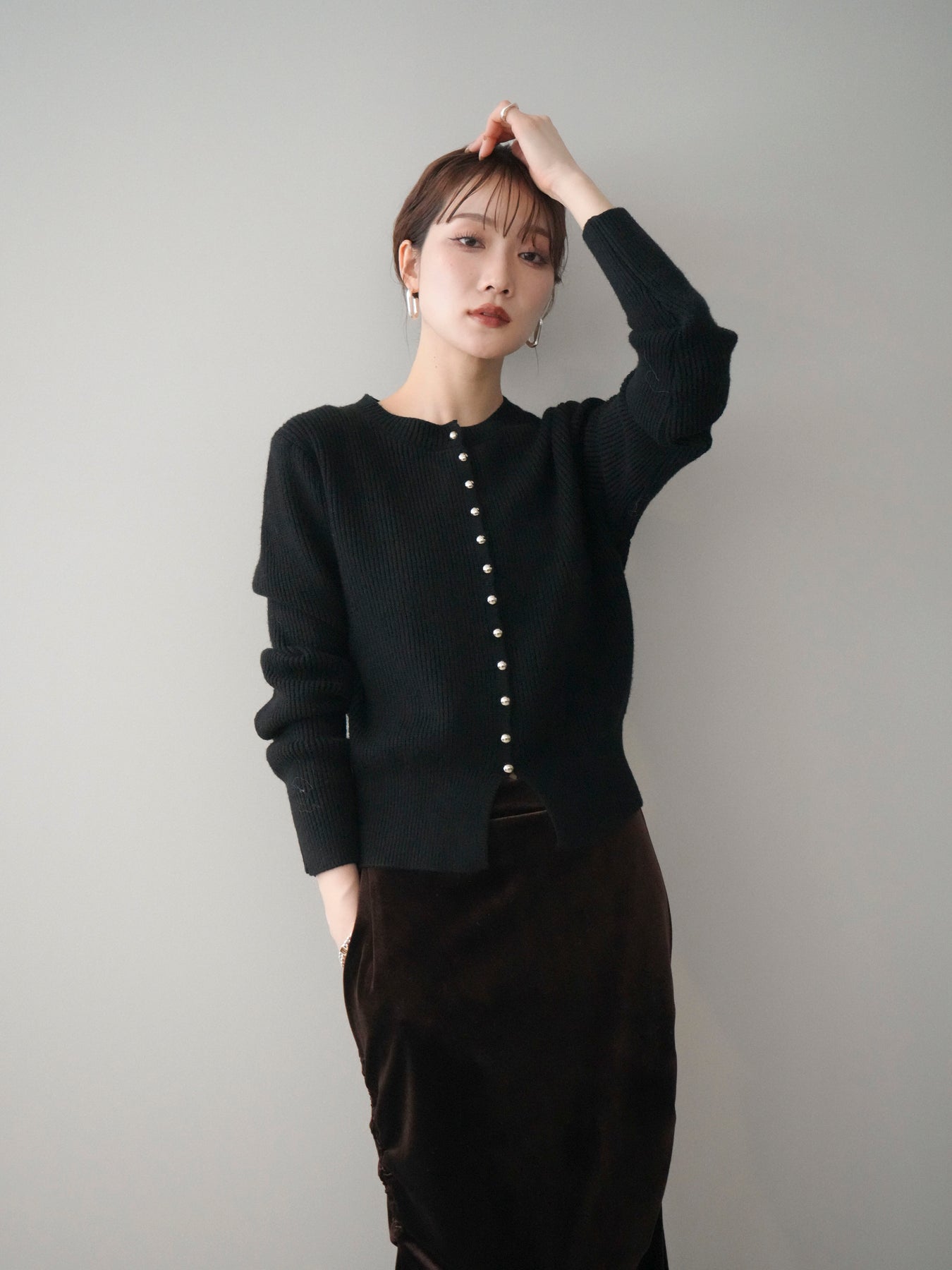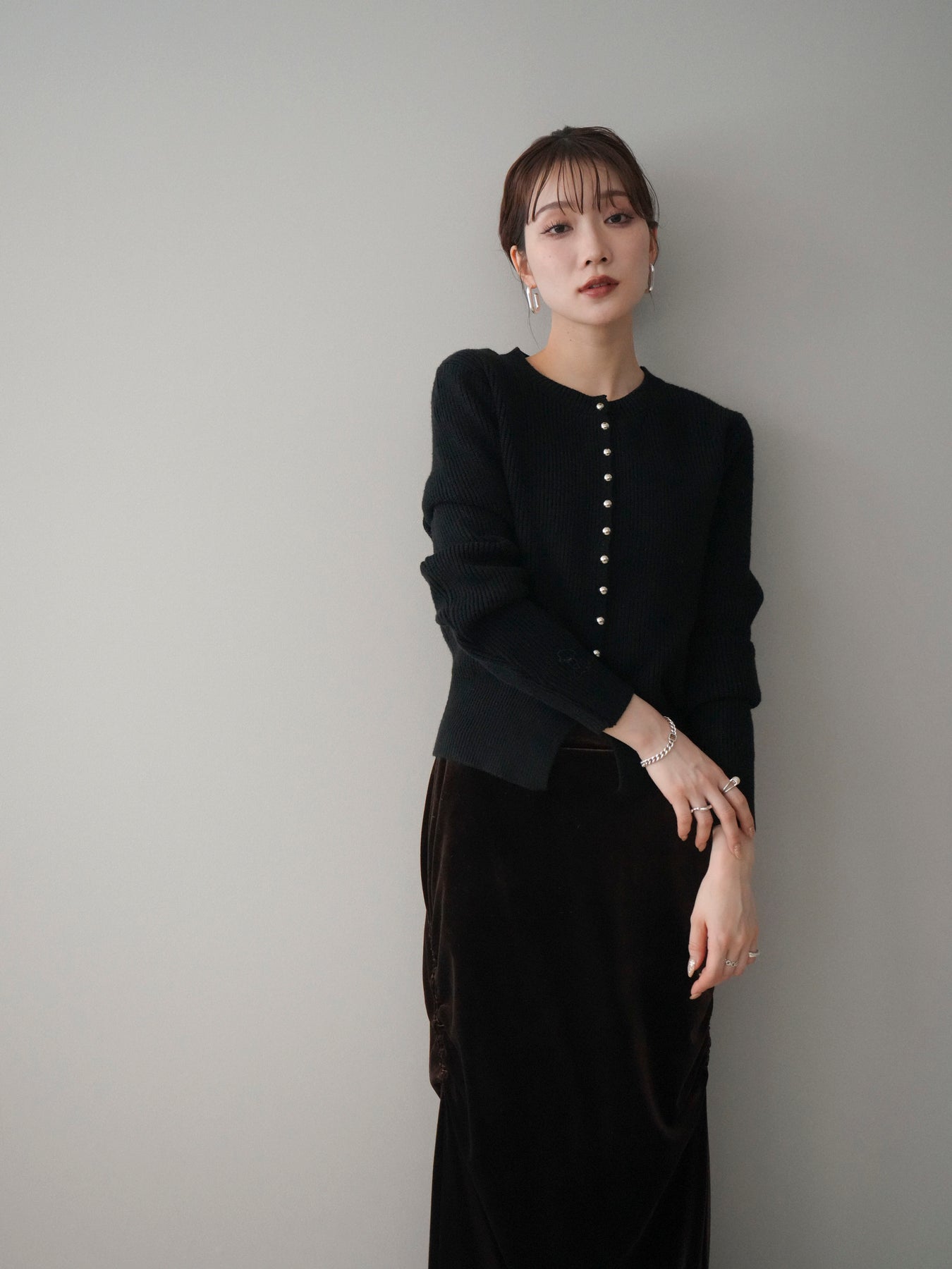 [予約]シルバーボタン畦編みニットカーディガンに関連する商品を探す↓