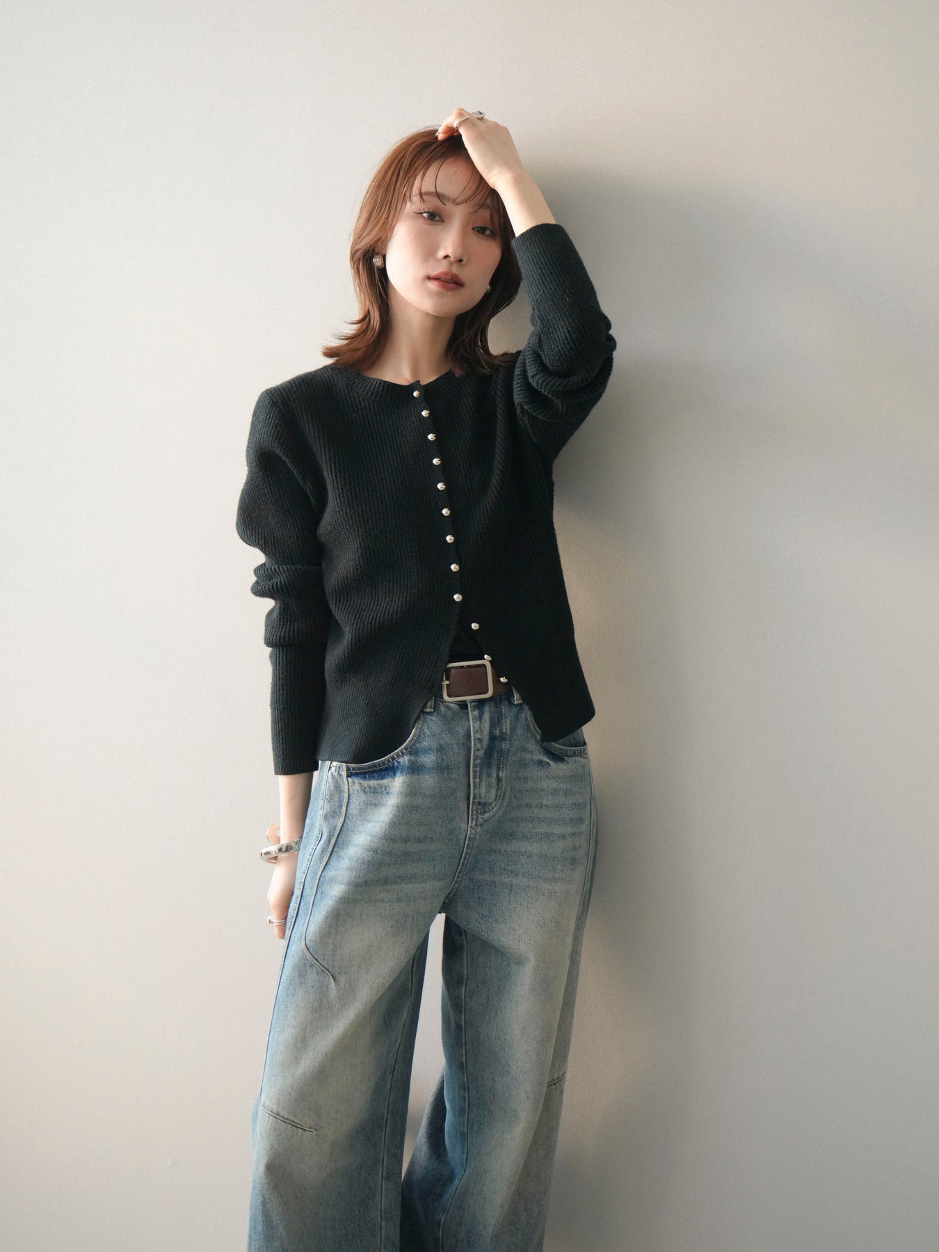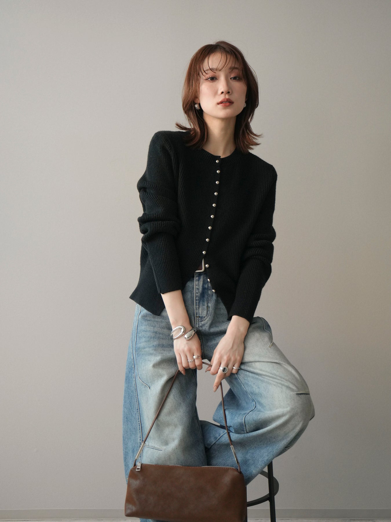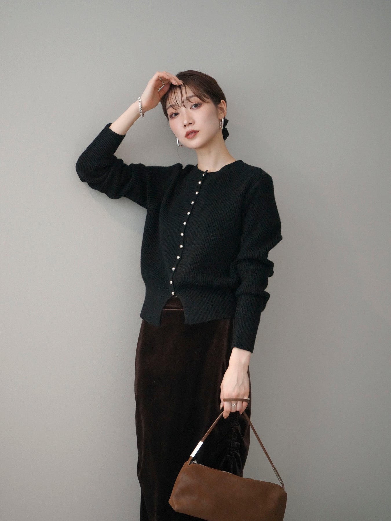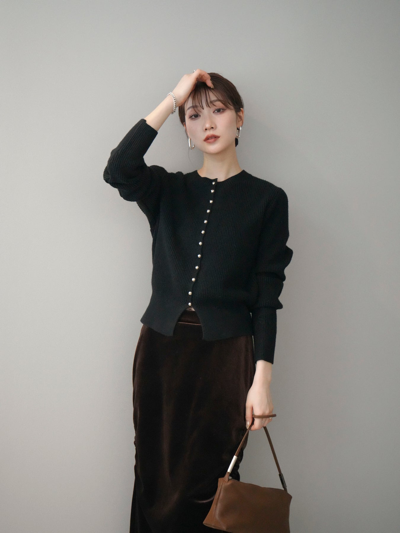 [予約]シルバーボタン畦編みニットカーディガンに関連する商品を探す↓