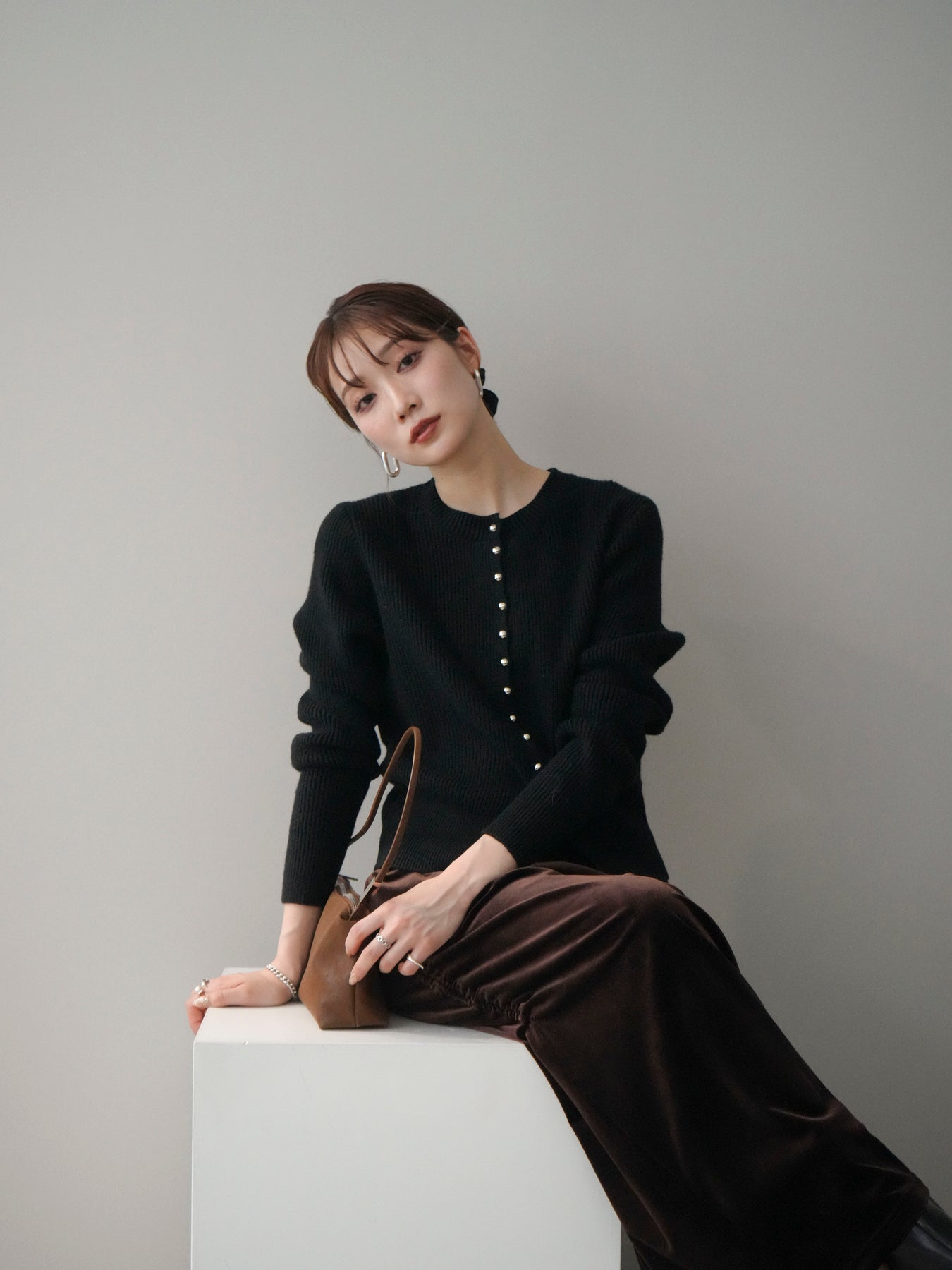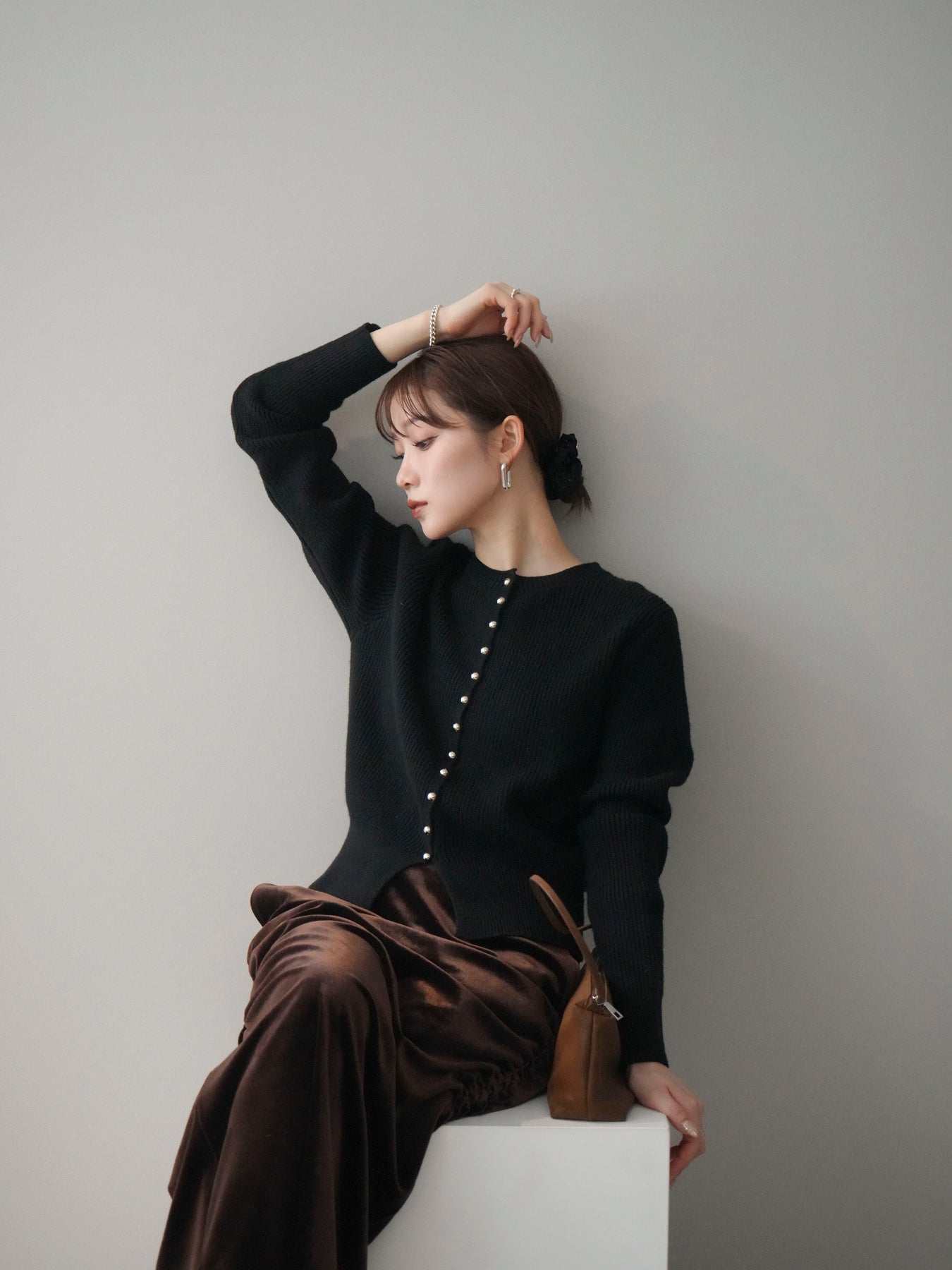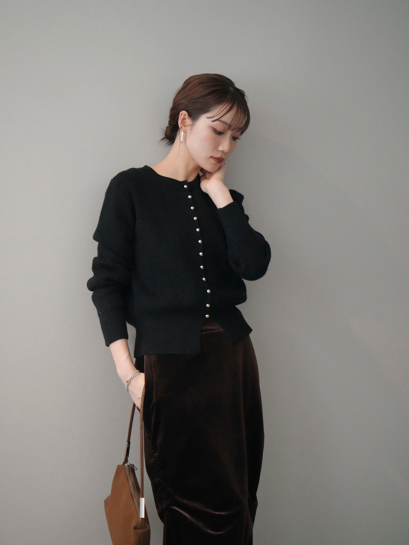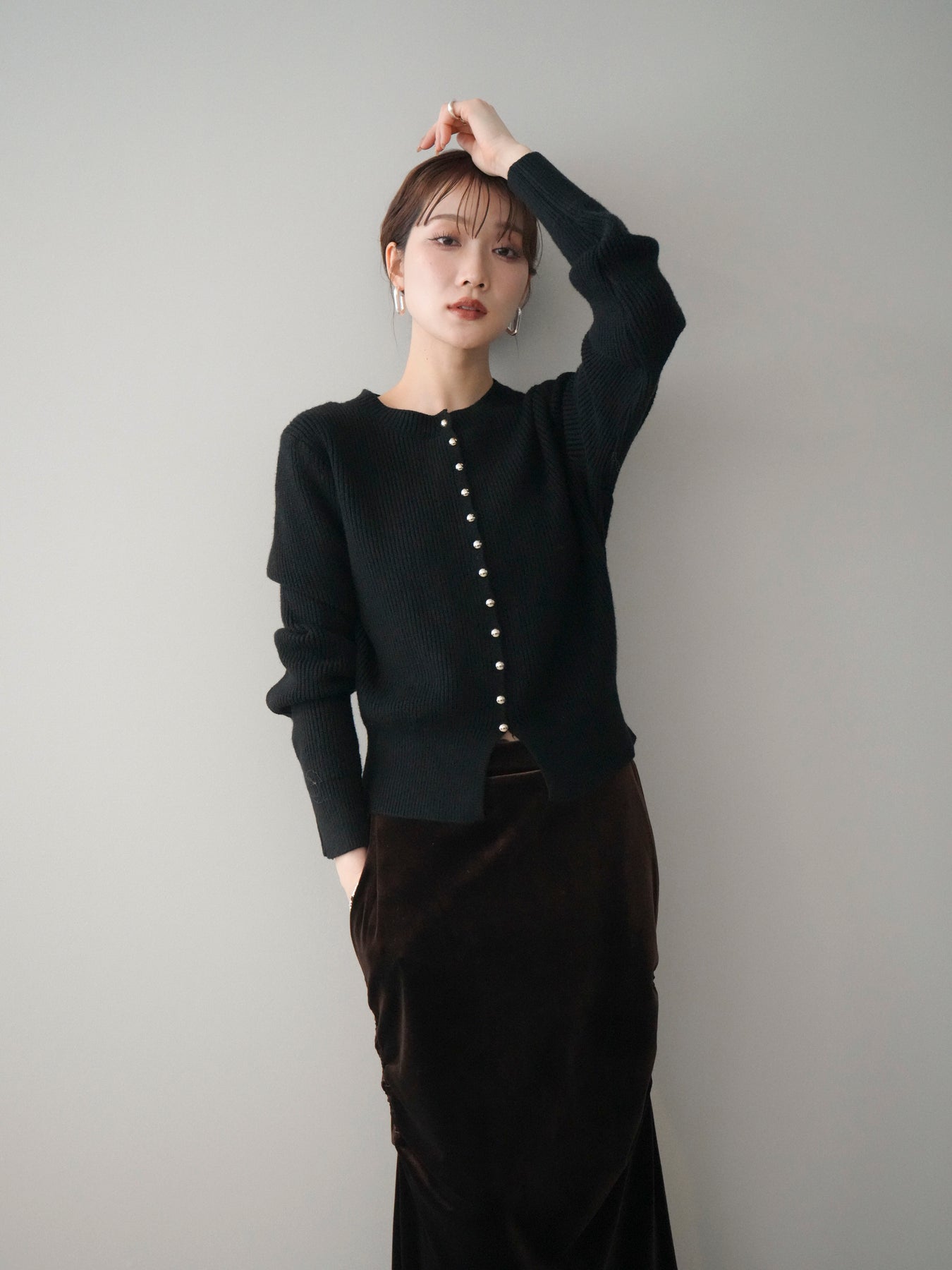 [予約]シルバーボタン畦編みニットカーディガンに関連する商品を探す↓