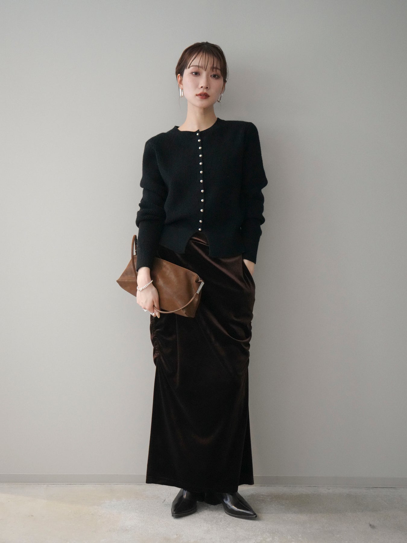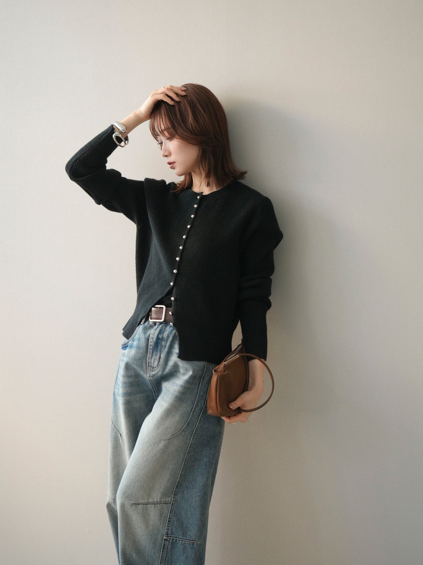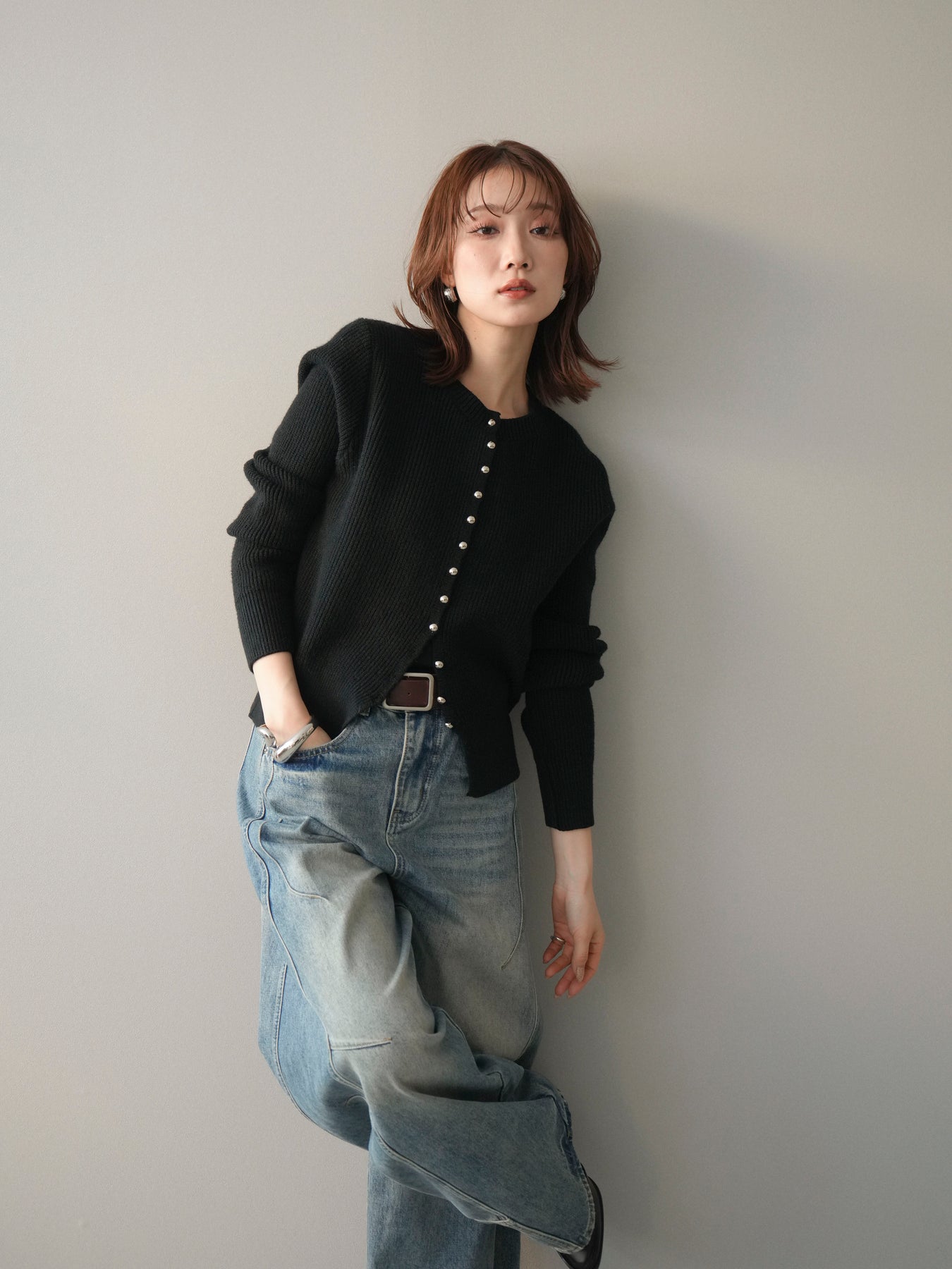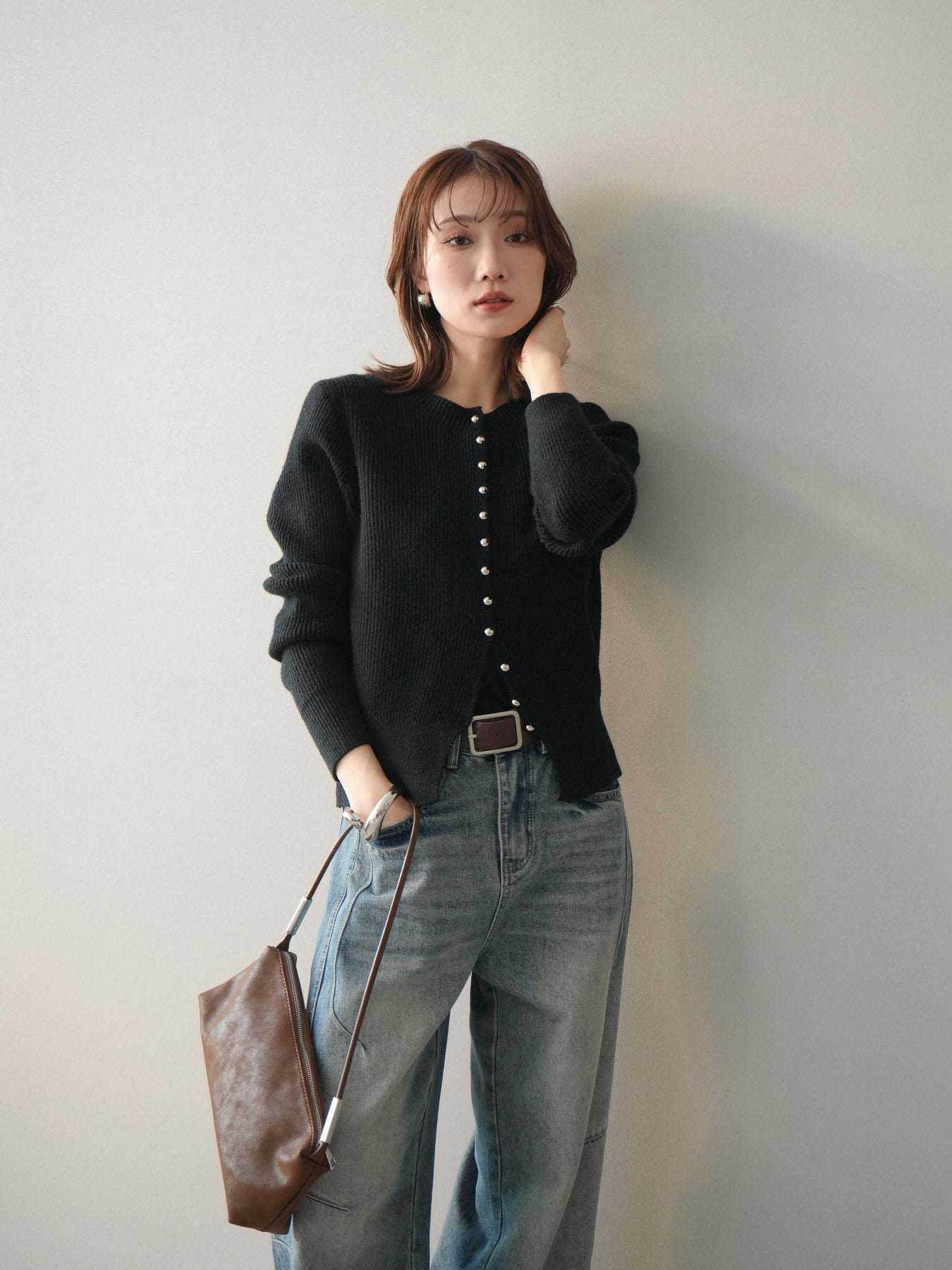 [予約]シルバーボタン畦編みニットカーディガンに関連する商品を探す↓