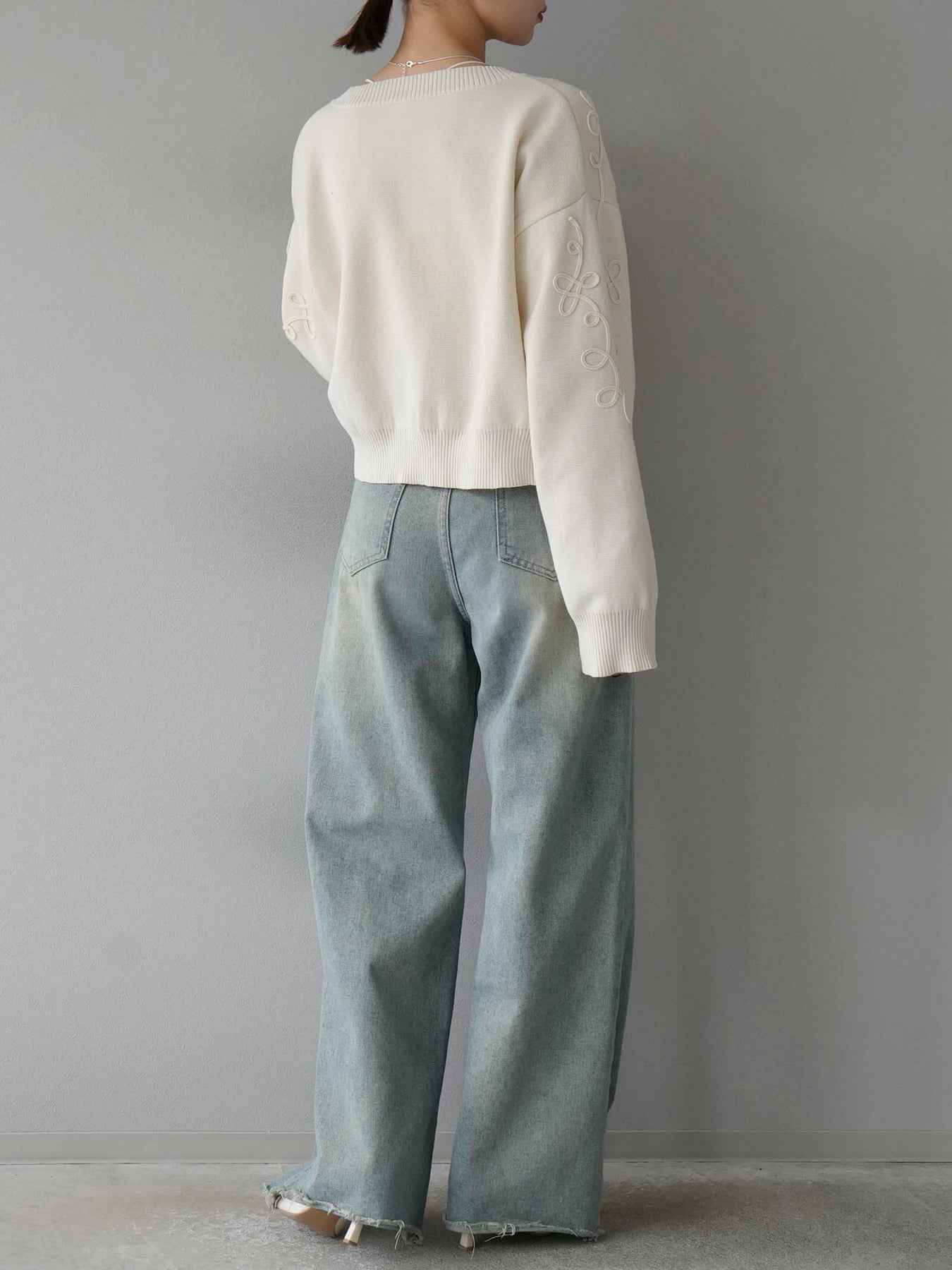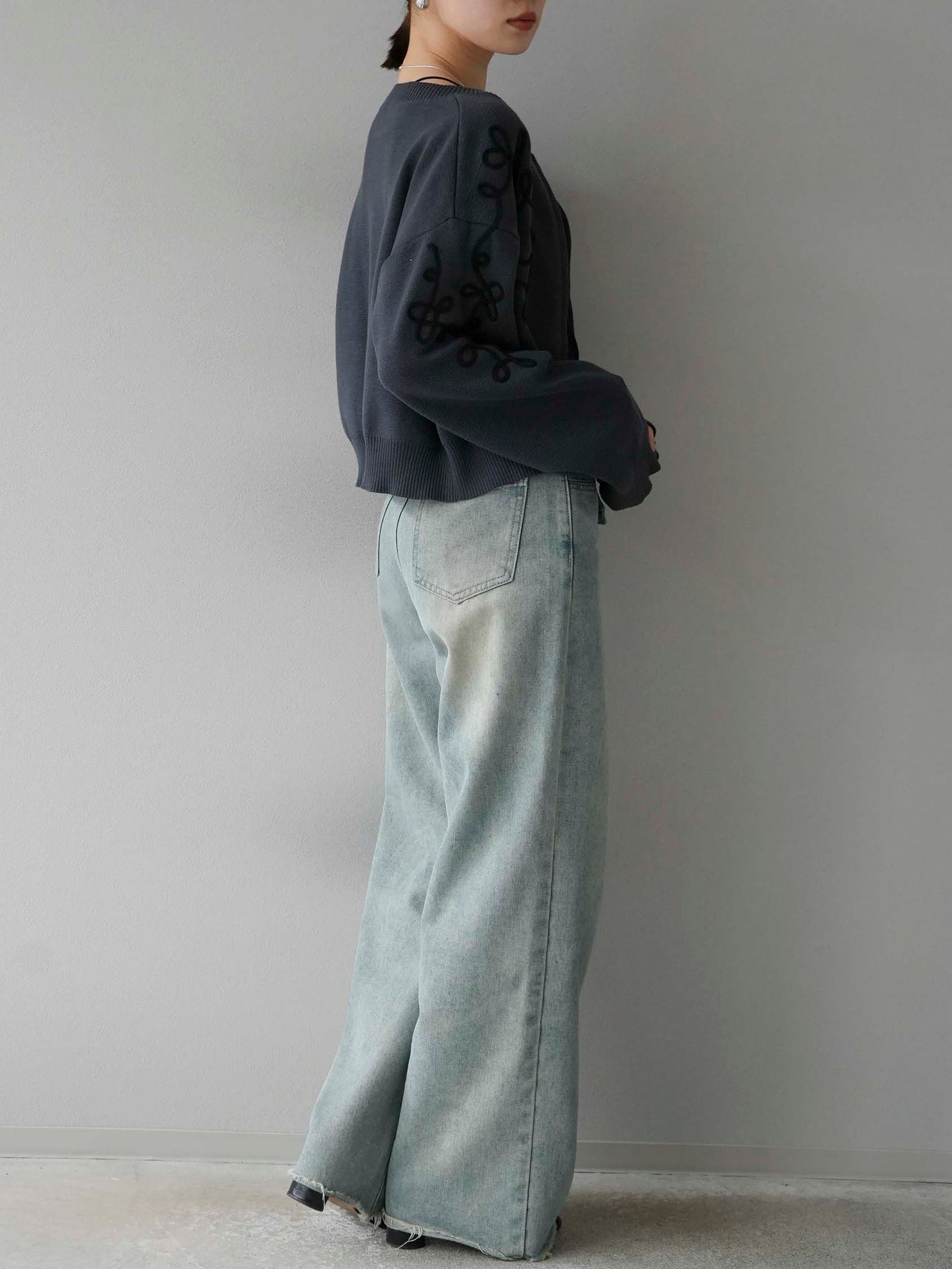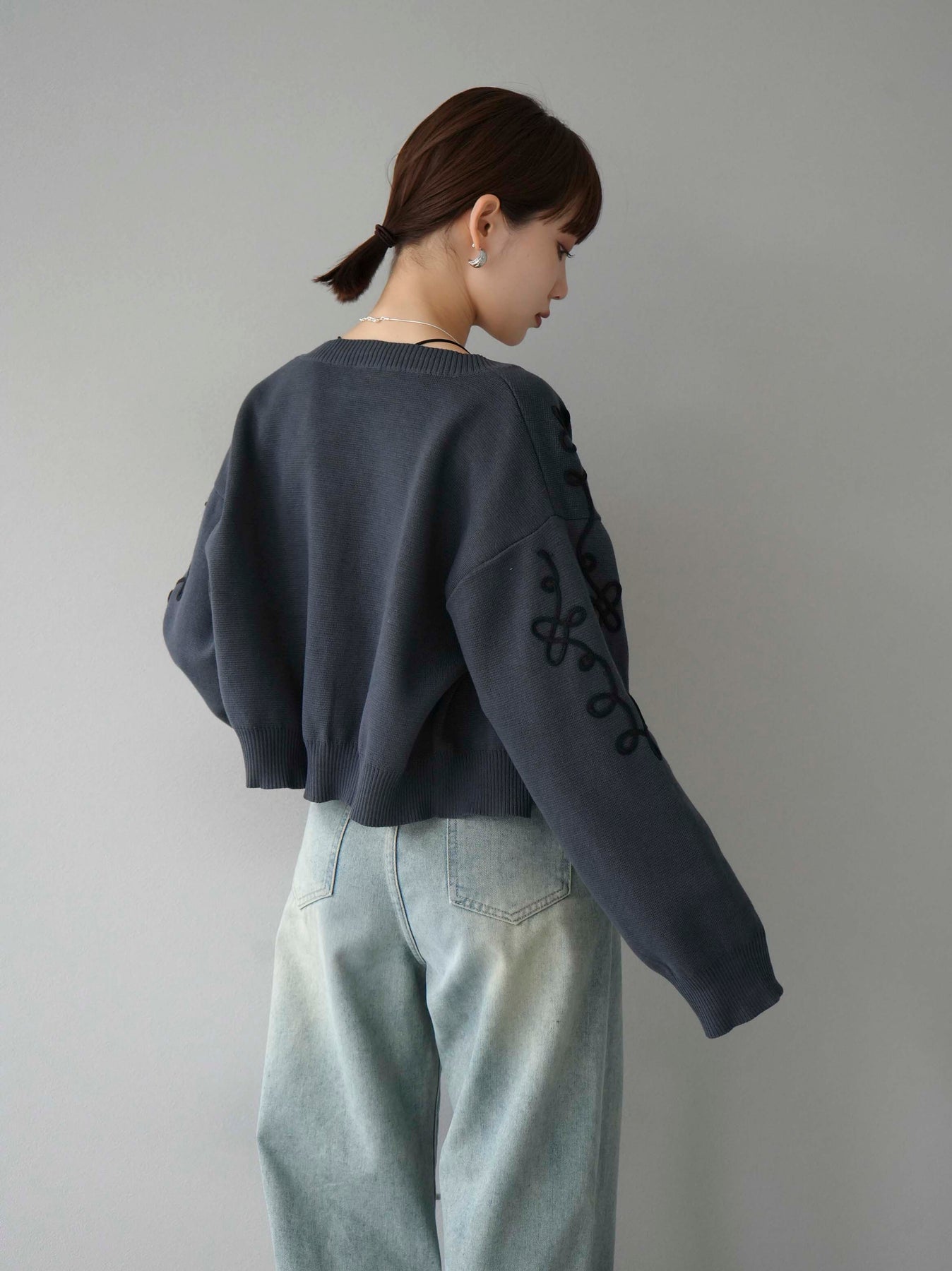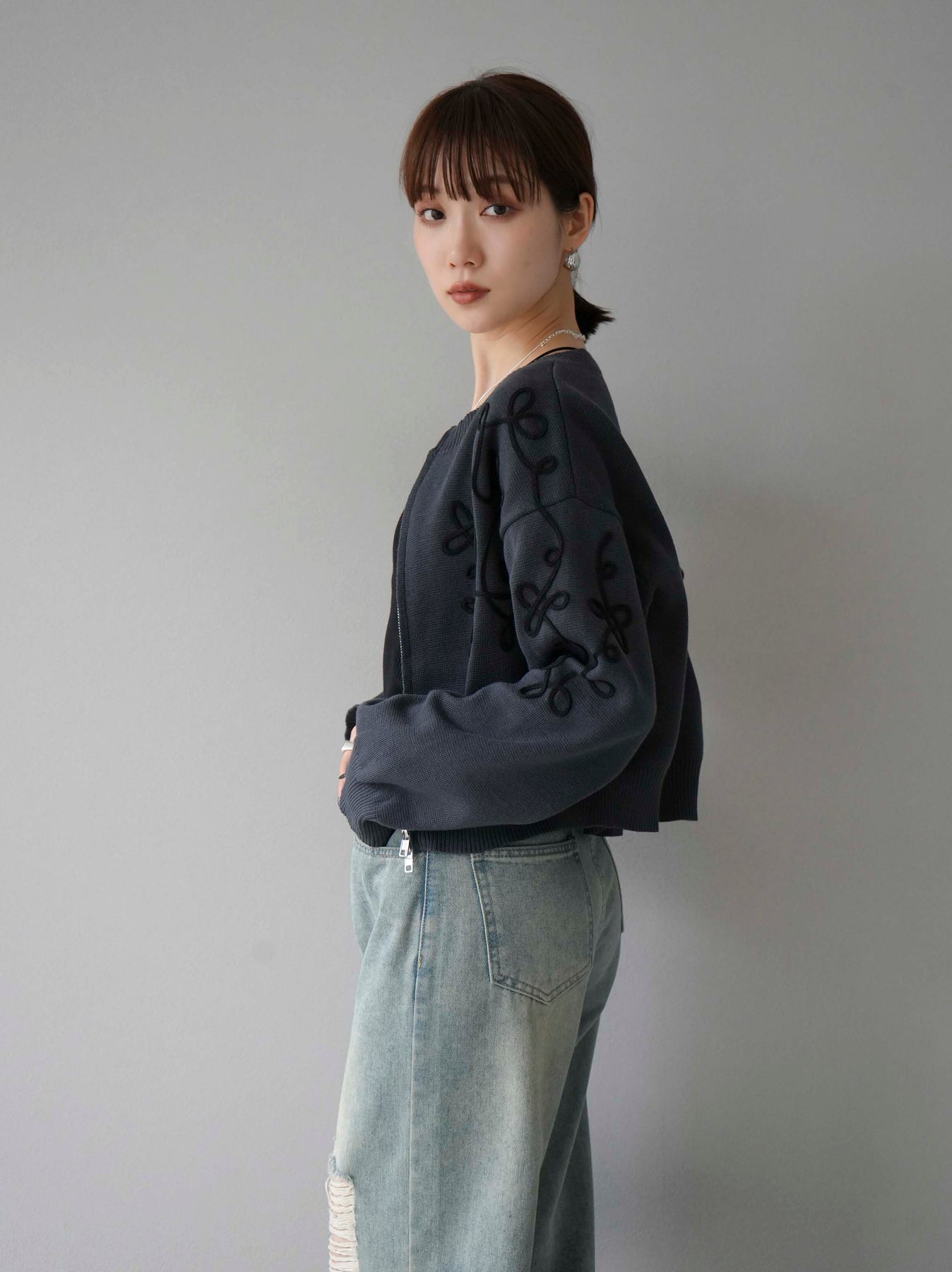 ◆ [予約]コード刺繍コットンニットジップカーディガン