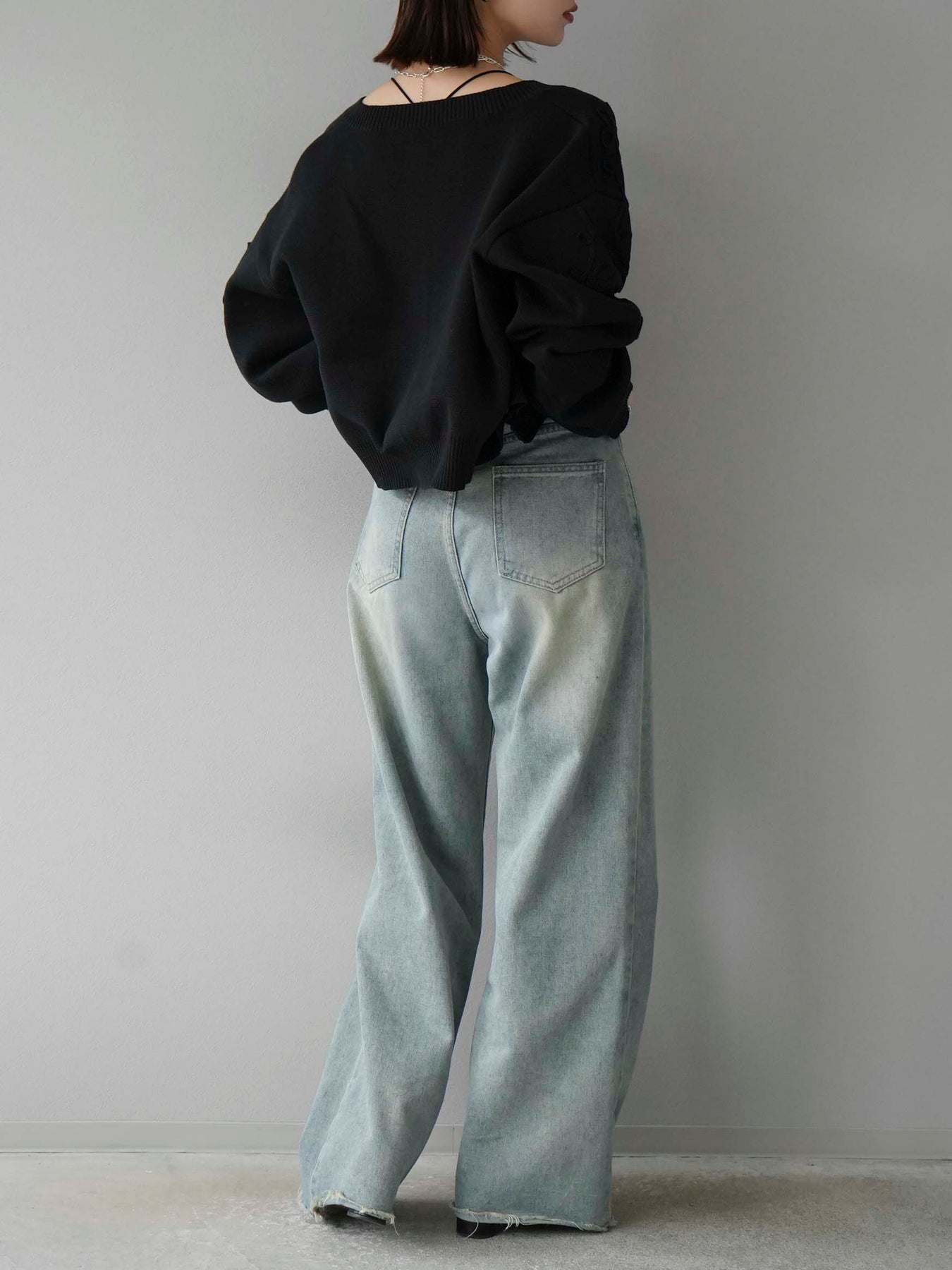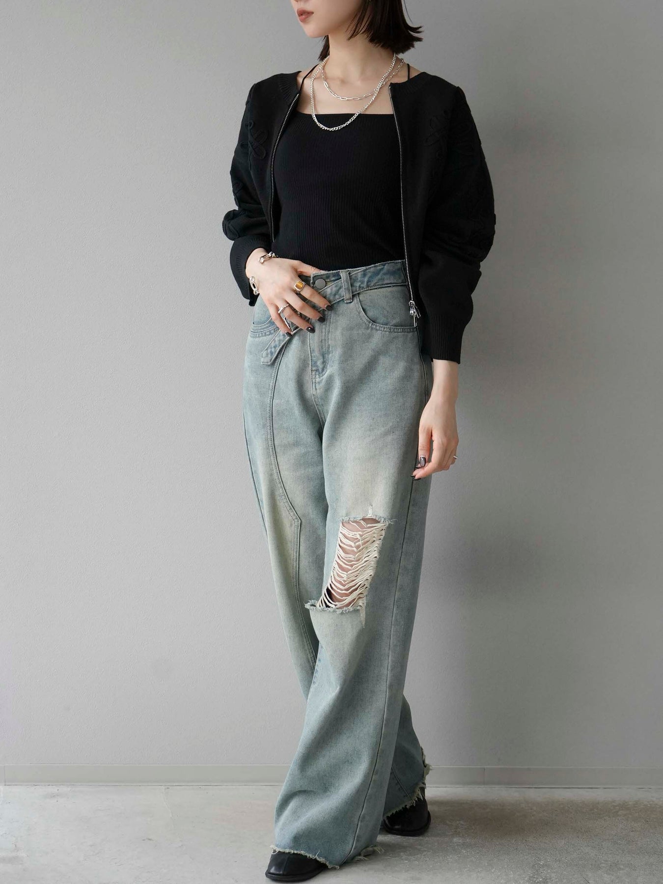 [予約]ベルトアシンメトリーダメージデニム