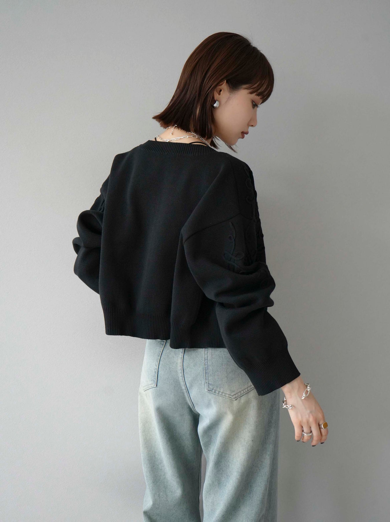 トレンド感あふれるコード刺繍のデザインが魅力のニットカーディガン。程よい丈感とシルエットで、さまざまなトップスやボトムスと相性抜群。秋冬のスタイリングにぴったりの一枚です。 ※ボトムス、キャミソール(インナー)以外の商品は一律でインナーは付属していません