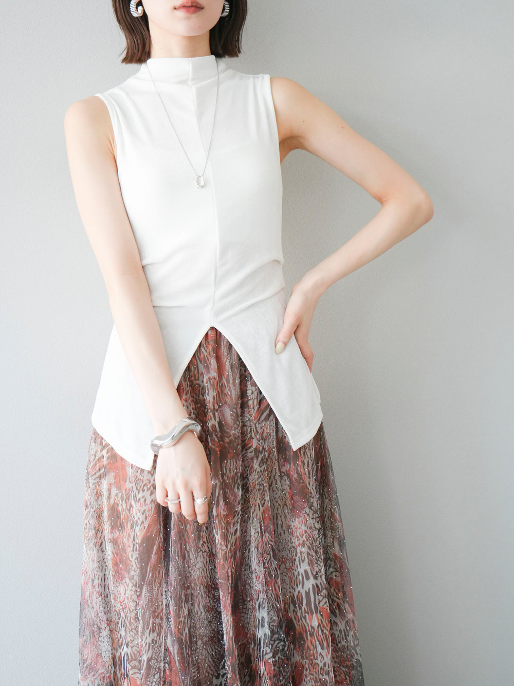 [予約]フロントスリットレーヨンニットトップス/ホワイト