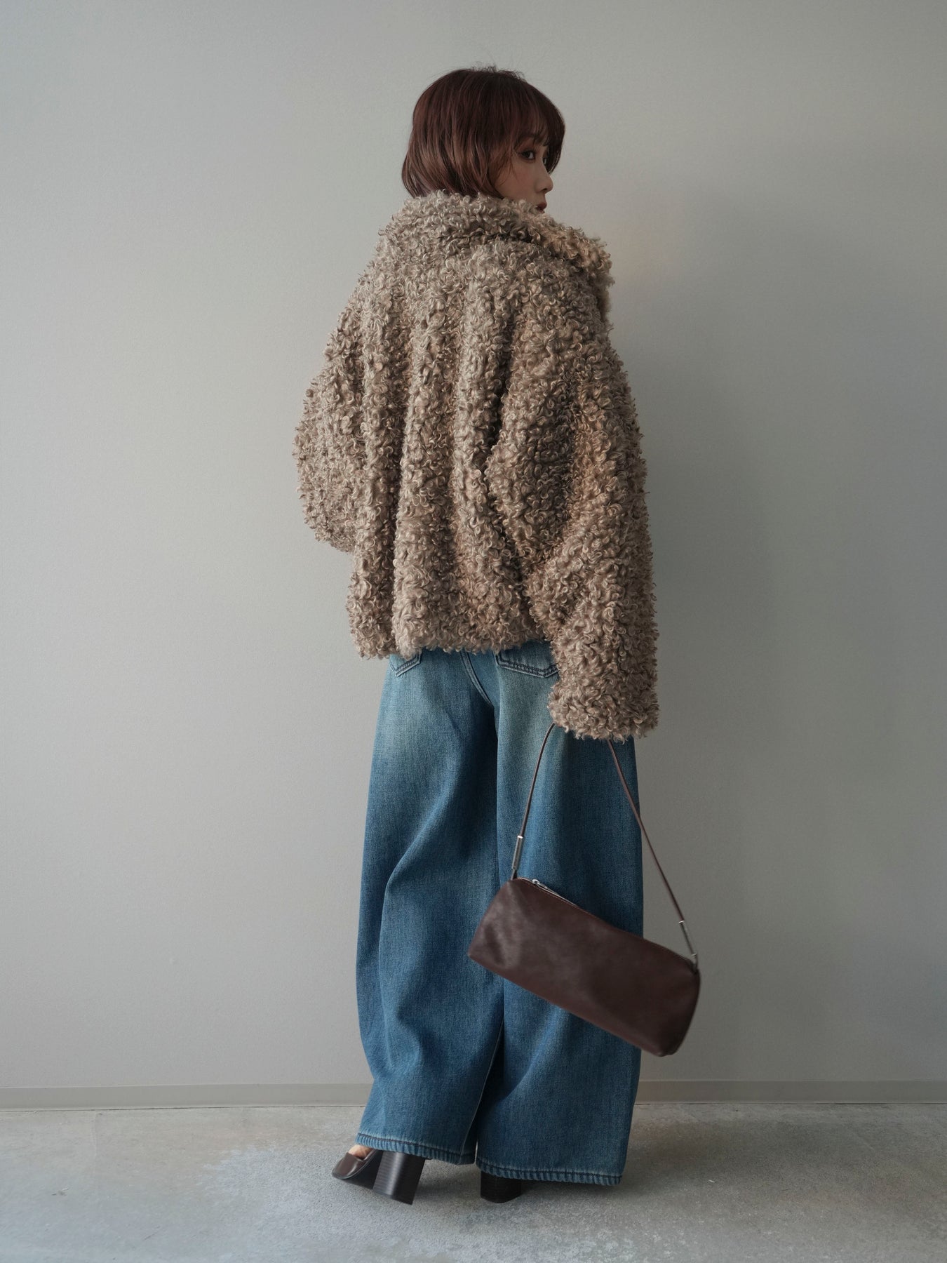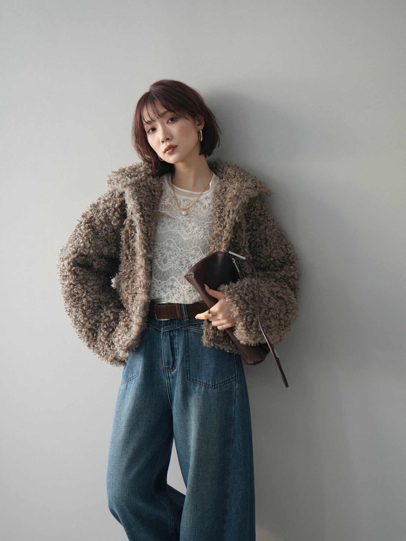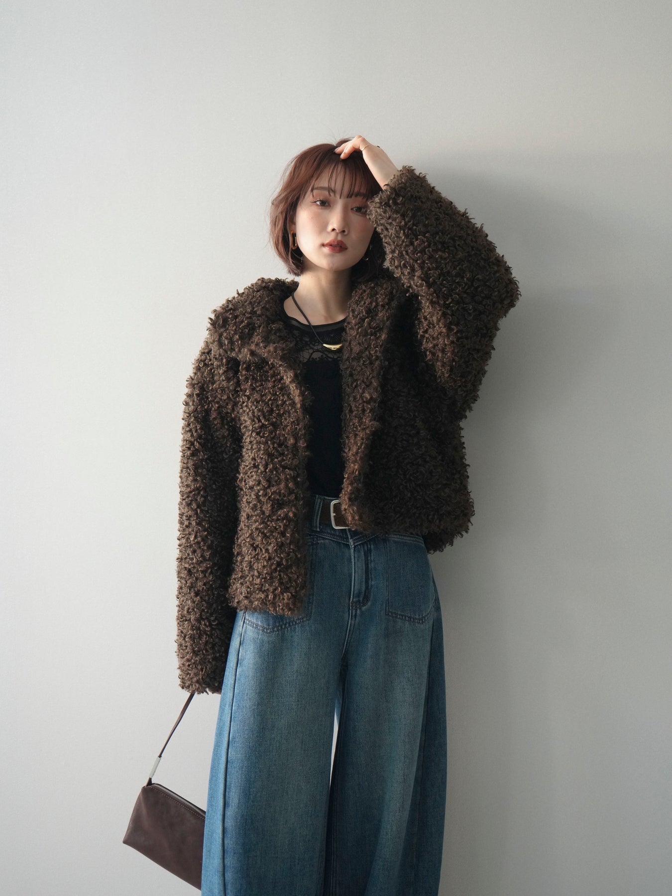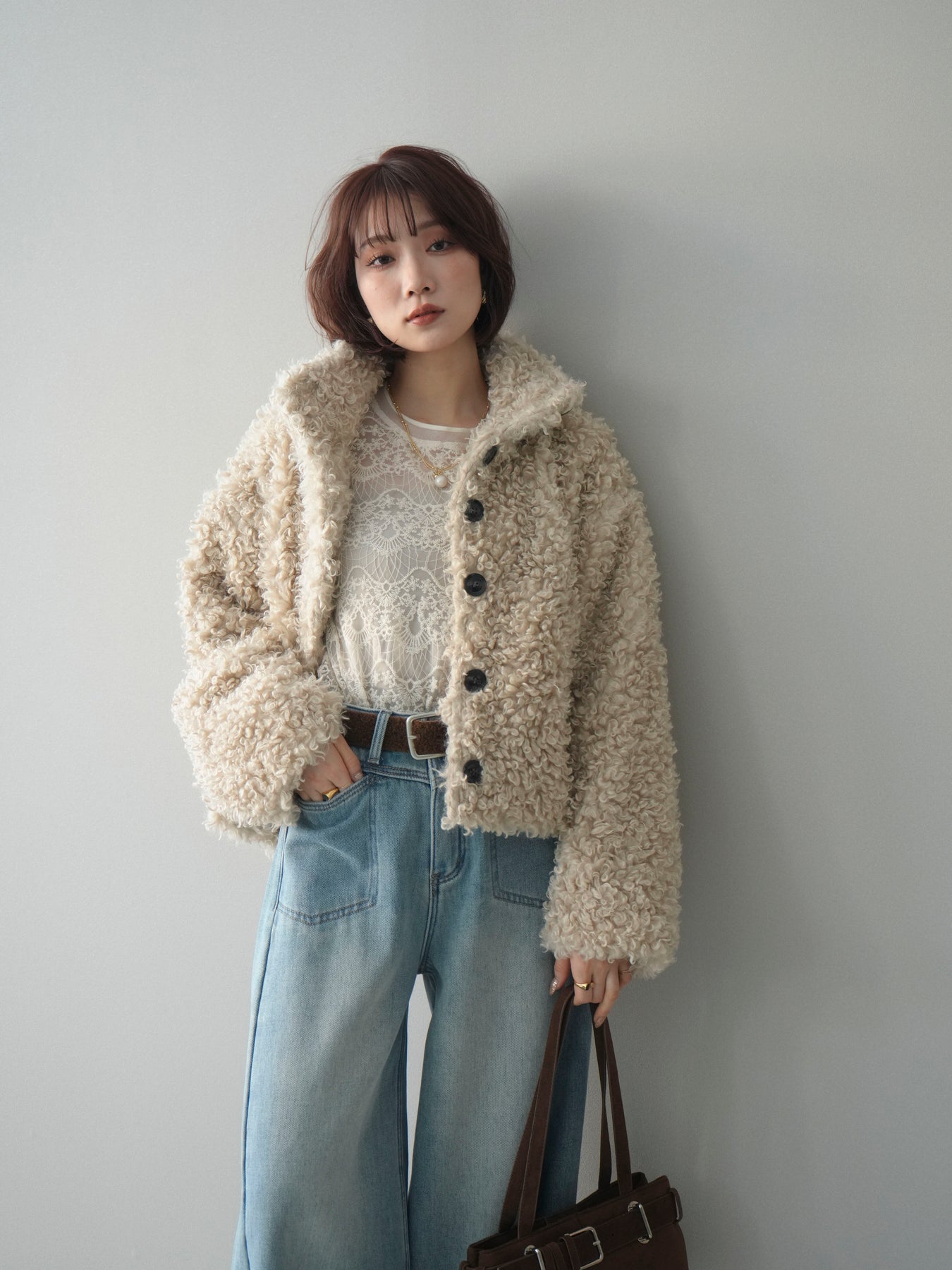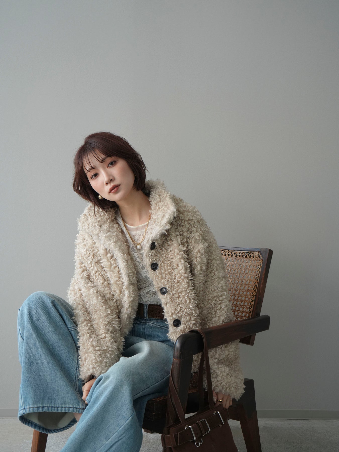 プードルファーの立体的な素材感が印象的なミドル丈ブルゾン。スタンドカラー仕様で首元まで包み込み、程よいボリューム感がコーディネートに存在感をプラスします。パンツにもスカートにも合わせやすく、季節感のある着こなしが完成する一着です。