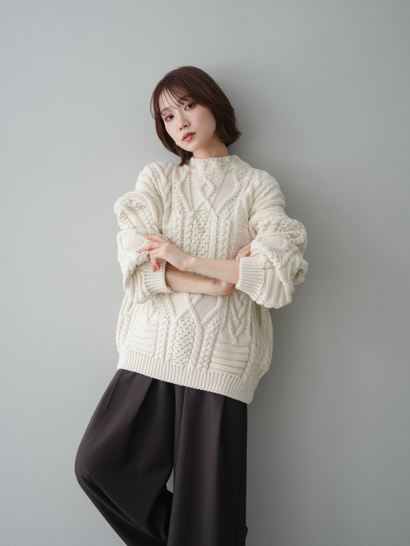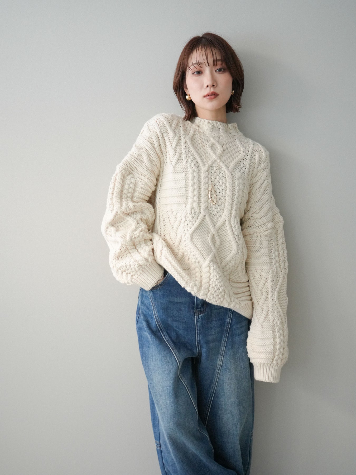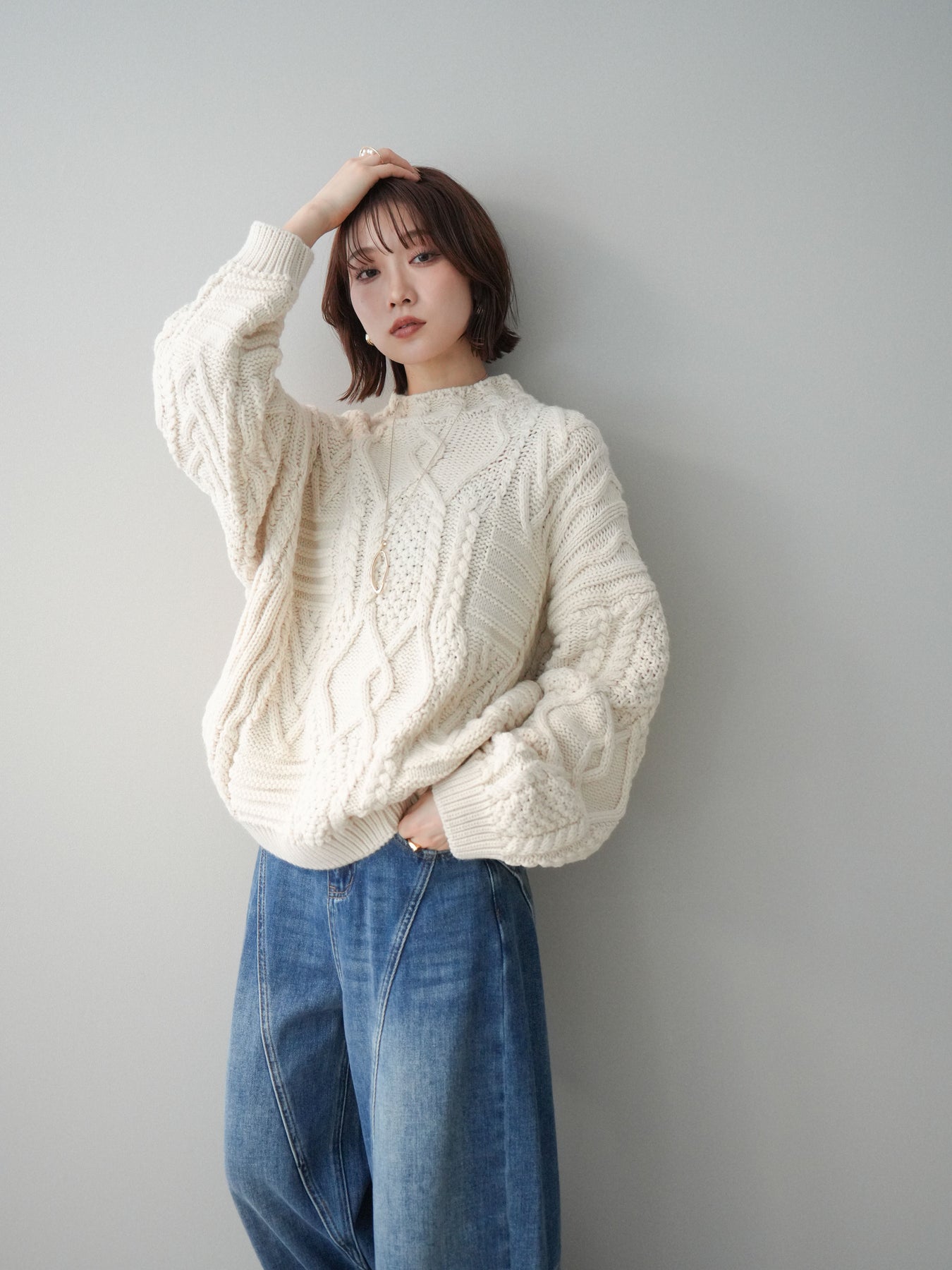 ◆ [予約]ケーブル編みモックネックニットプルオーバー