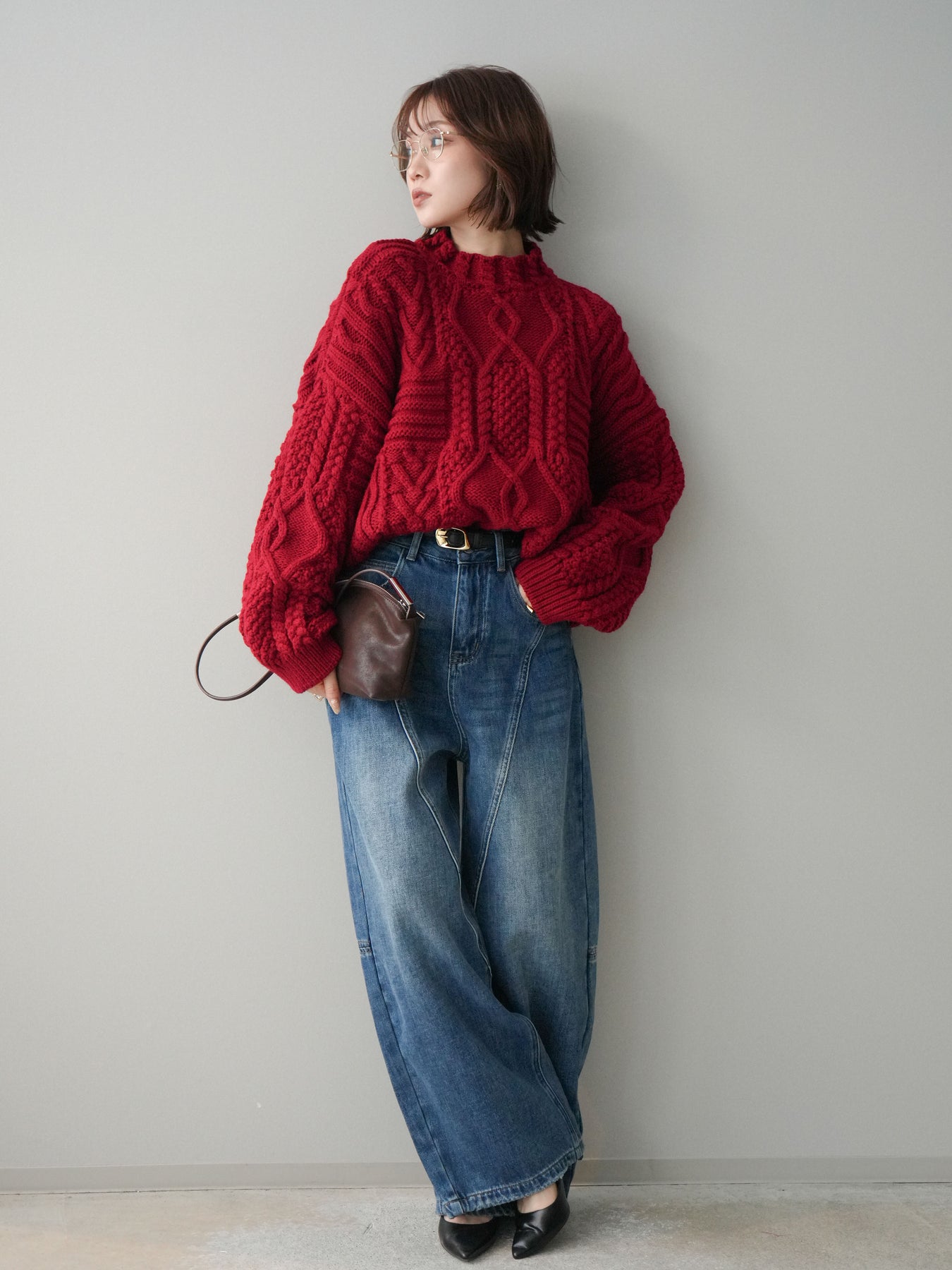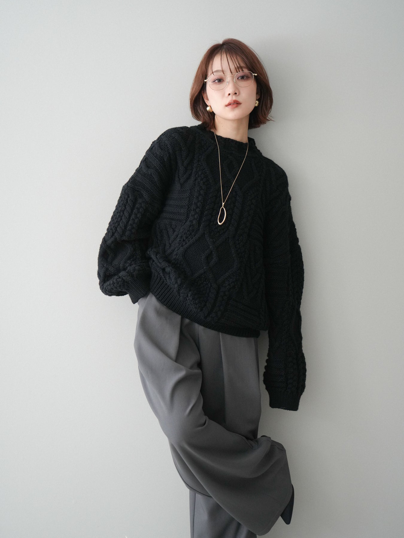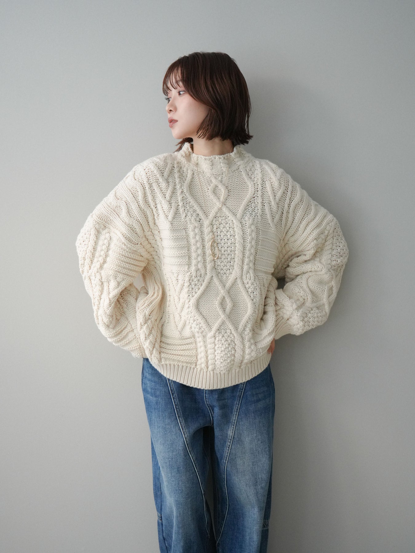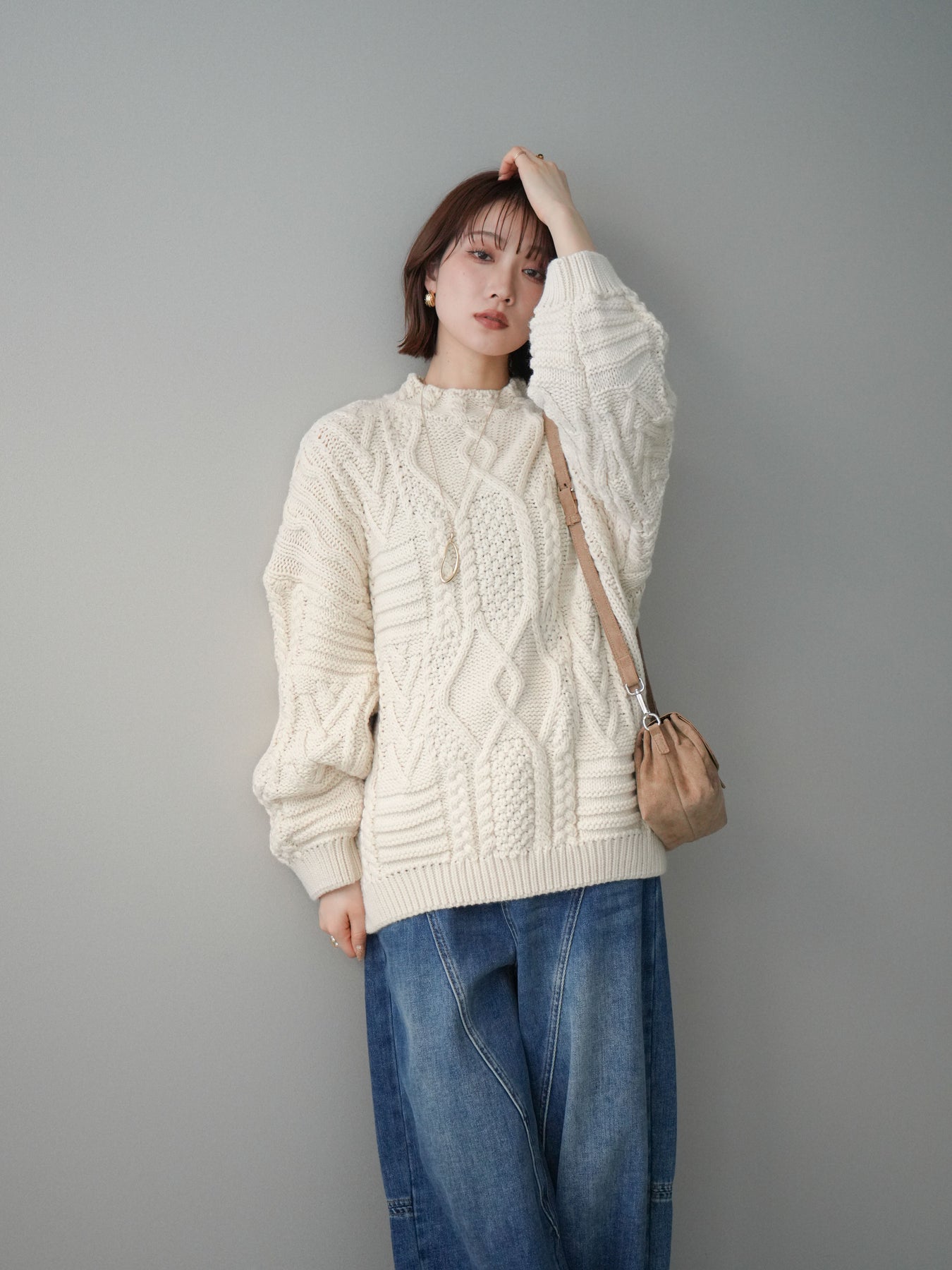◆ [予約]ケーブル編みモックネックニットプルオーバー