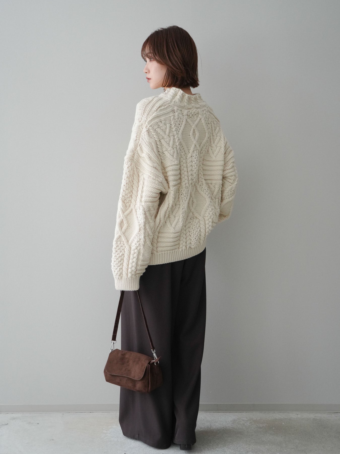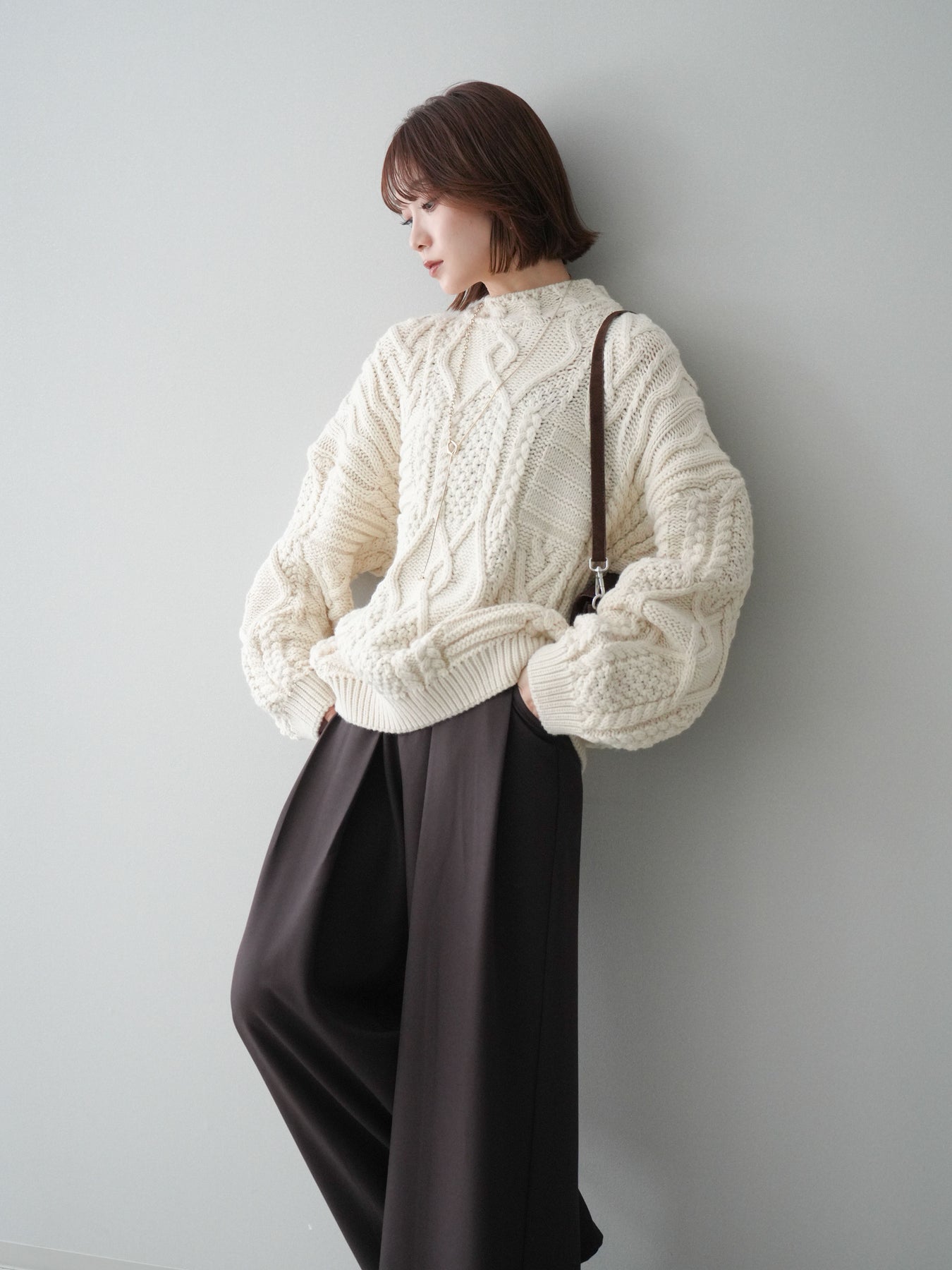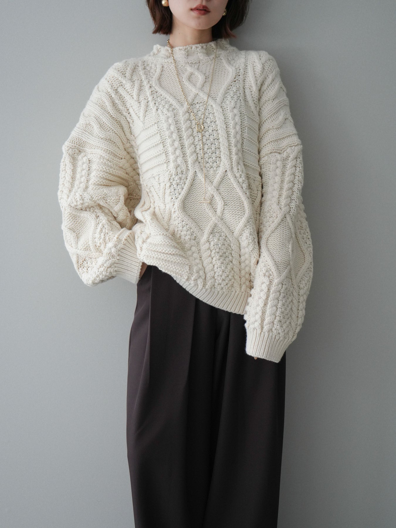 [予約]ケーブル編みモックネックニットプルオーバー