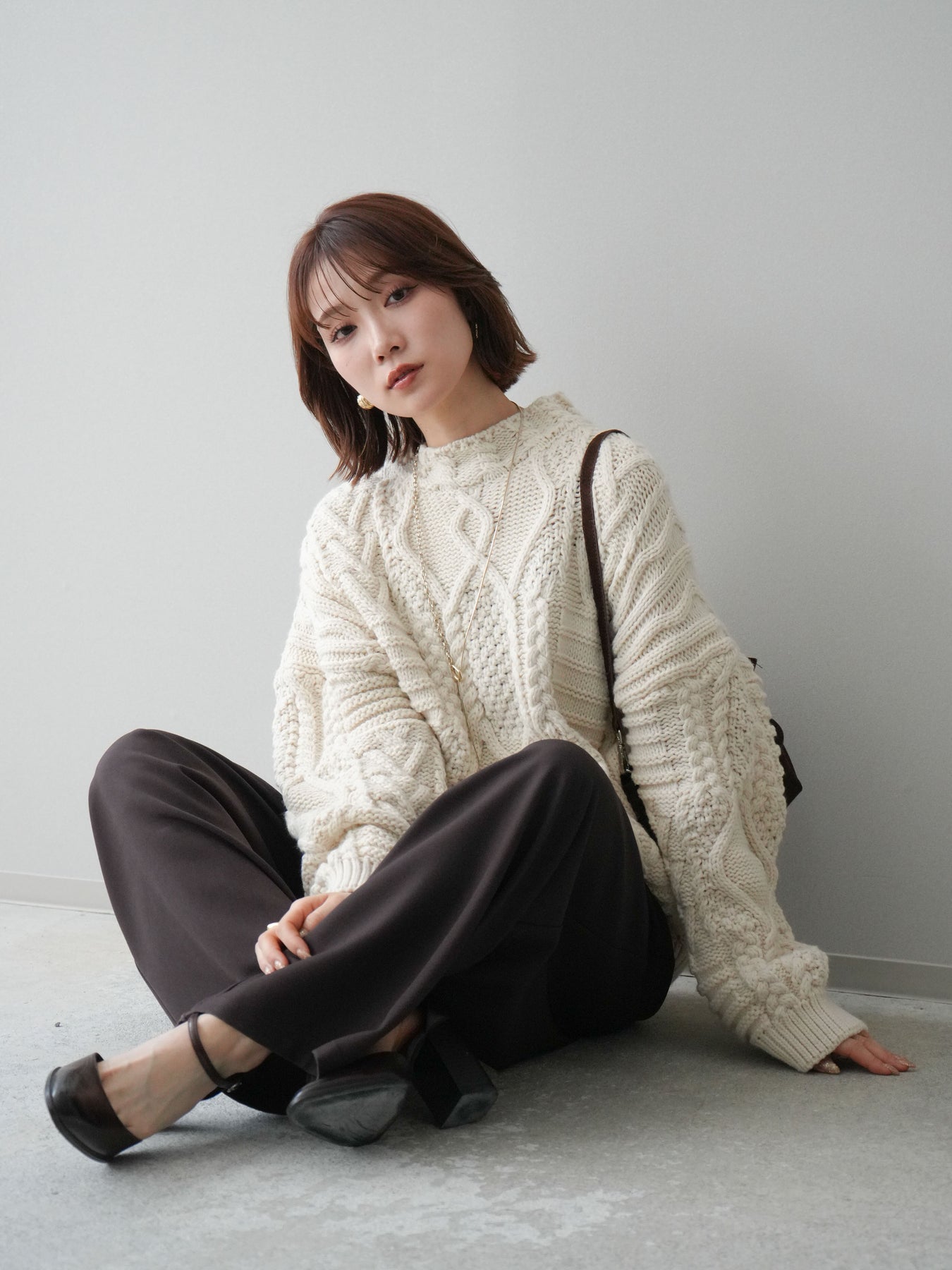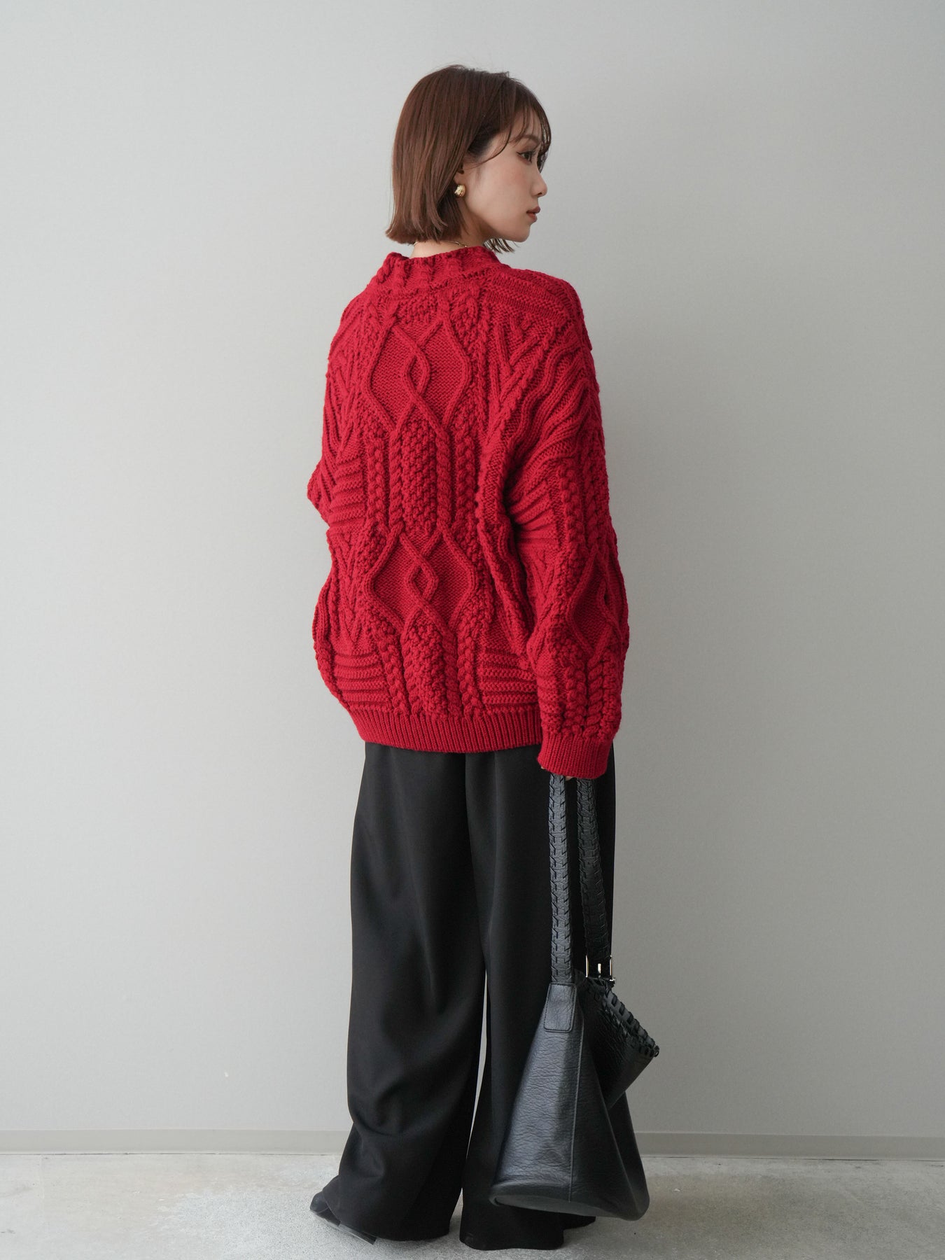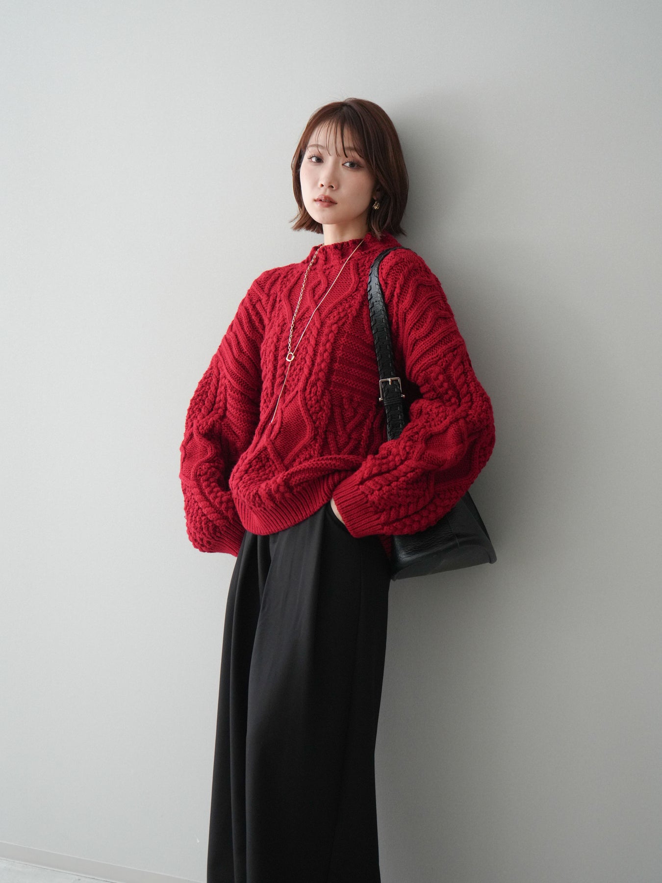 [予約]ケーブル編みモックネックニットプルオーバー